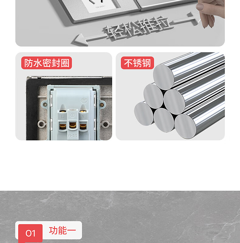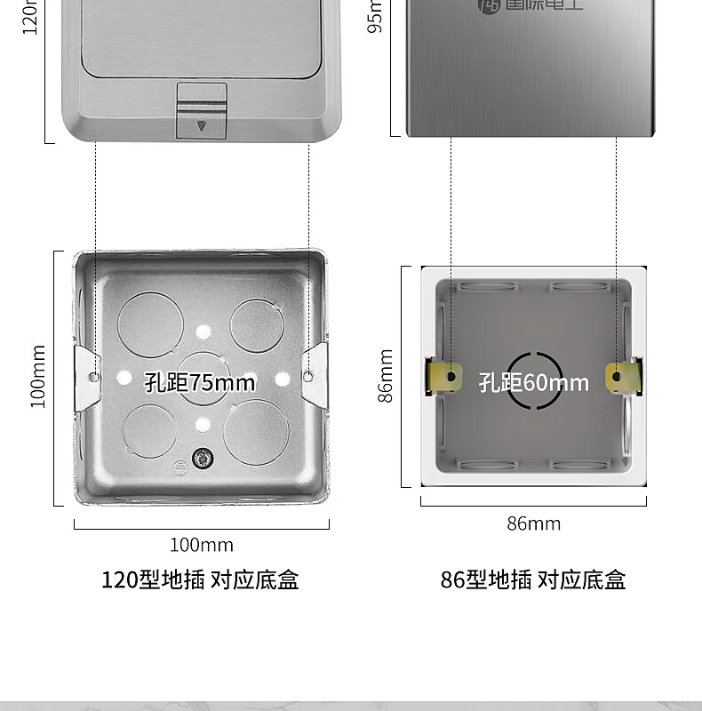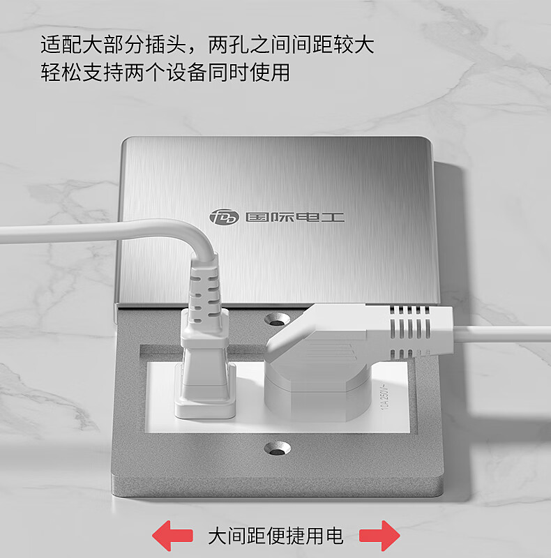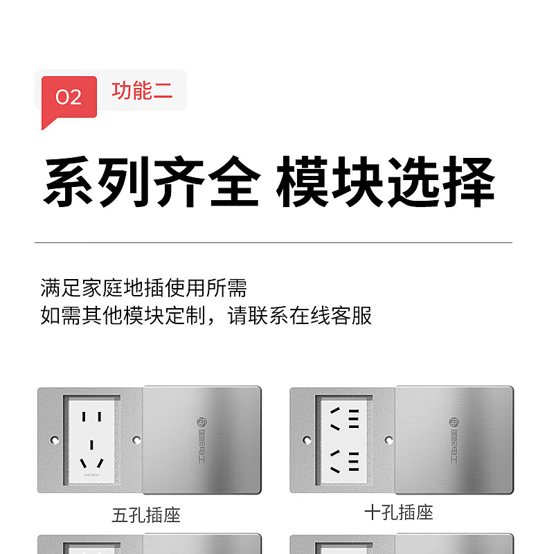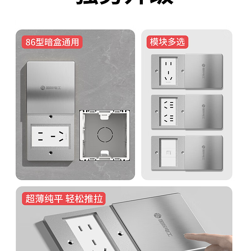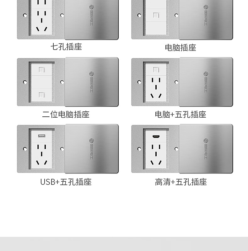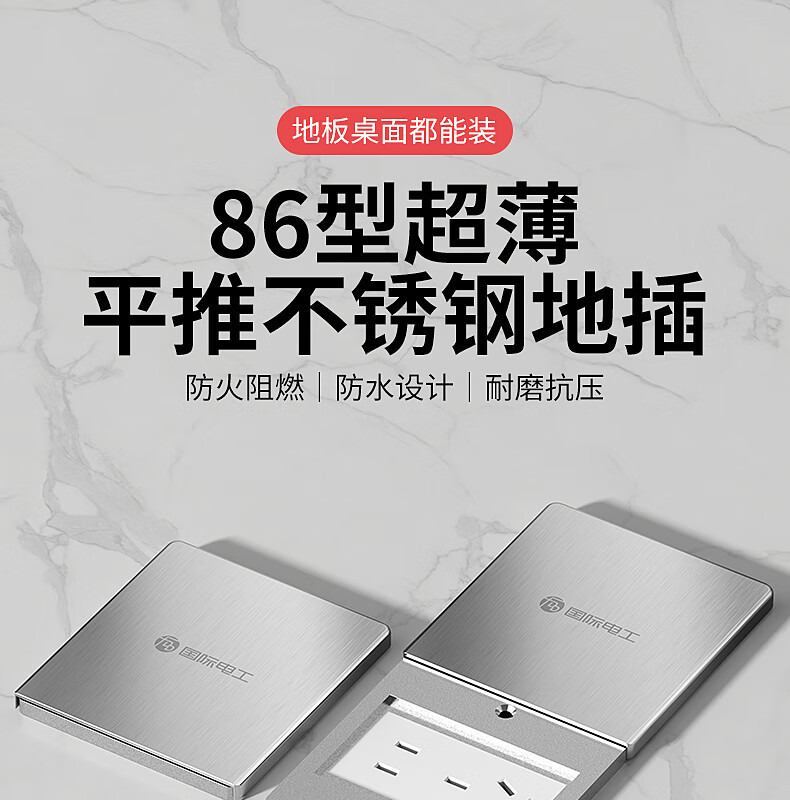 International electrician floor plug type 86 flat push ground socket ultra-thin sliding cover stainless steel waterproof wall cassette floor plug box silver five holes