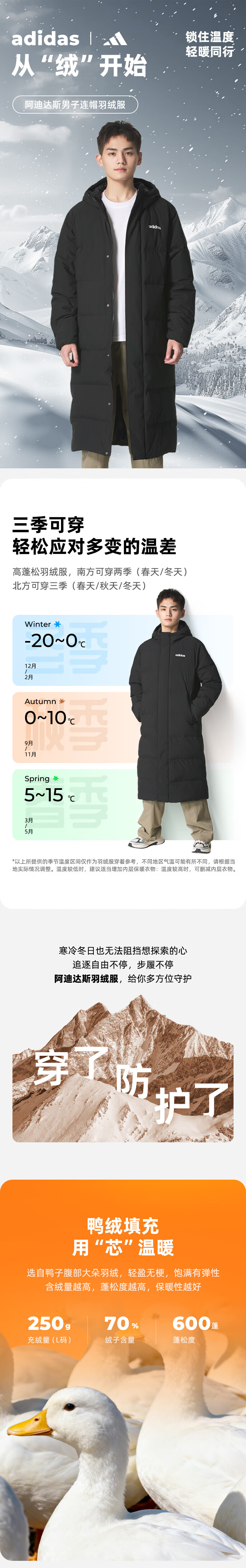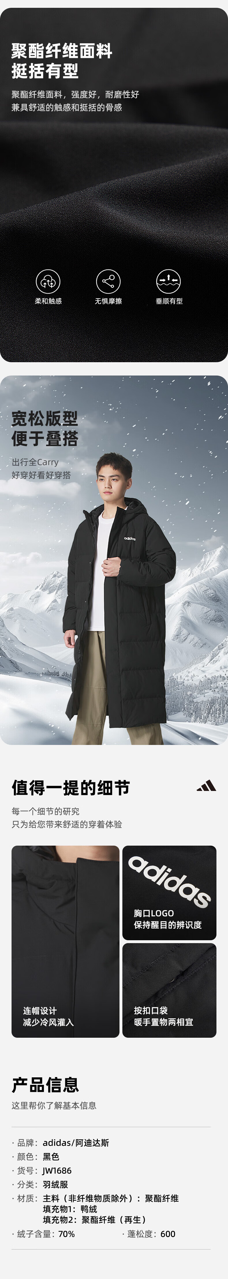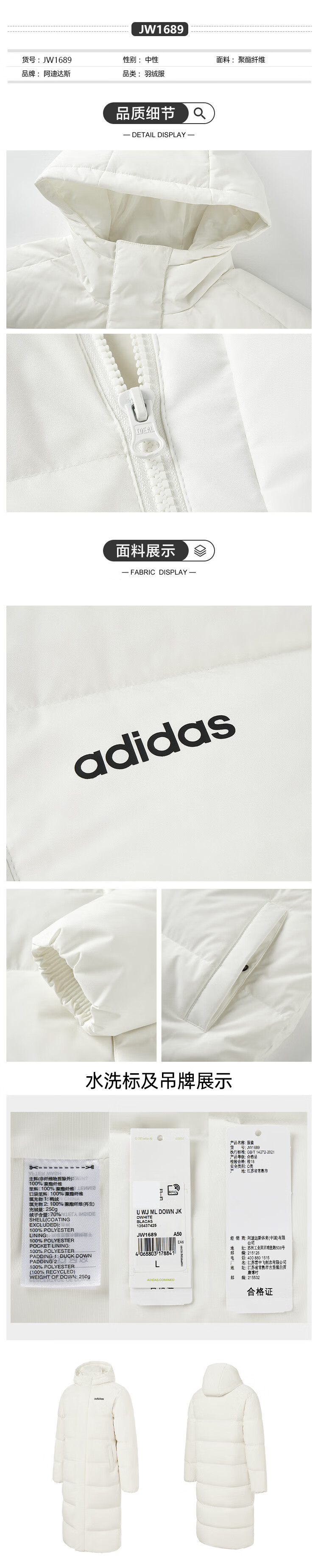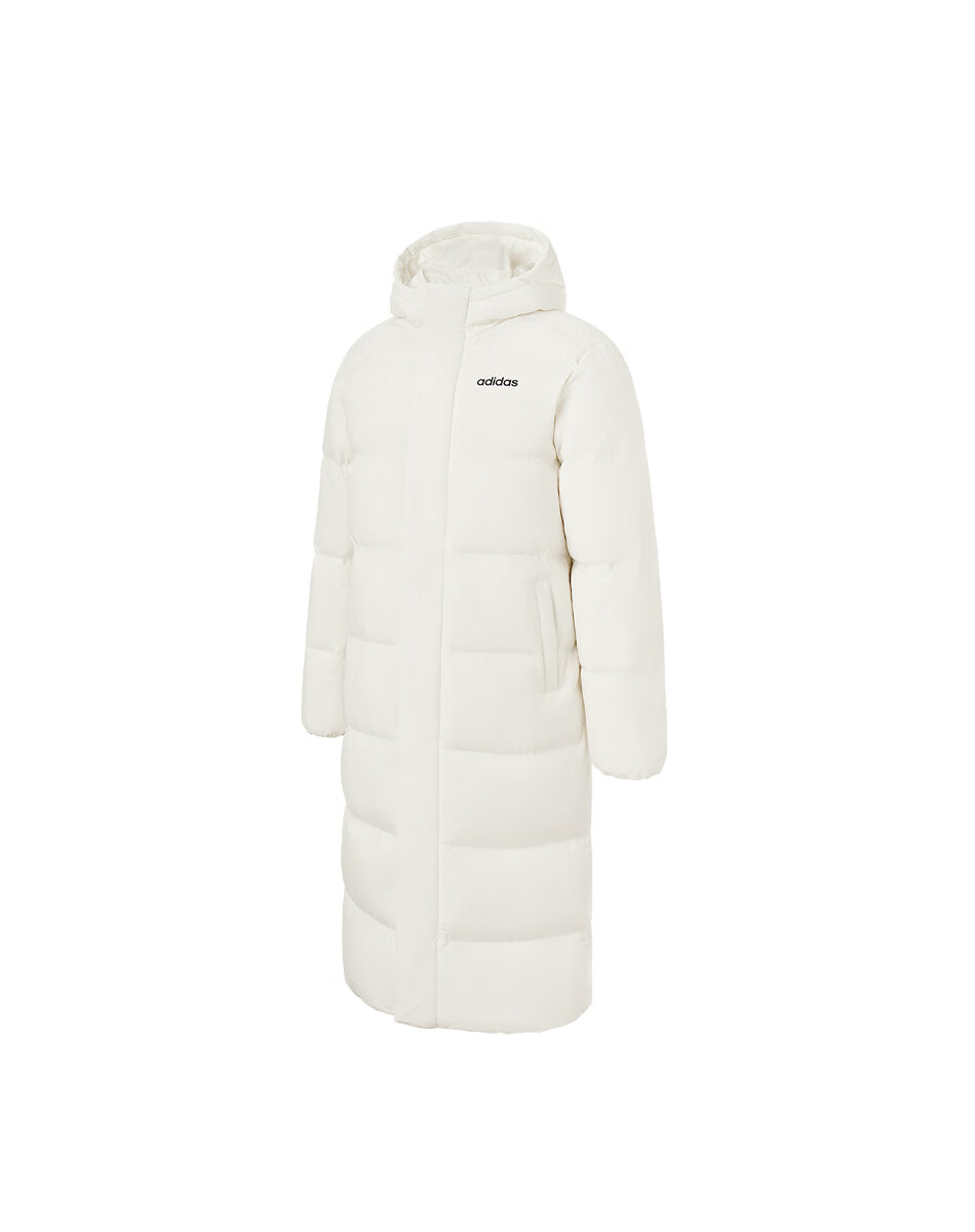 Adidas long down jacket for men and women, duck down hooded warm, windproof and anti-diamond velvet trendy jacket L size
