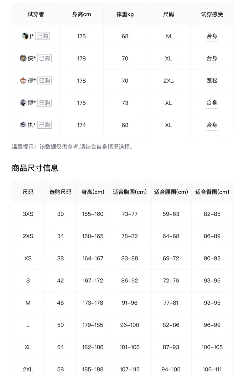 China (cm) 160-165/84-86 165-170 / 88-90 167-172 / 92-96 168-173 / 98-102 170-176 / 106-110