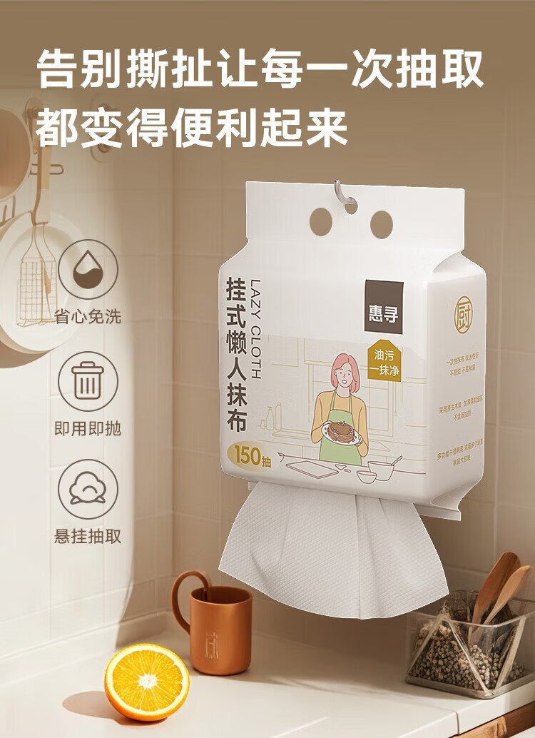 Huixun trapo perezoso desechable 150*2 levanta toalla de papel de cocina extraíble toalla colgante para platos