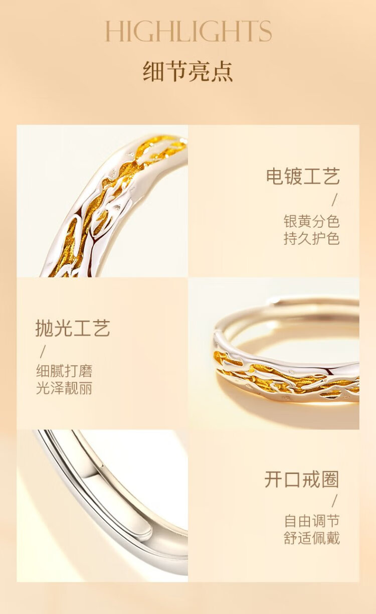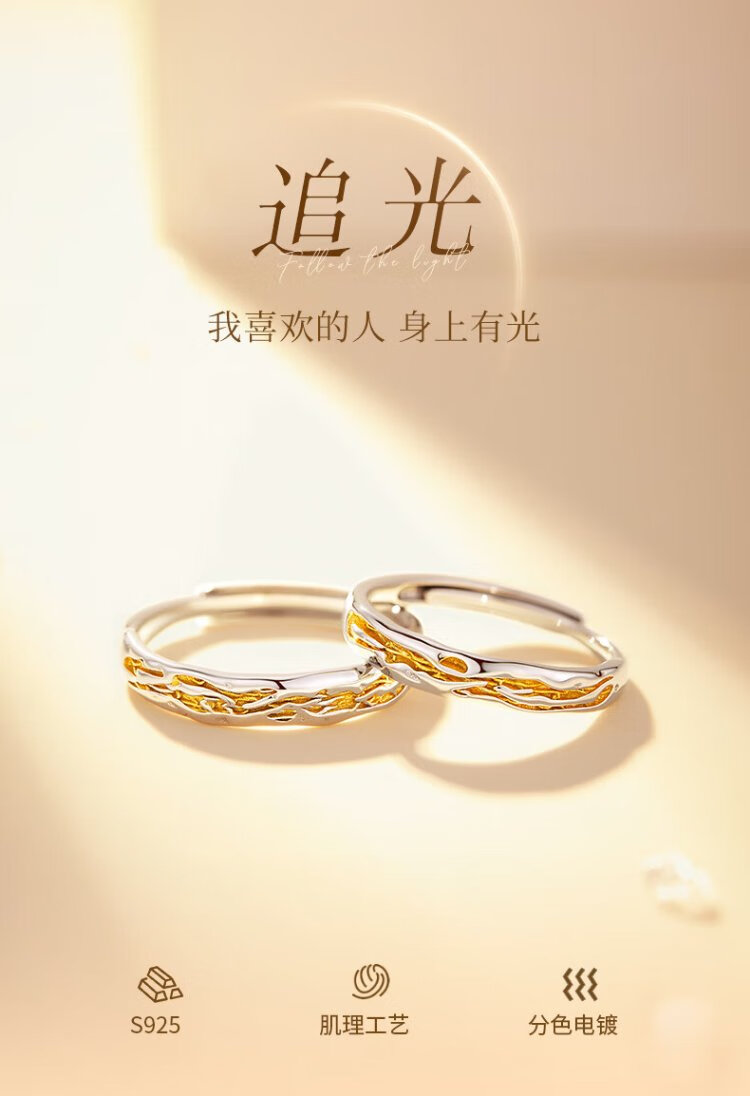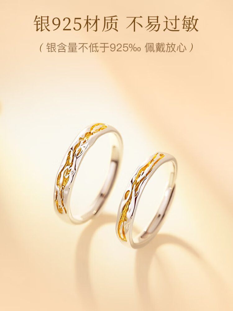 GLTEN Couple's Silver Ring Couple's Light Luxurious and High-end Niche Women's Birthday Gift for Girlfriend and Wife