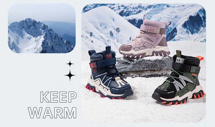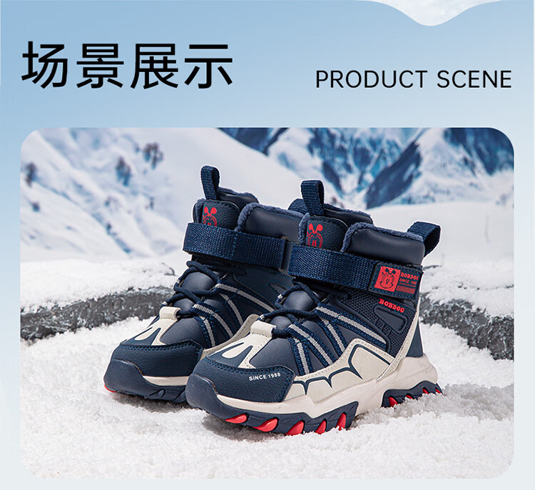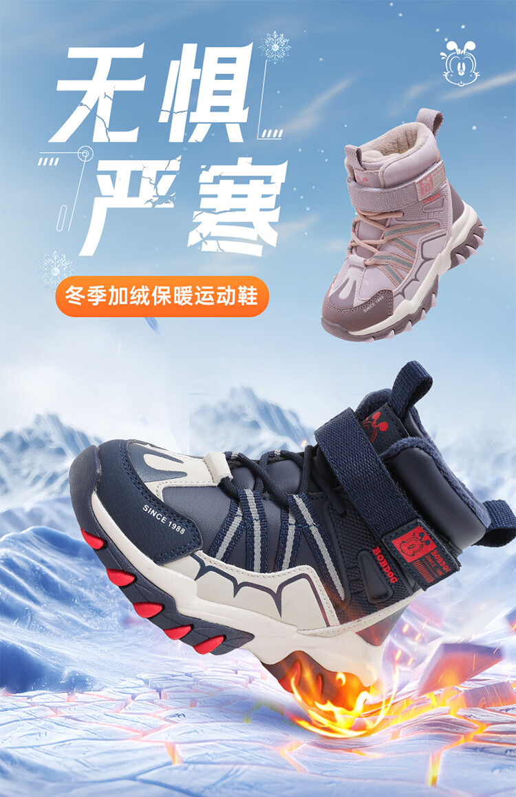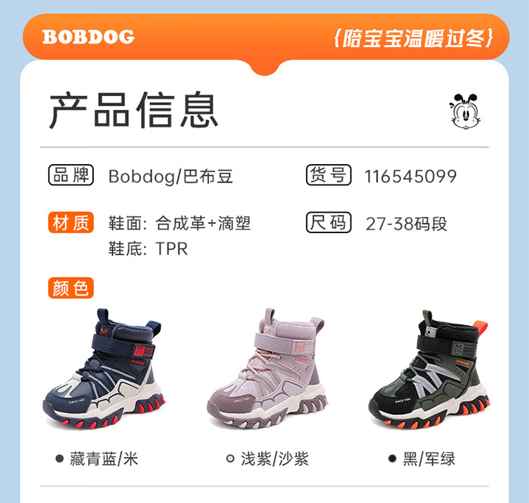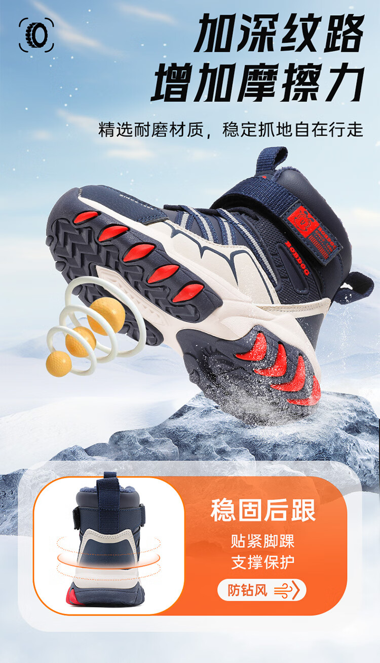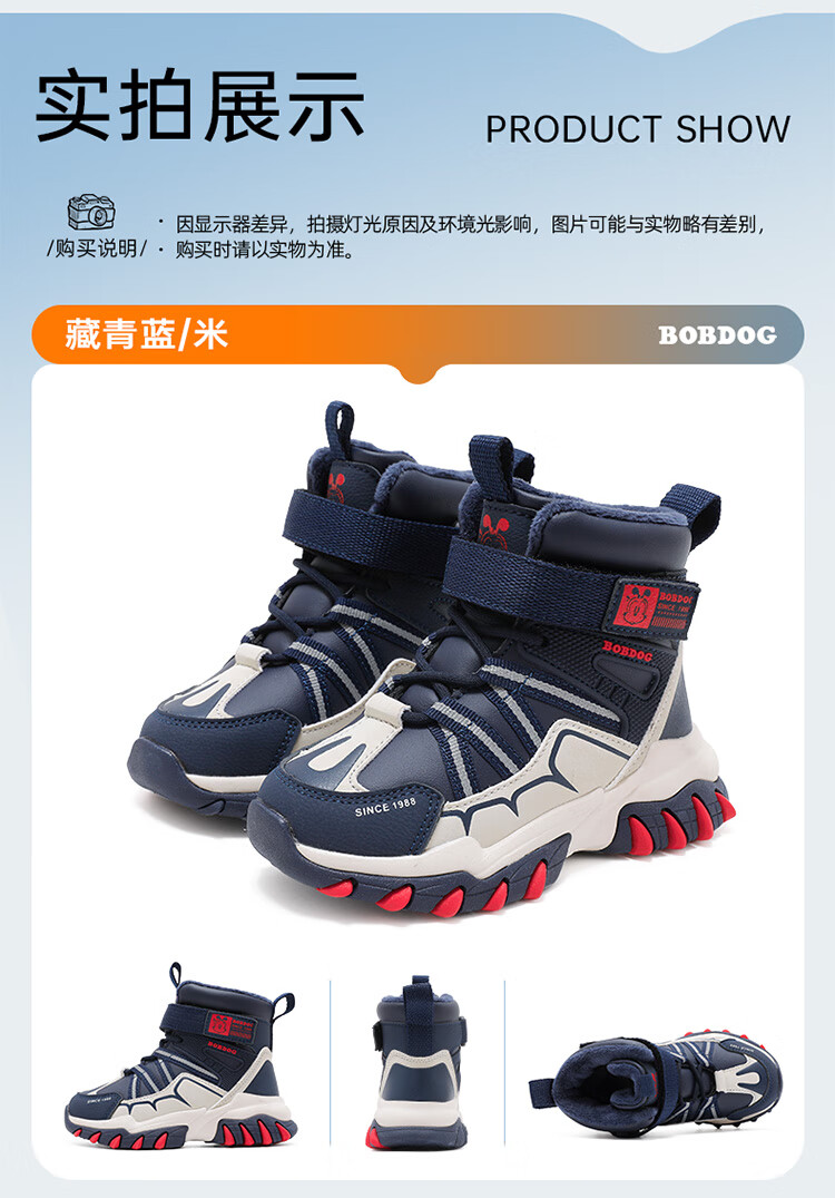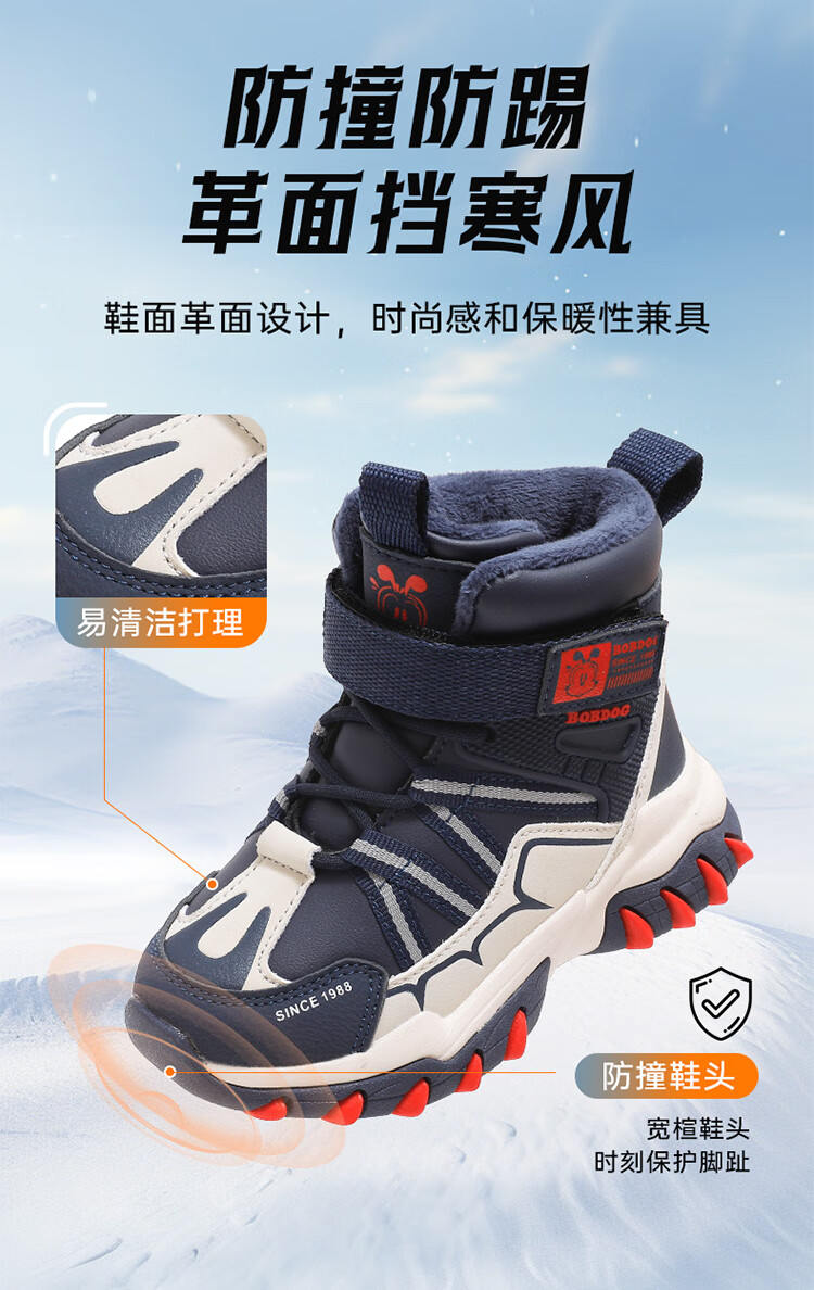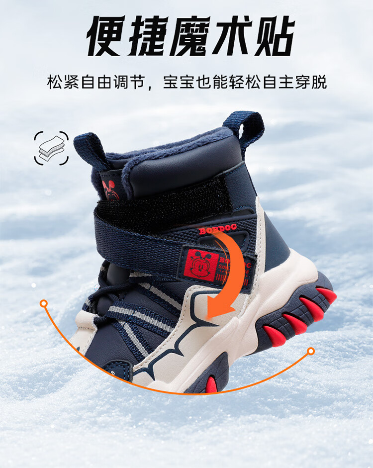 Babudou children's shoes winter velvet warm children's boots boys snow boots 116545099 navy blue/m 34