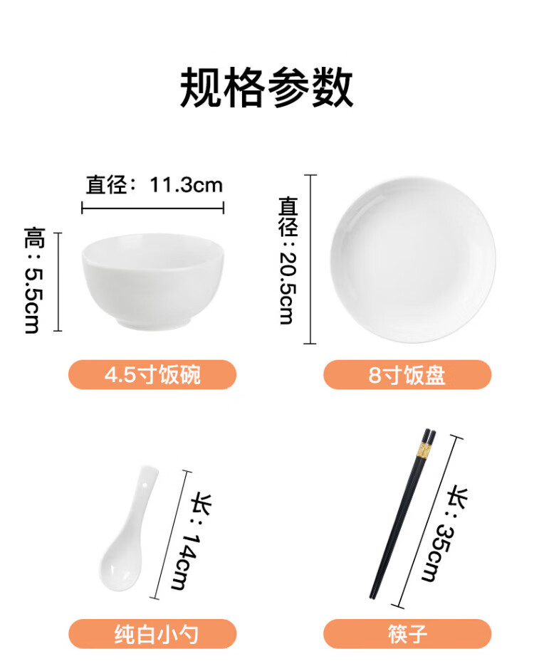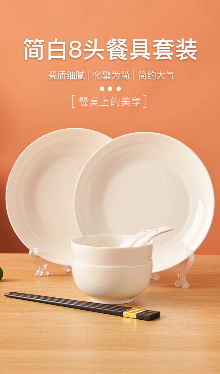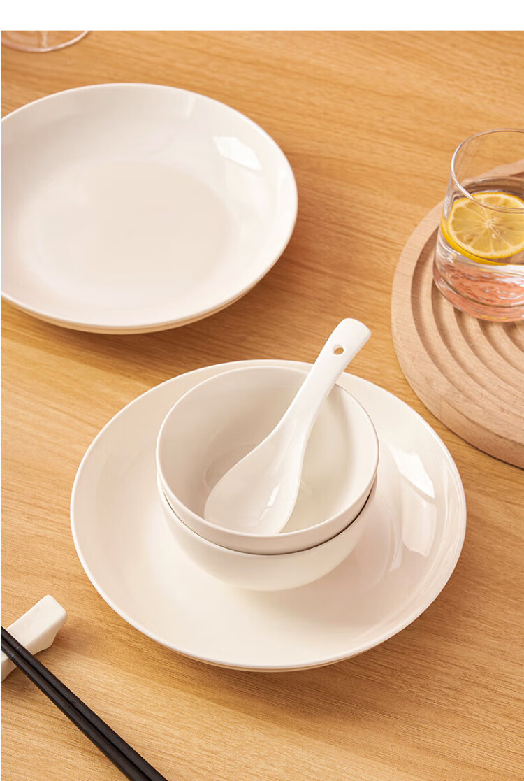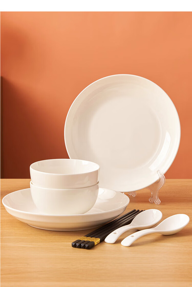 Youlaifu ceramic tableware set pure white bowls and chopsticks household underglaze color dishes set 8-piece set for two people