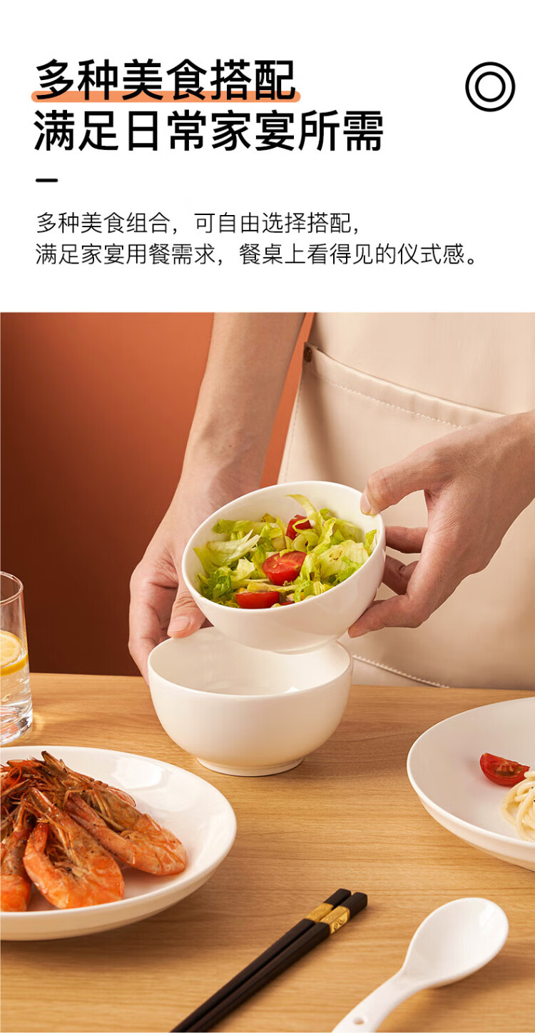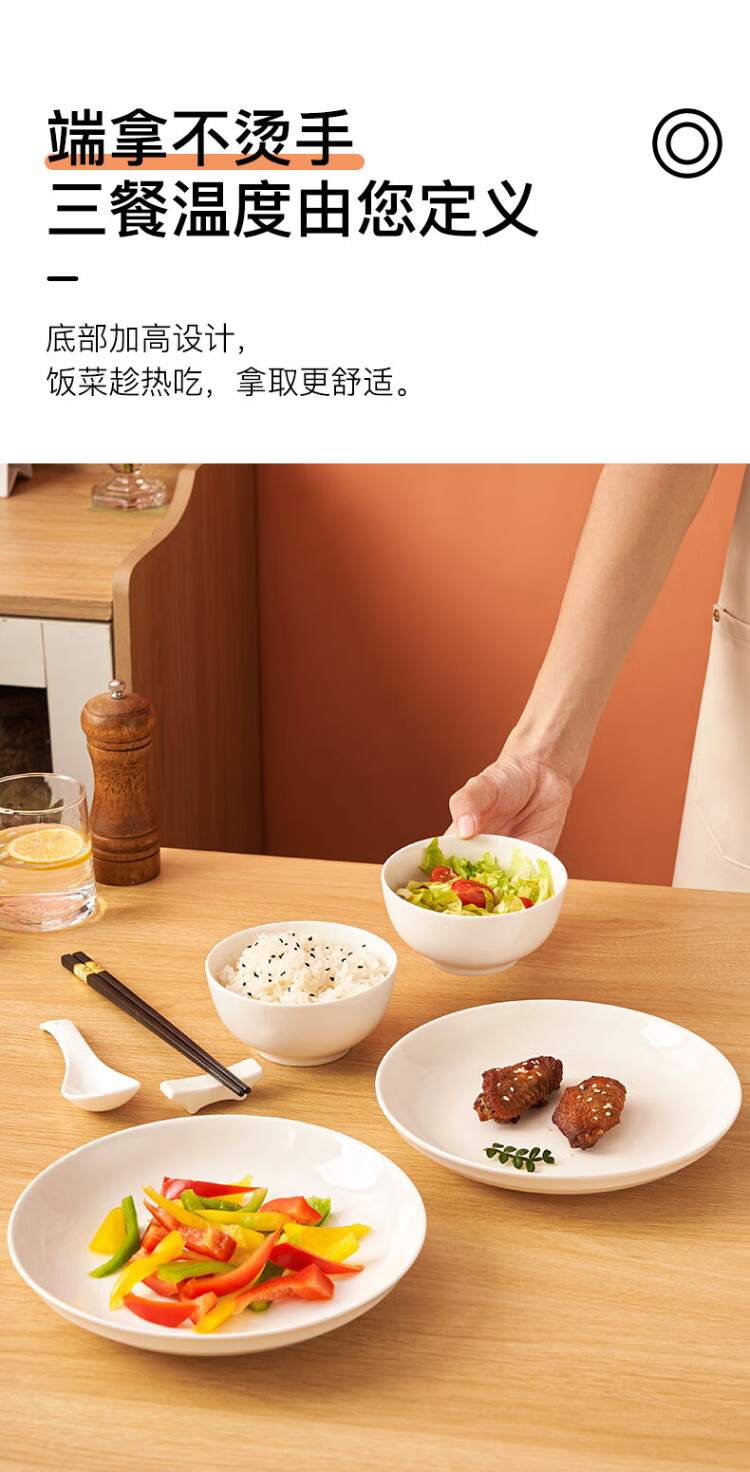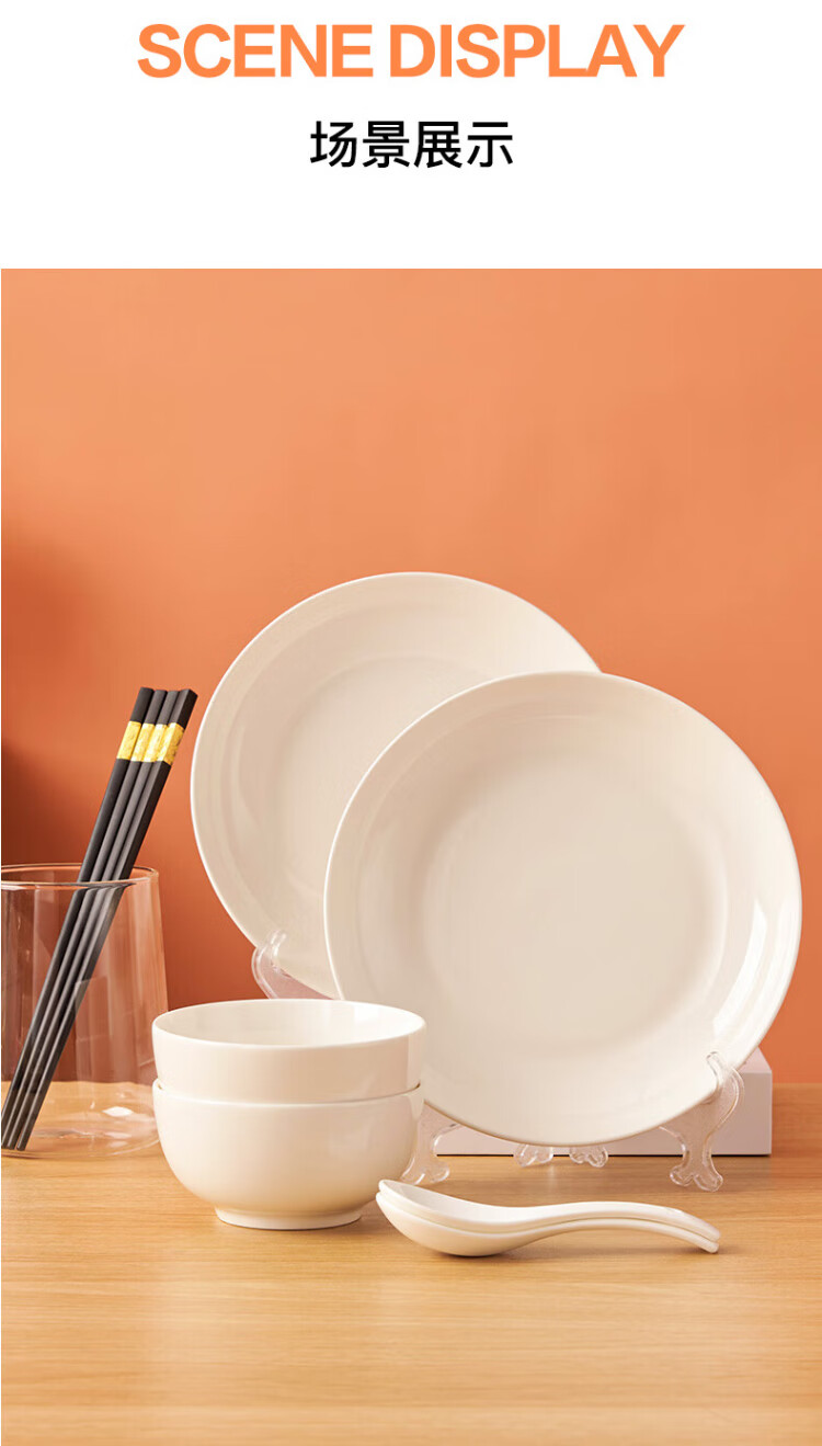 Youlaifu ceramic tableware set pure white bowls and chopsticks household underglaze color dishes set 8-piece set for two people