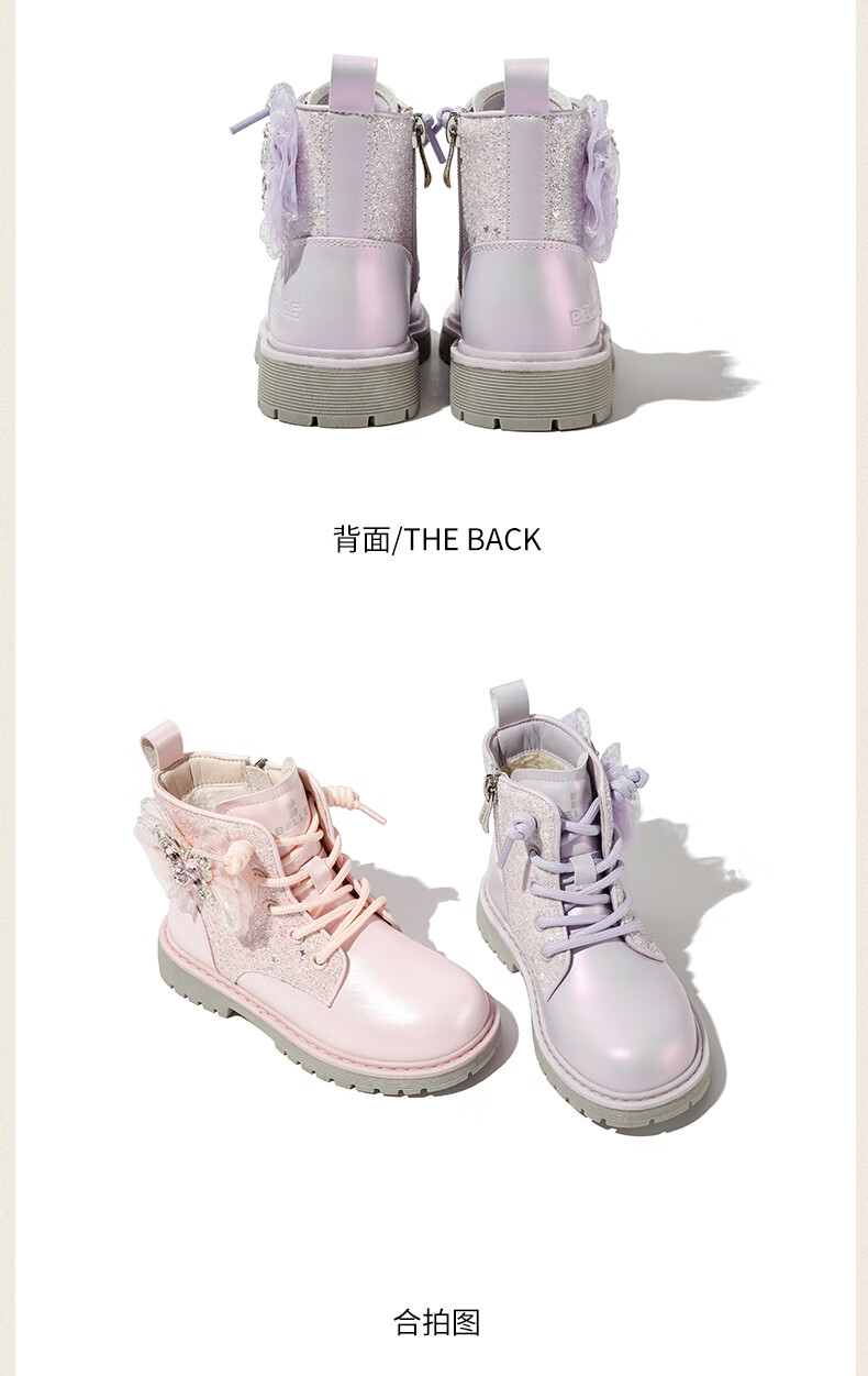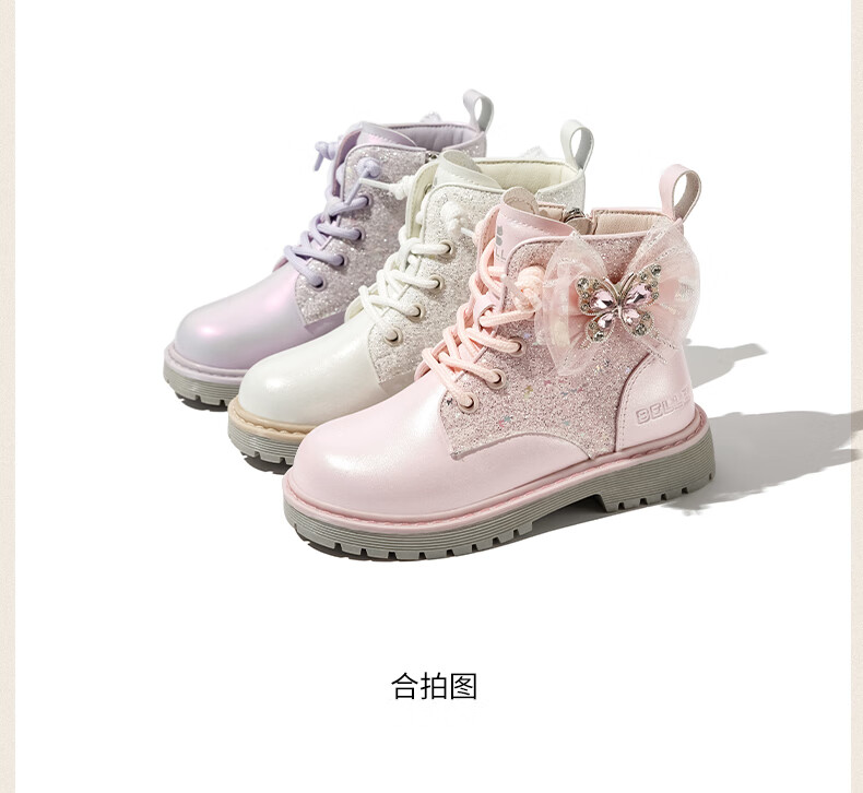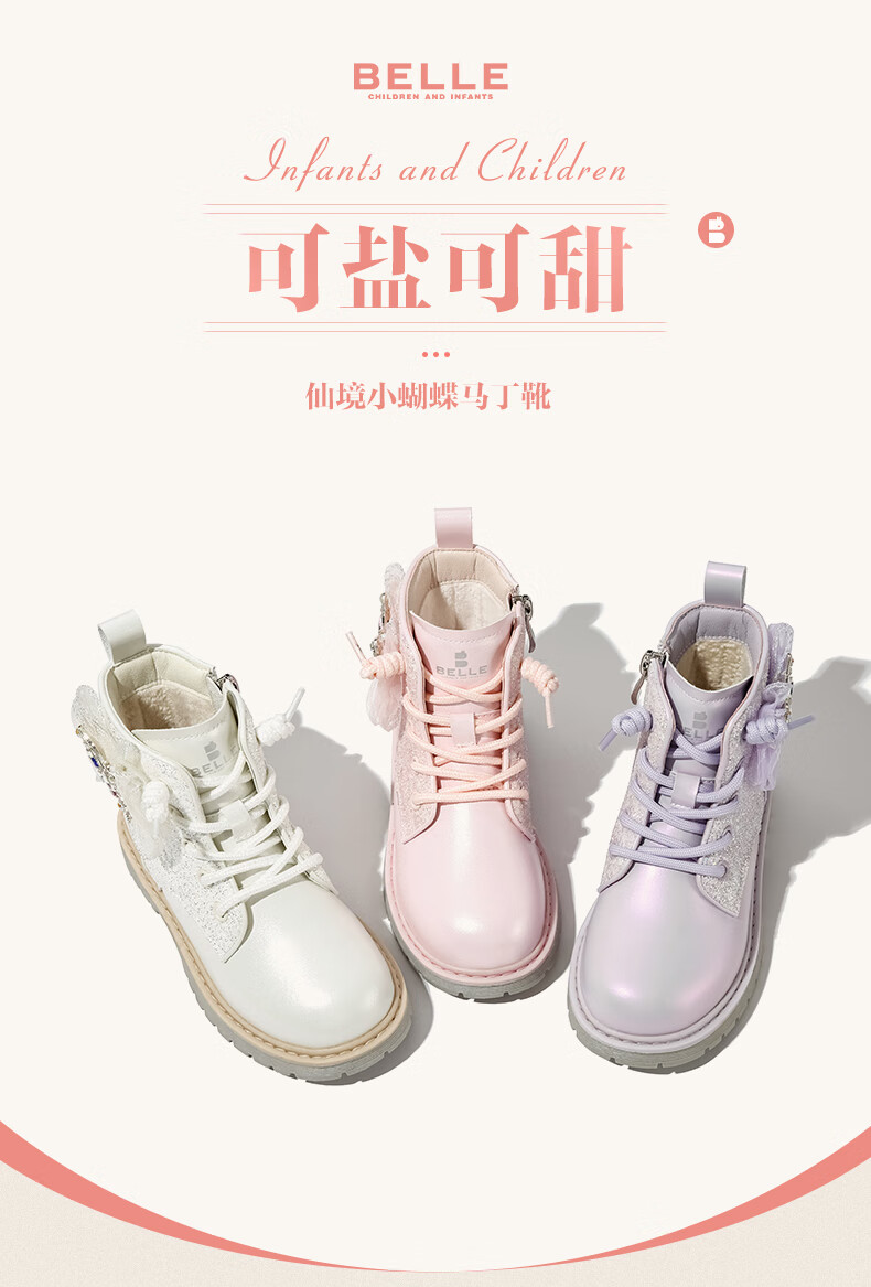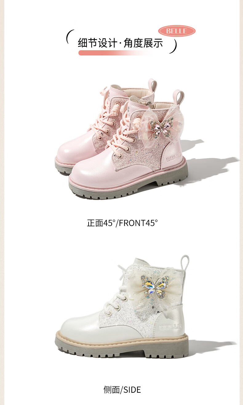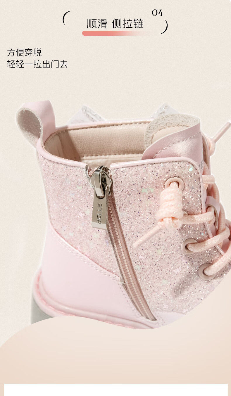 Belle children's shoes princess boots girls fashion Martin boots winter 2024 new style plus velvet warm short boots star meter 32