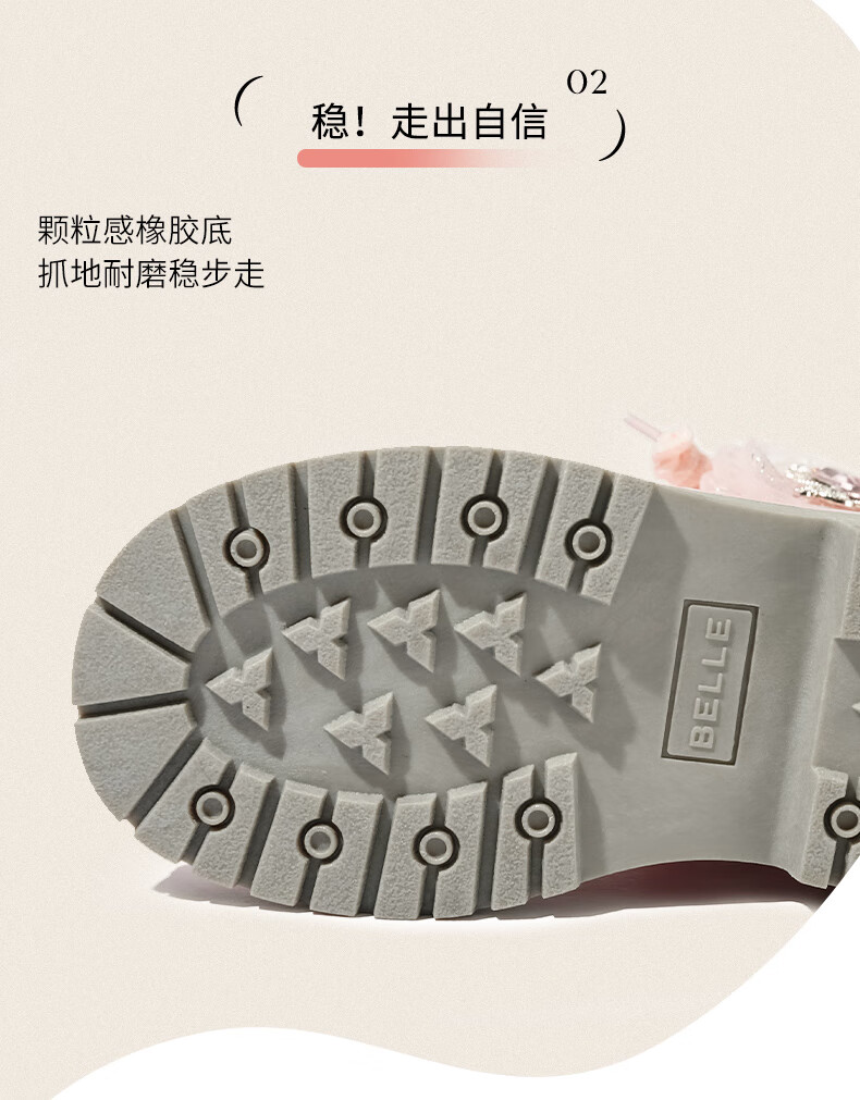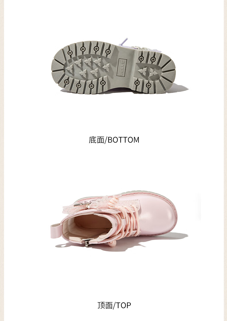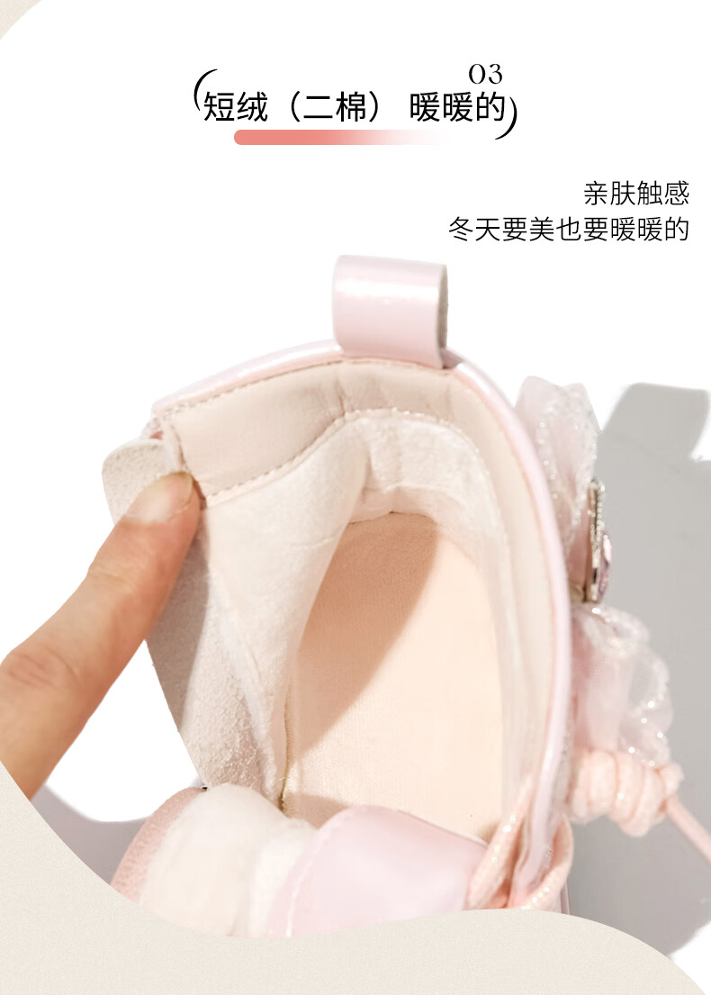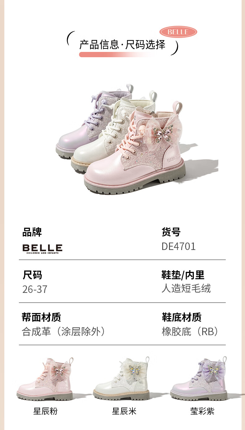 Belle children's shoes princess boots girls fashion Martin boots winter 2024 new style plus velvet warm short boots star meter 32