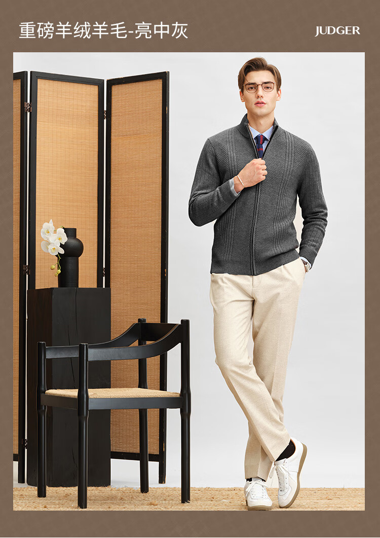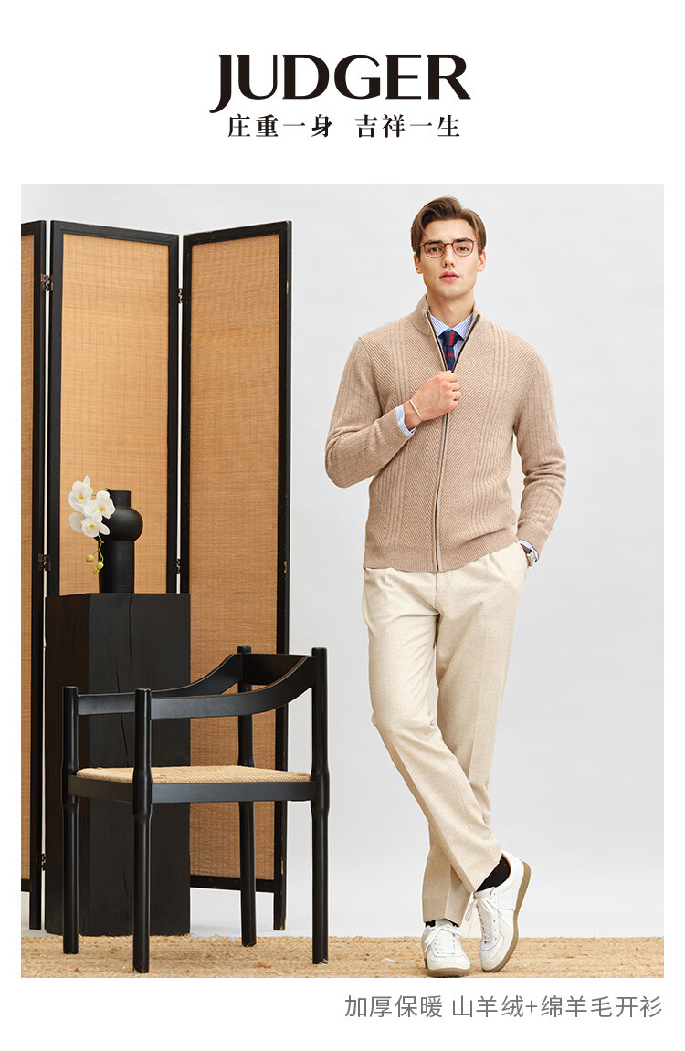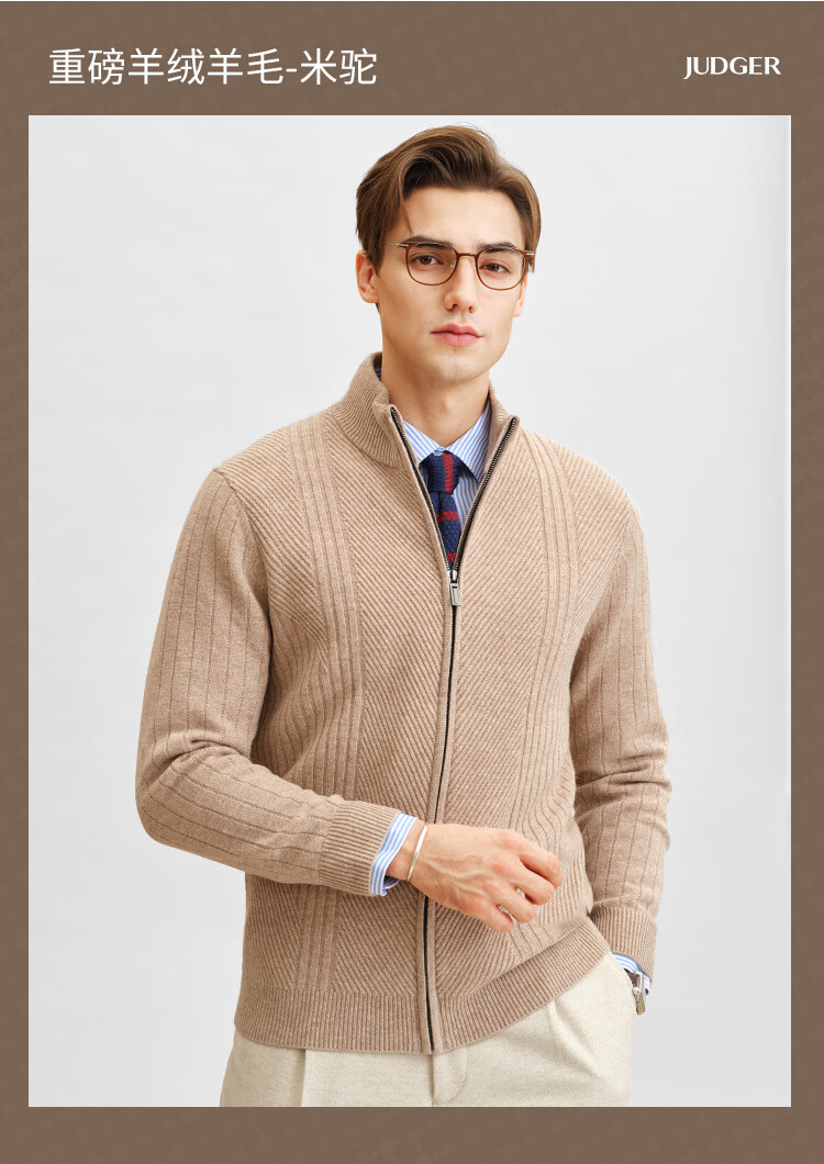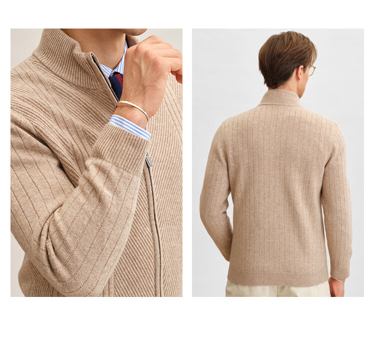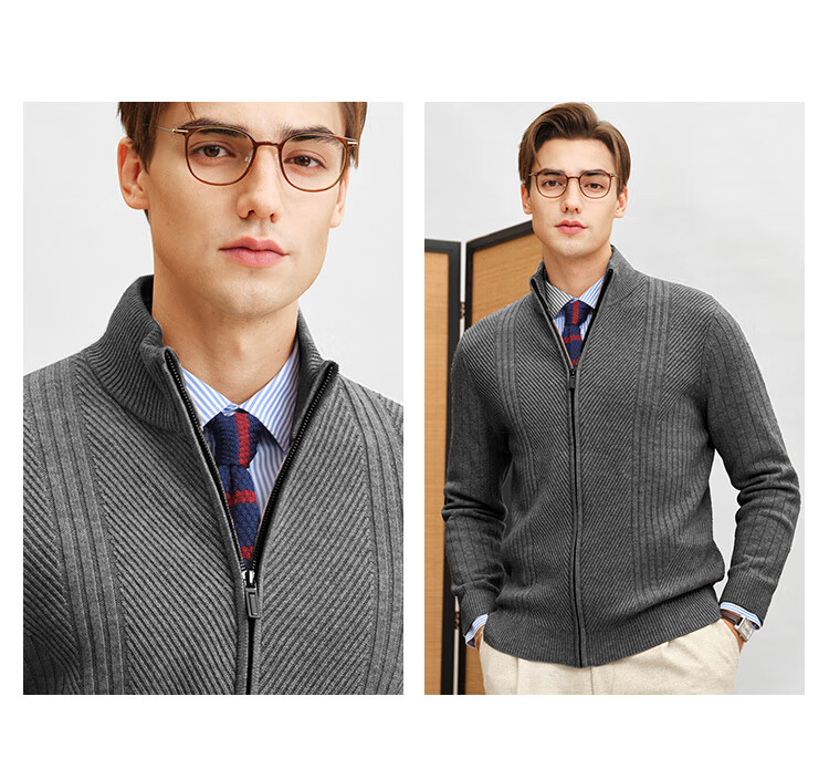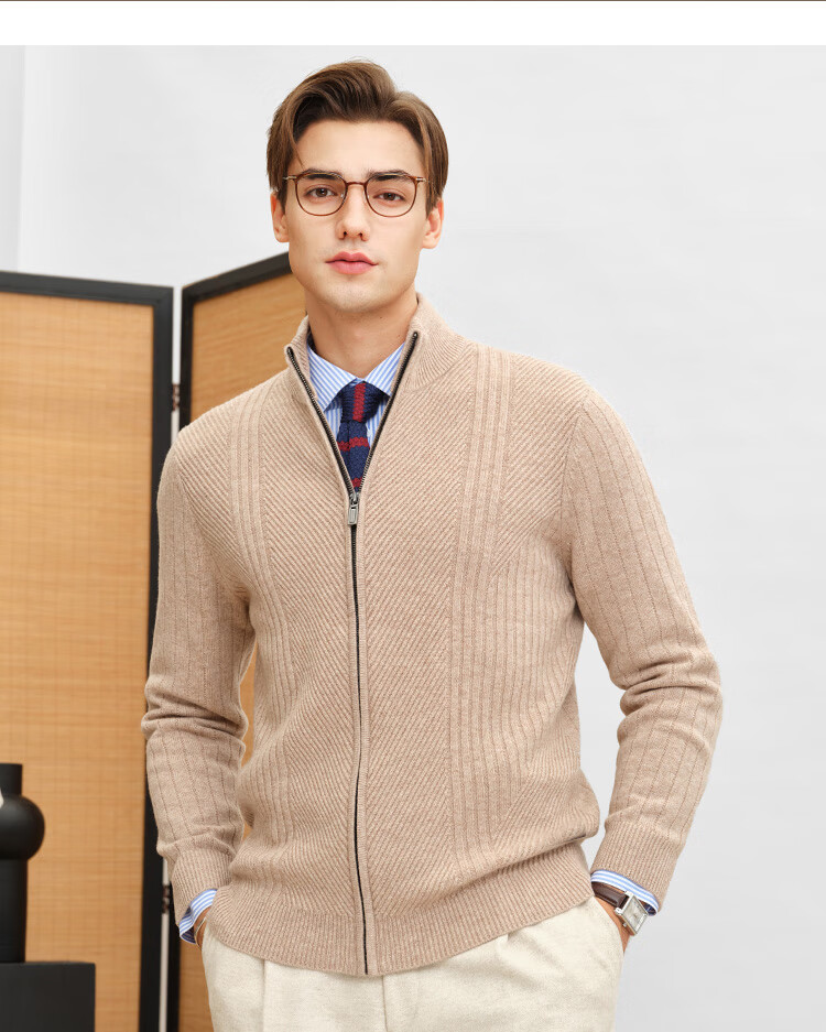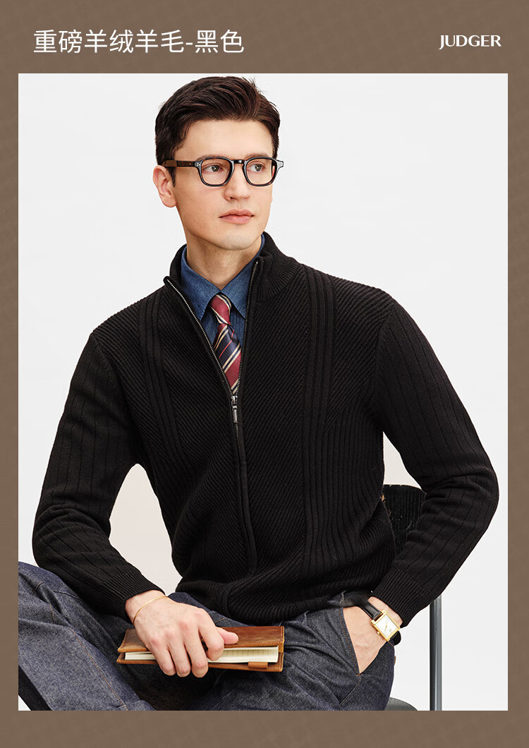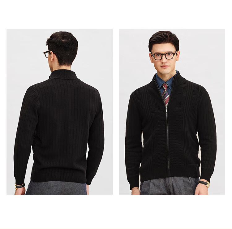 Zhuangji Heavy Thick Cardigan Sweater Men's Winter Zipper Stand Collar Soft Waxy Warm Cashmere Stretch Casual Sweater