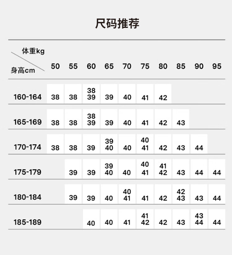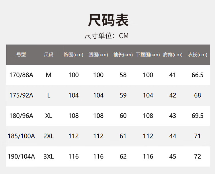 China (cm) 160-165/84-86 165-170 / 88-90 167-172 / 92-96 168-173 / 98-102 170-176 / 106-110
