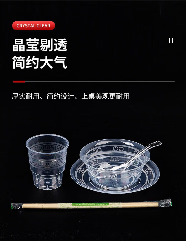 SHUANG YU disposable tableware four-piece set (airline dishes, cups, spoons) 20 sets individually packaged hotel banquet tableware set