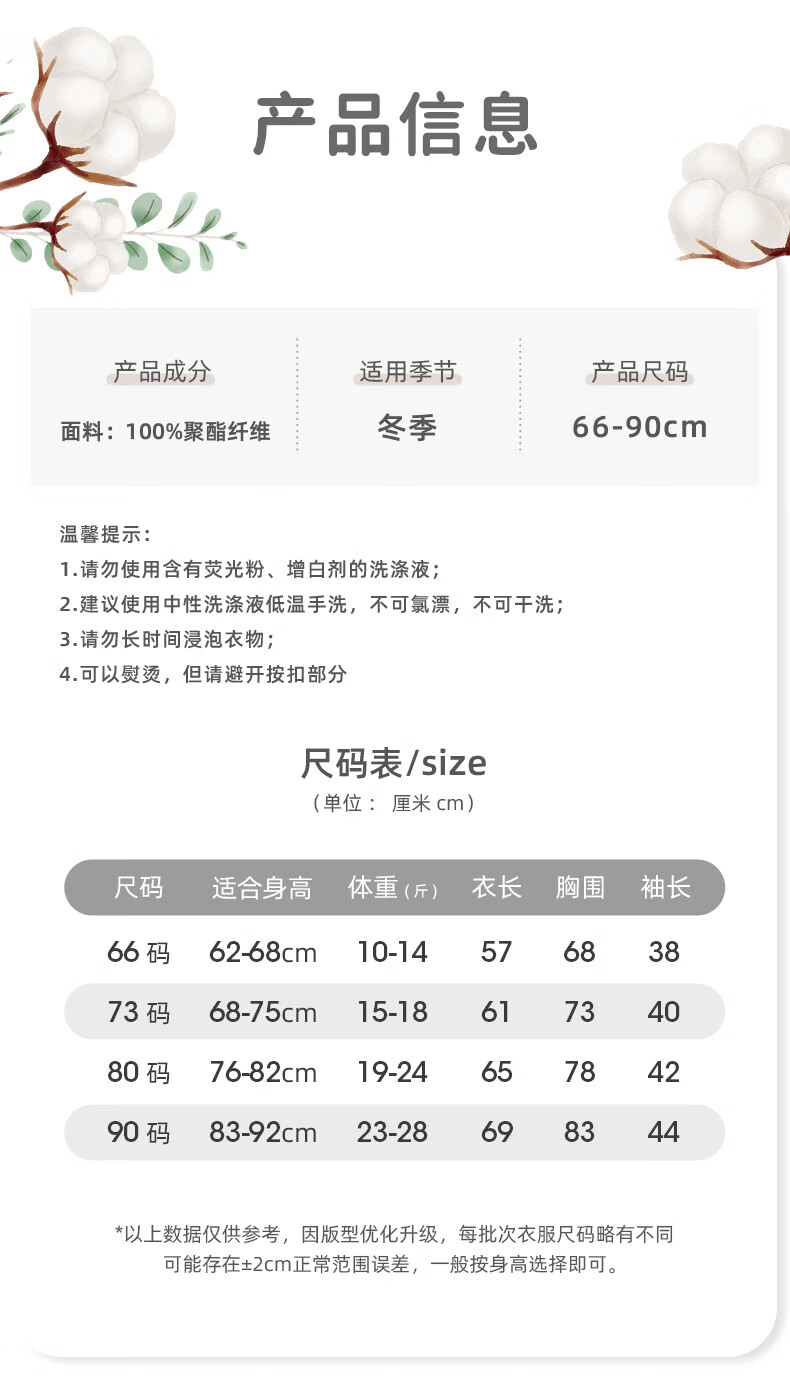 Youqi infant clothes, winter warm jumpsuits, plus velvet fart clothes, baby autumn and winter outing clothes, thickened baby cotton clothes