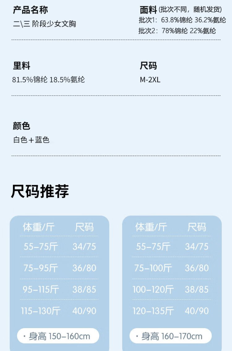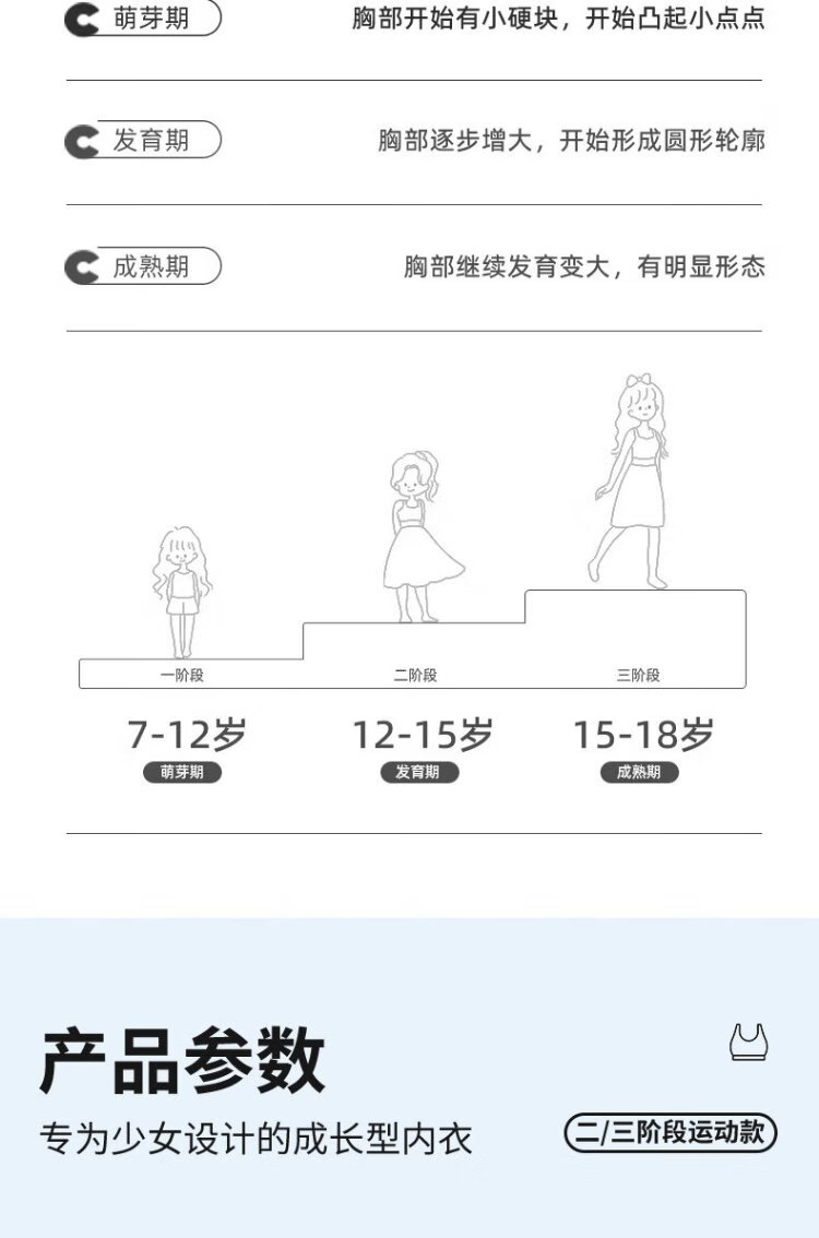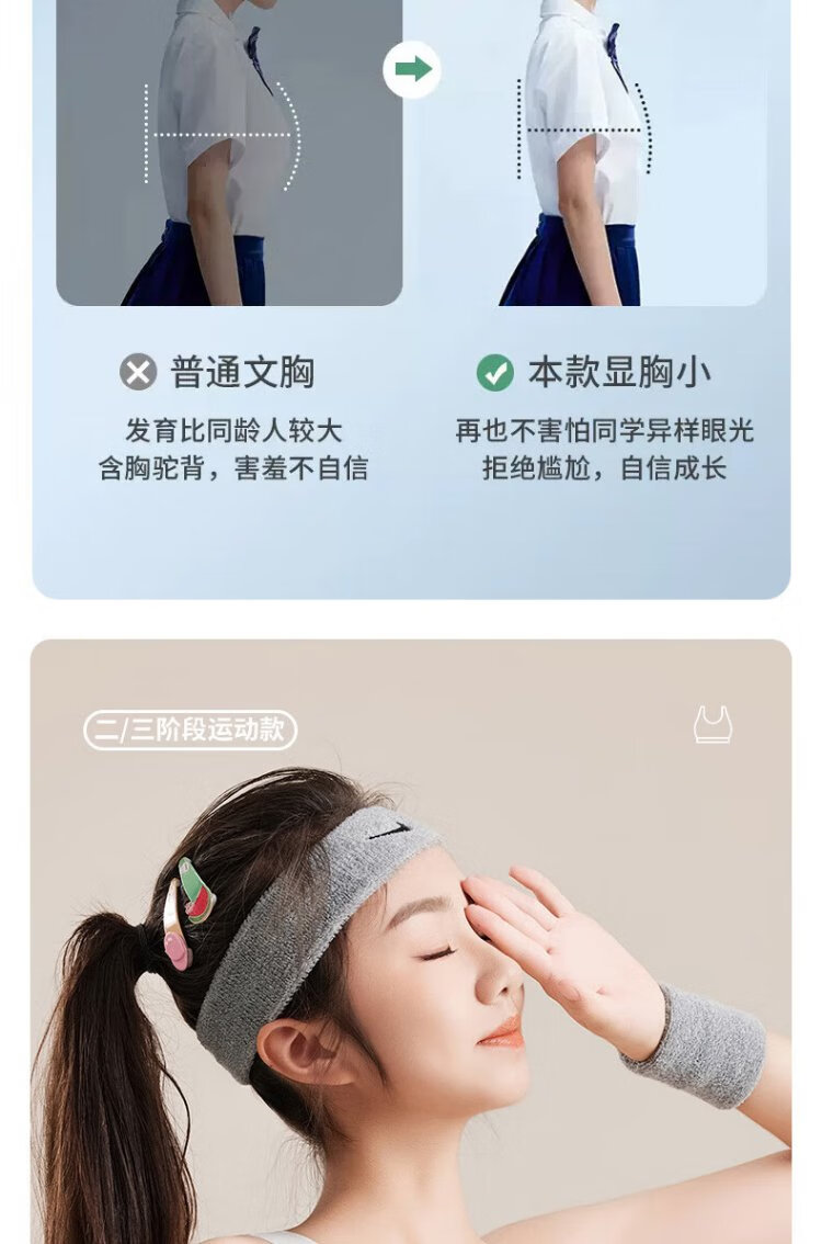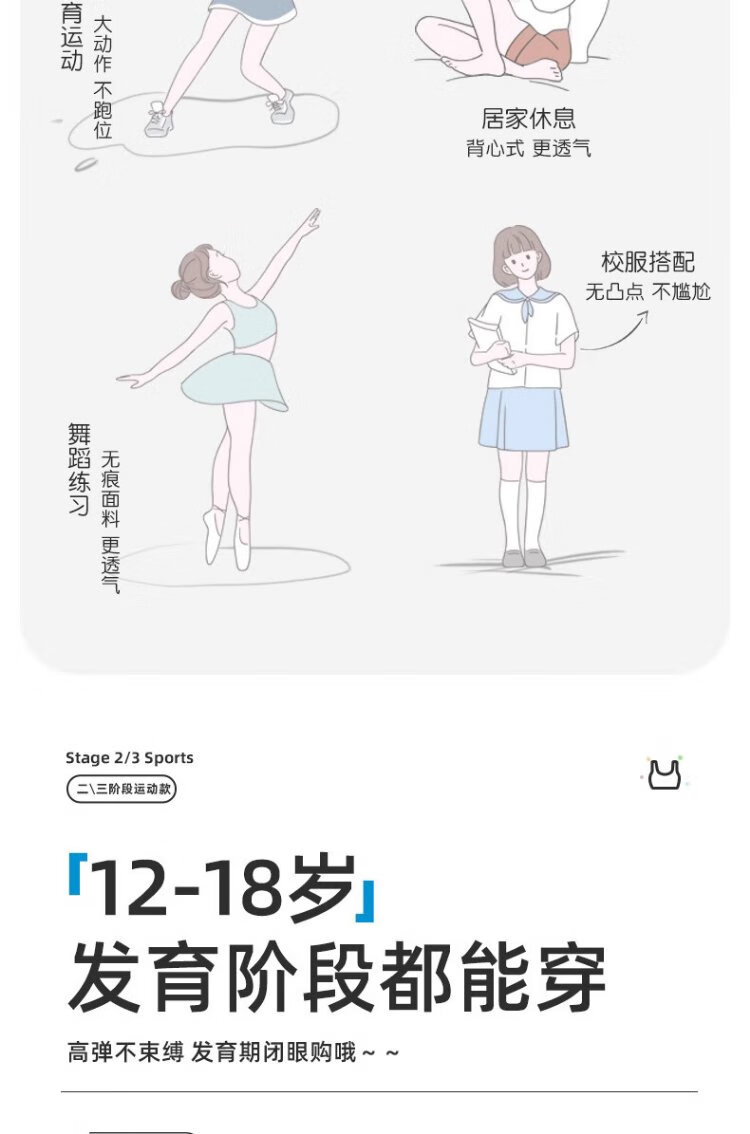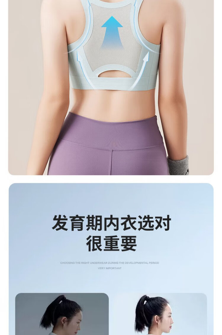 Ancient and modern (GUJIN) 2-pack girls' bras, seamless bras for middle and high school students in the developmental period, older children's posture-correcting and shock-proof sports thin vests