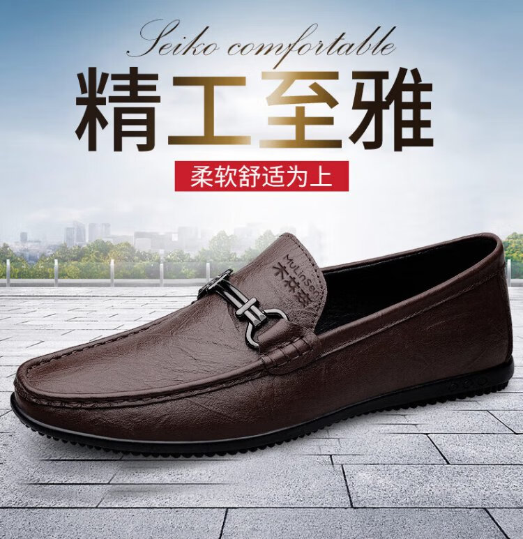 MULINSEN Doudou shoes men's casual leather shoes soft sole men's business leather shoes slip-on shoes for men T8826