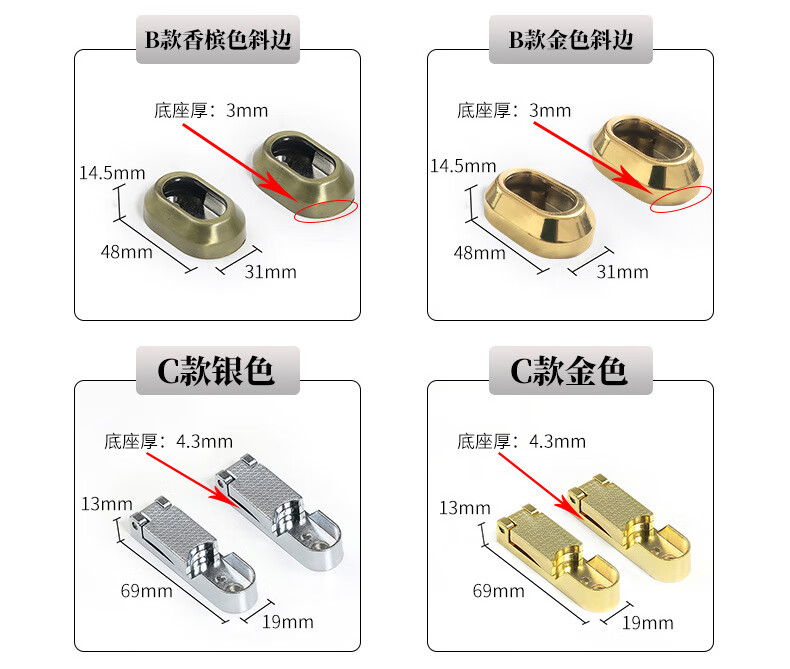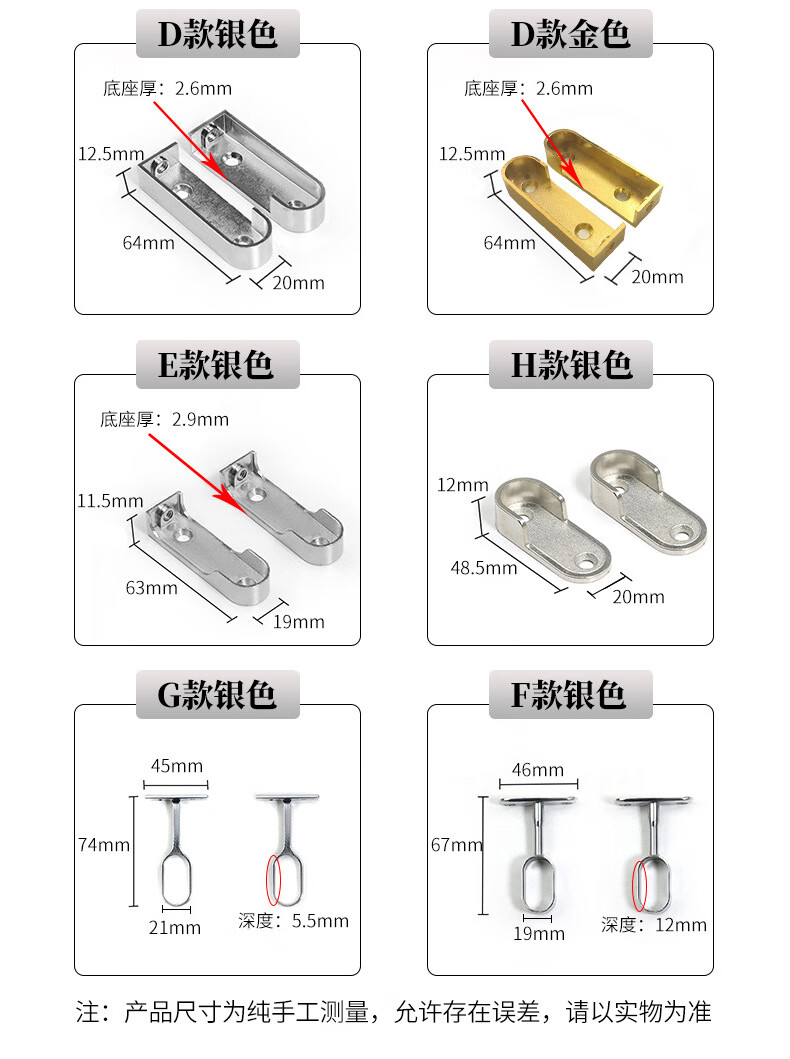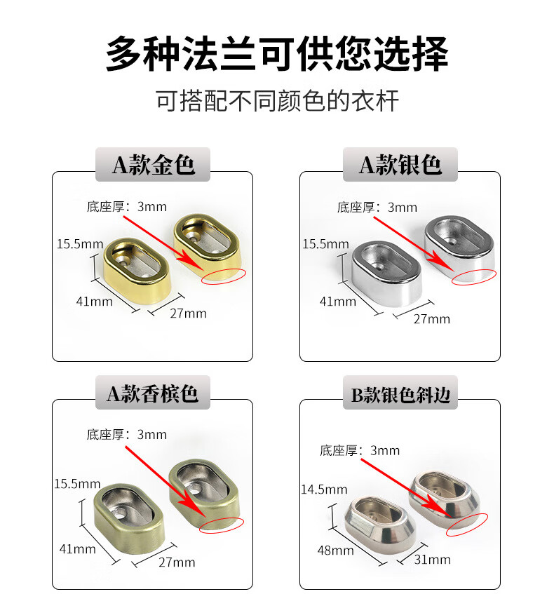 Masifo cuttable thickened aluminum alloy wardrobe fixed with flange seat furniture accessories *1 pack H style flange seat silver 10 pieces