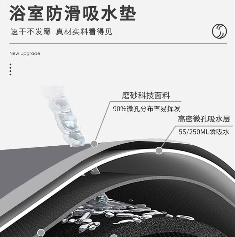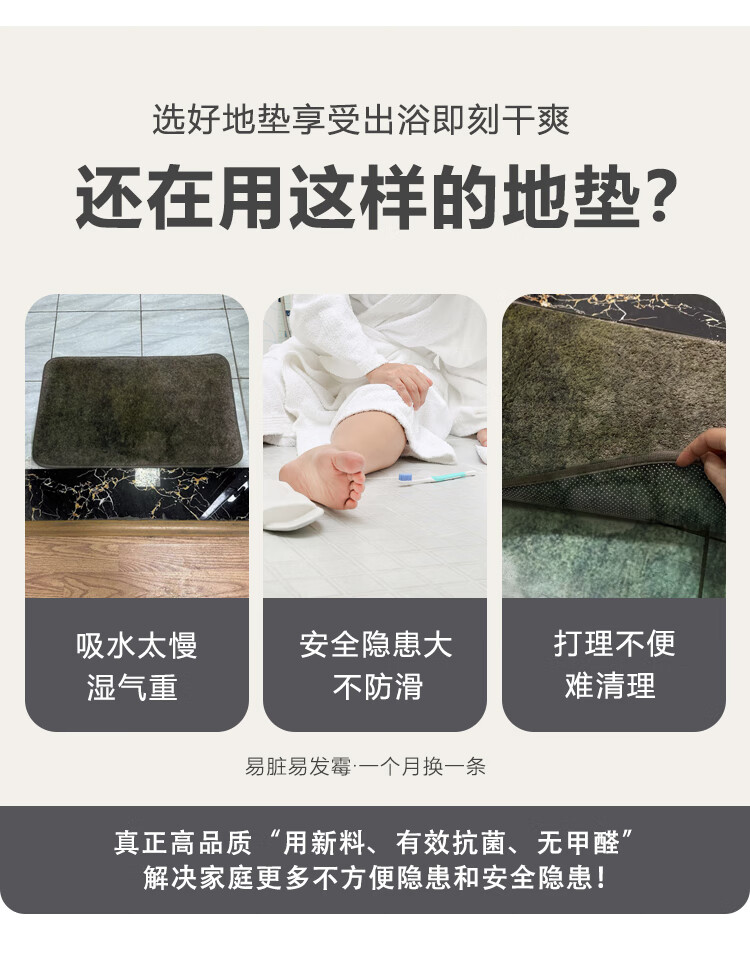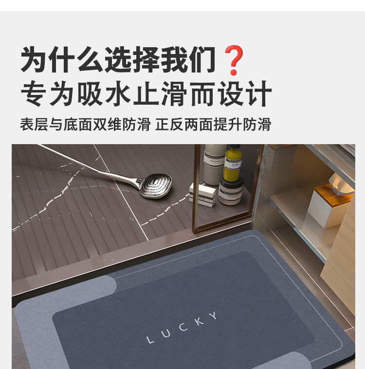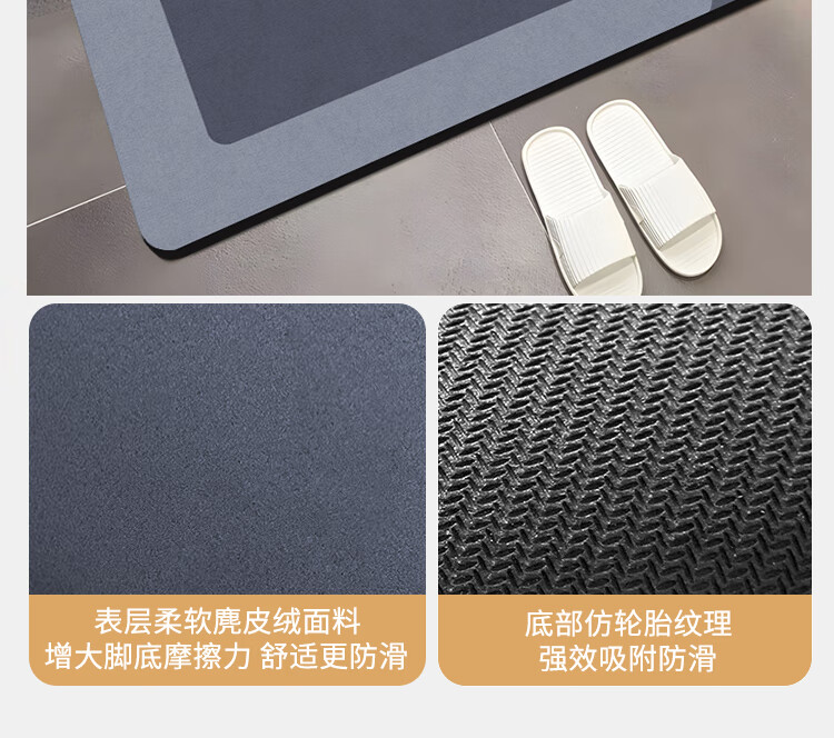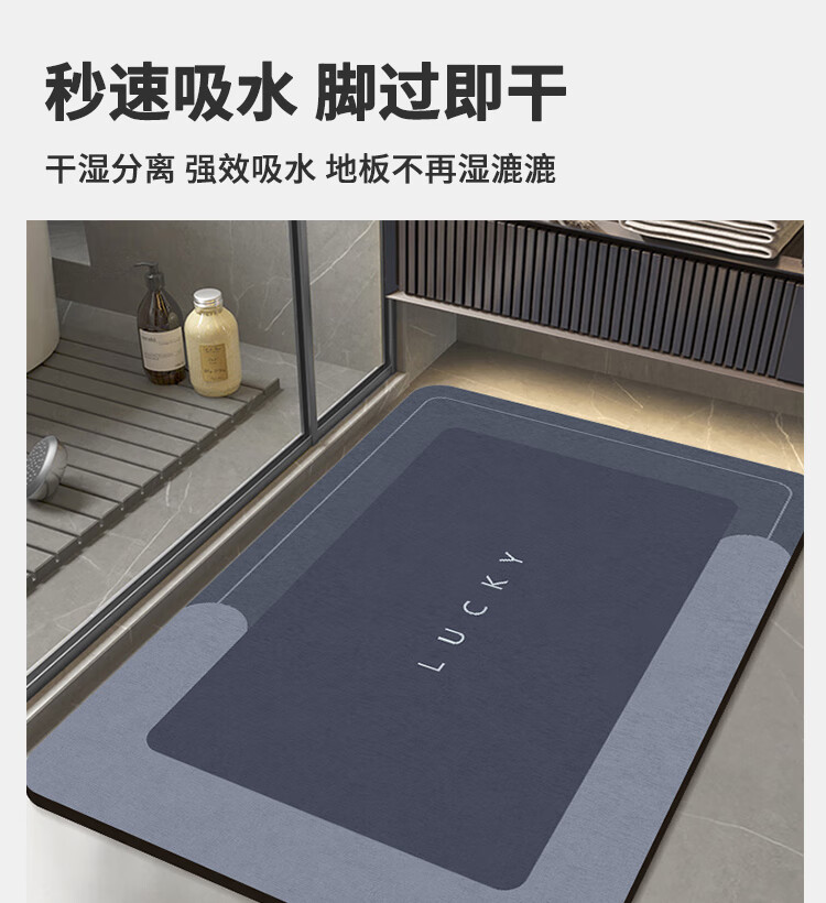 Budisi bathroom floor mat absorbs water into the kitchen bathroom toilet entrance door non-slip foot mat household mat 60*40CM