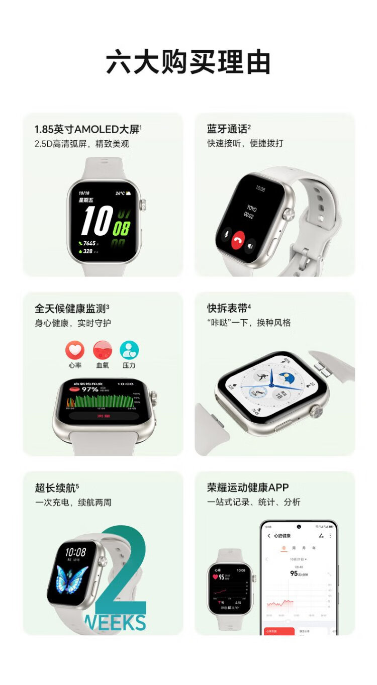 Honor personally selected ROSSINI smartwatch 2i Magic Night Black 1.85-inch AMOLED large screen Bluetooth calling All-weather health monitoring