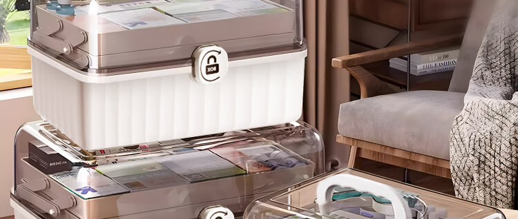 Miaoxinsi PET high-transparency home medicine box classification storage box large extra large capacity medicine box small first aid box for home use