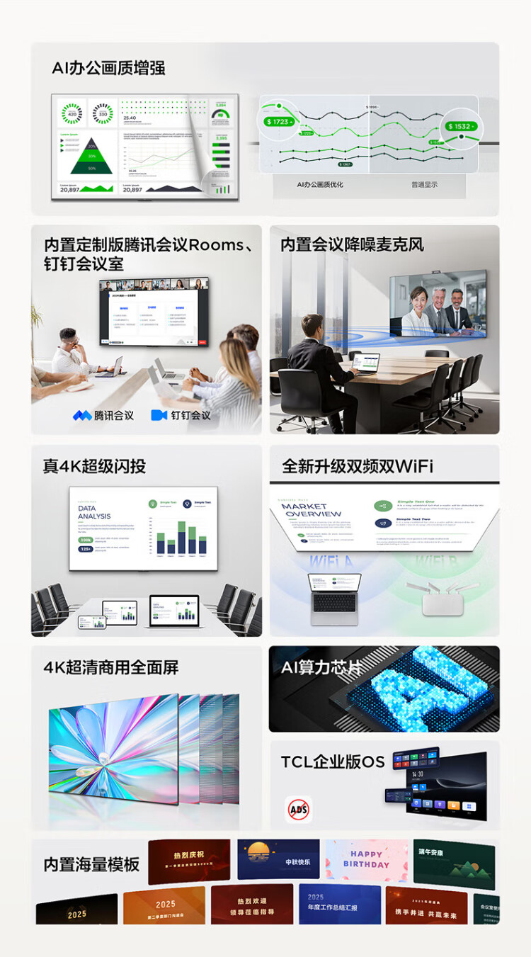TCL55-inch conference TV tablet all-in-one wireless projection 4K ultra-clear mobile ultra-thin conference room display office home training commercial TV teaching large screen N55A