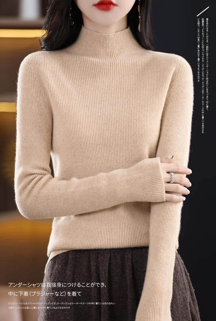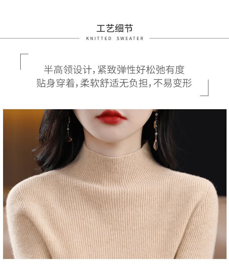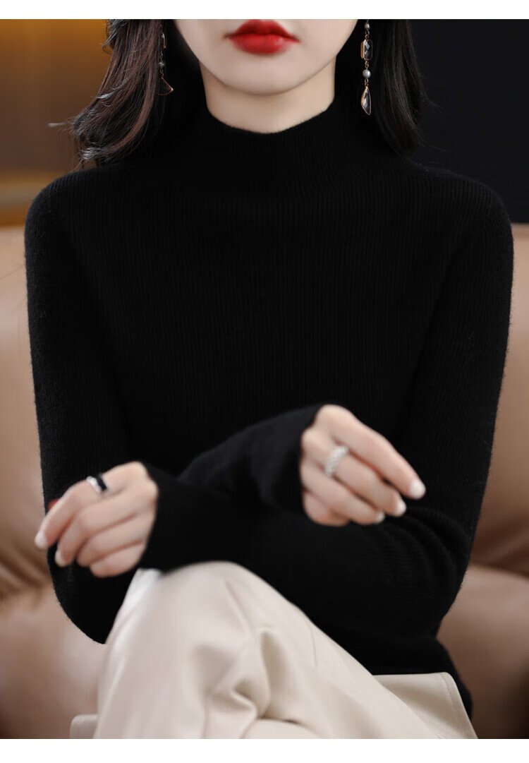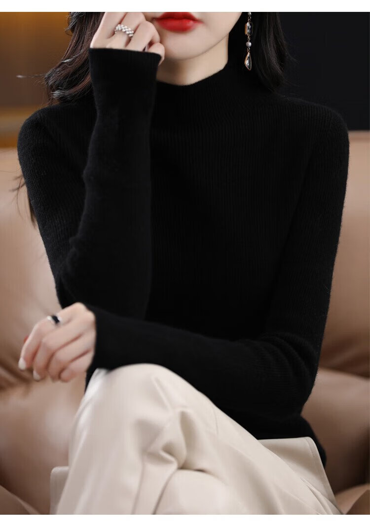 GUJIN knitted bottoming shirt for women, half turtleneck sweater, slim long-sleeved mid-collar top, black