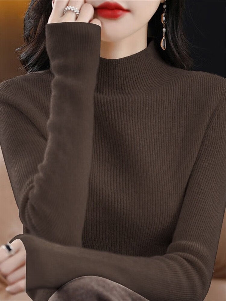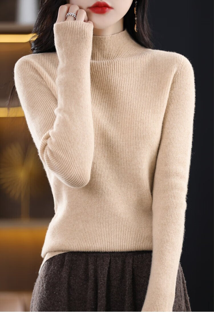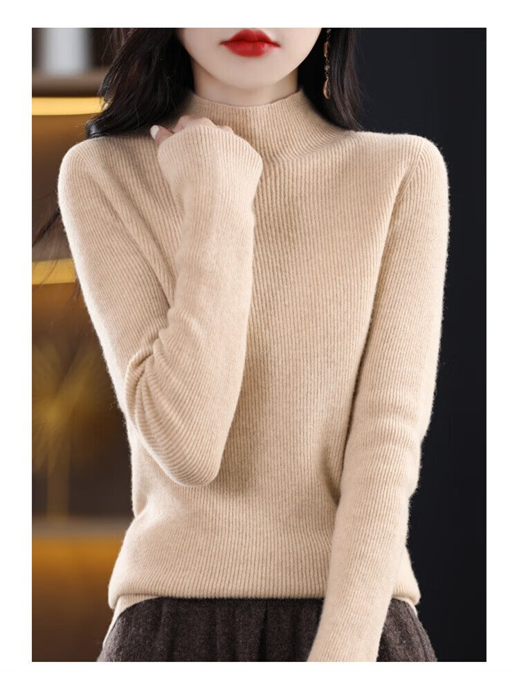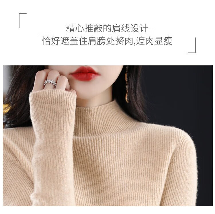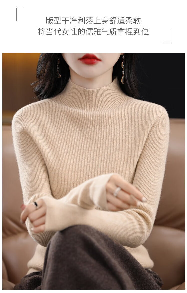 GUJIN knitted bottoming shirt for women, half turtleneck sweater, slim long-sleeved mid-collar top, black