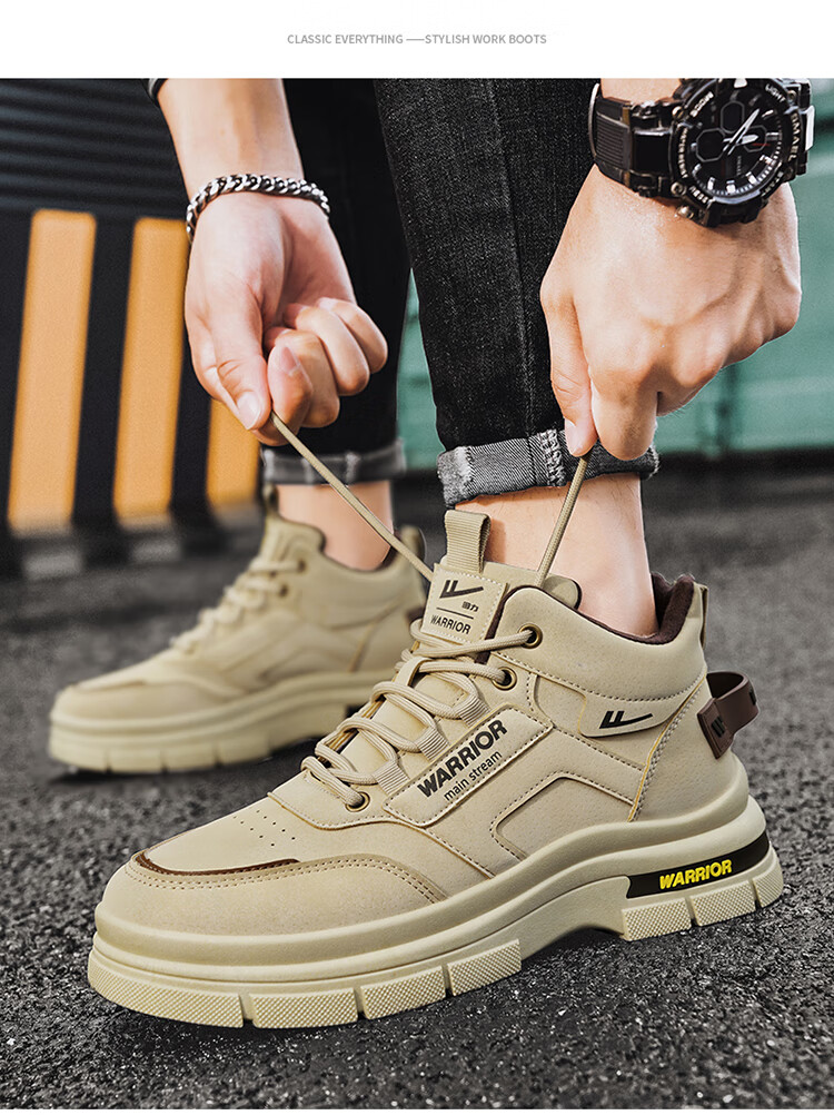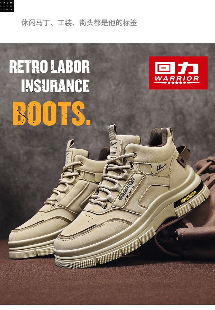 Pull back official Martin boots men's autumn and winter warm high-top snow boots outdoor boots men's khaki plus velvet 42