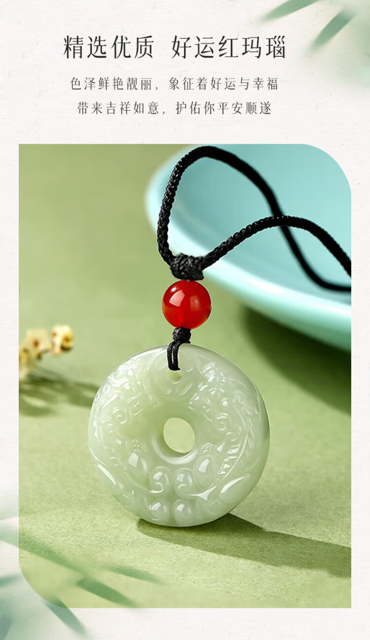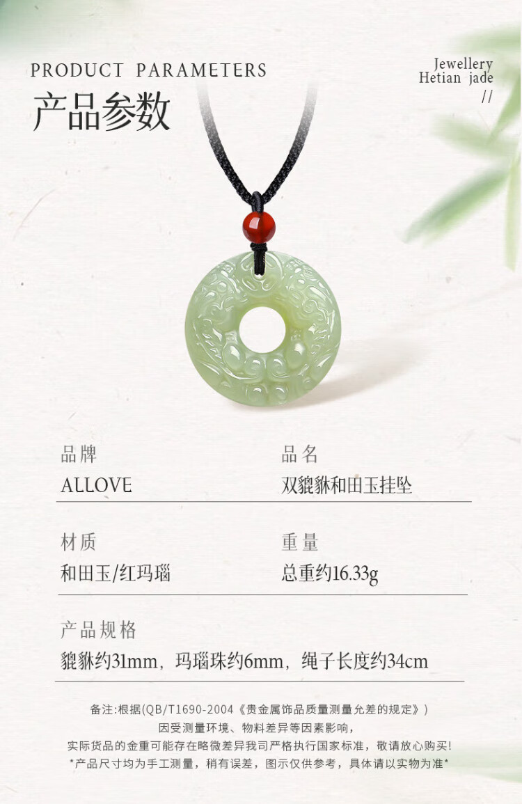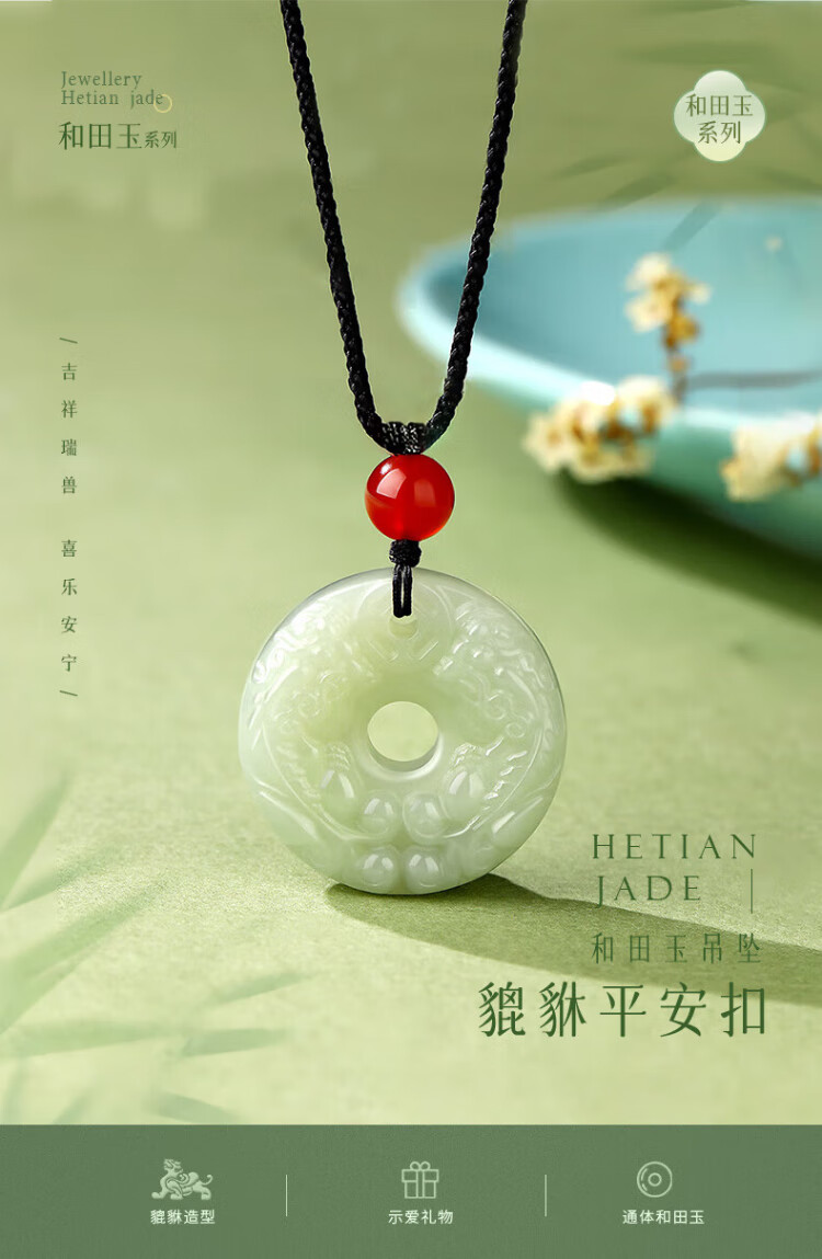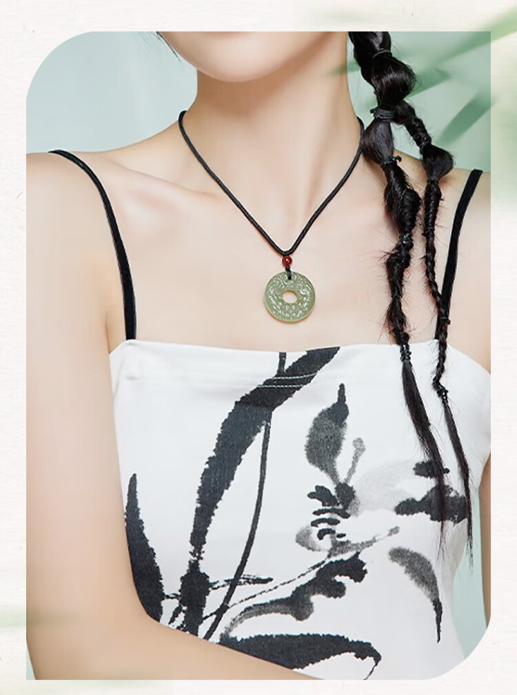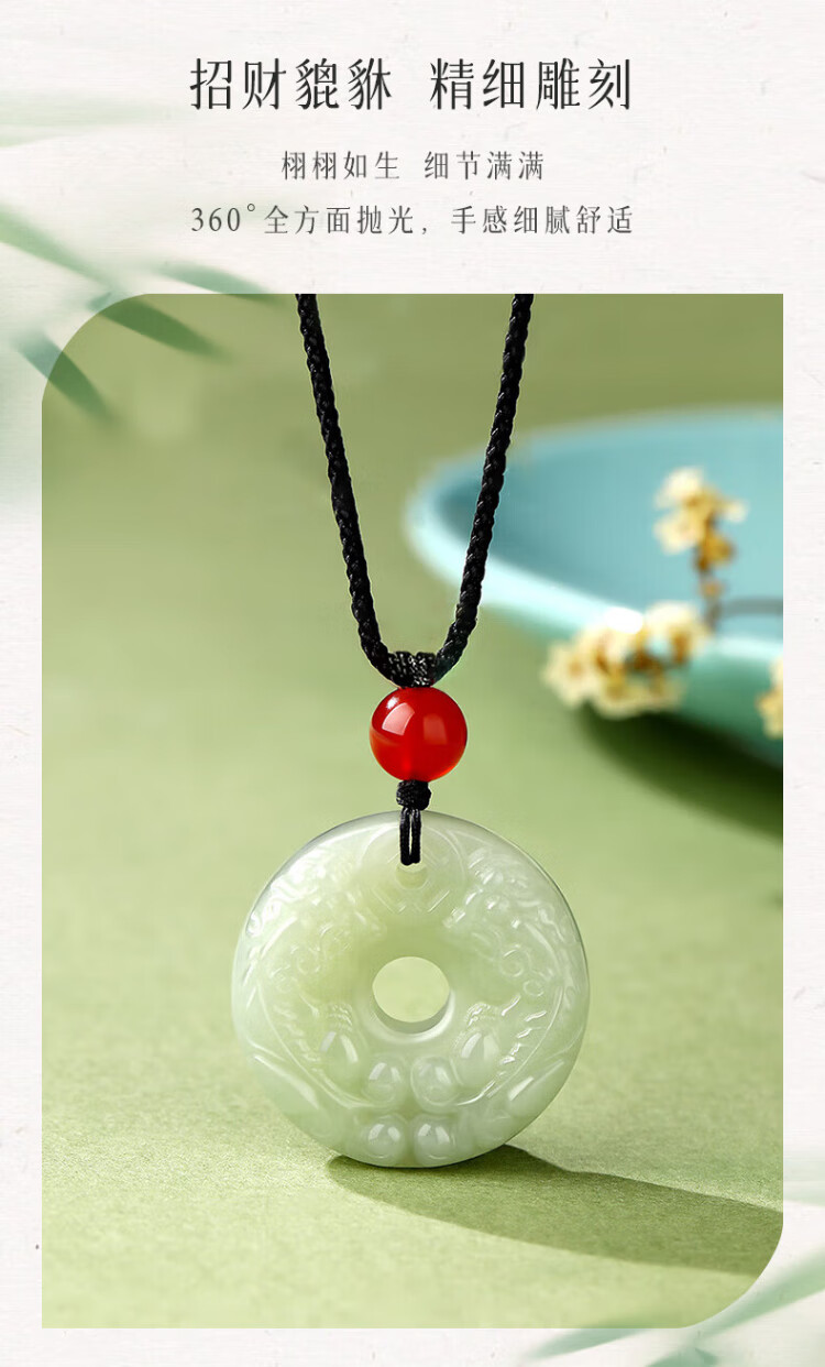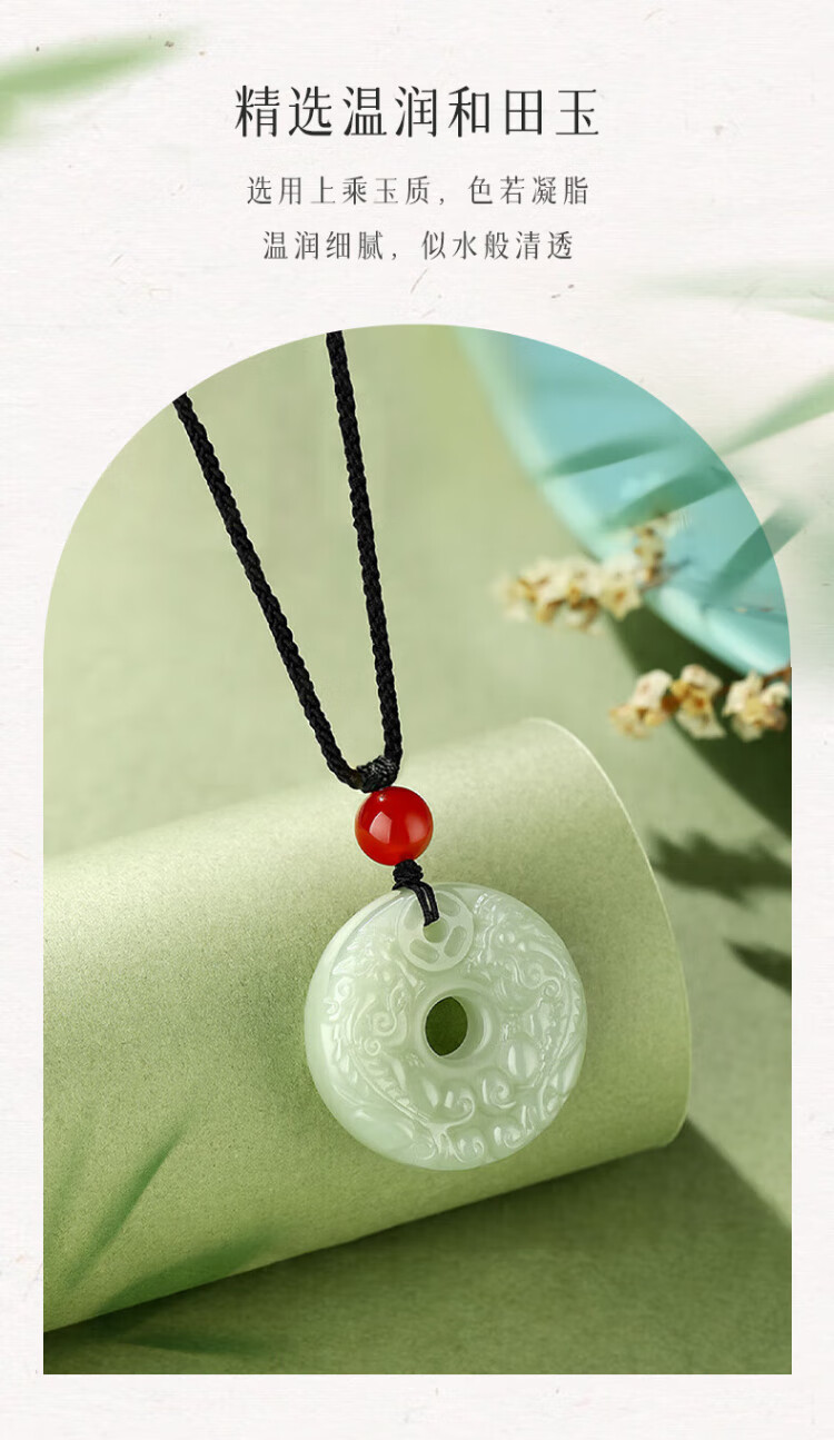 ALLOVE Pixiu Hetian Jade Pendant for Men and Women Safety Button Jade Pendant Necklace Birthday Gift for Boyfriend and Husband Practical for Marriage