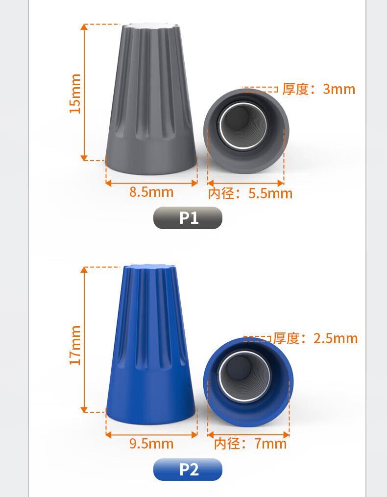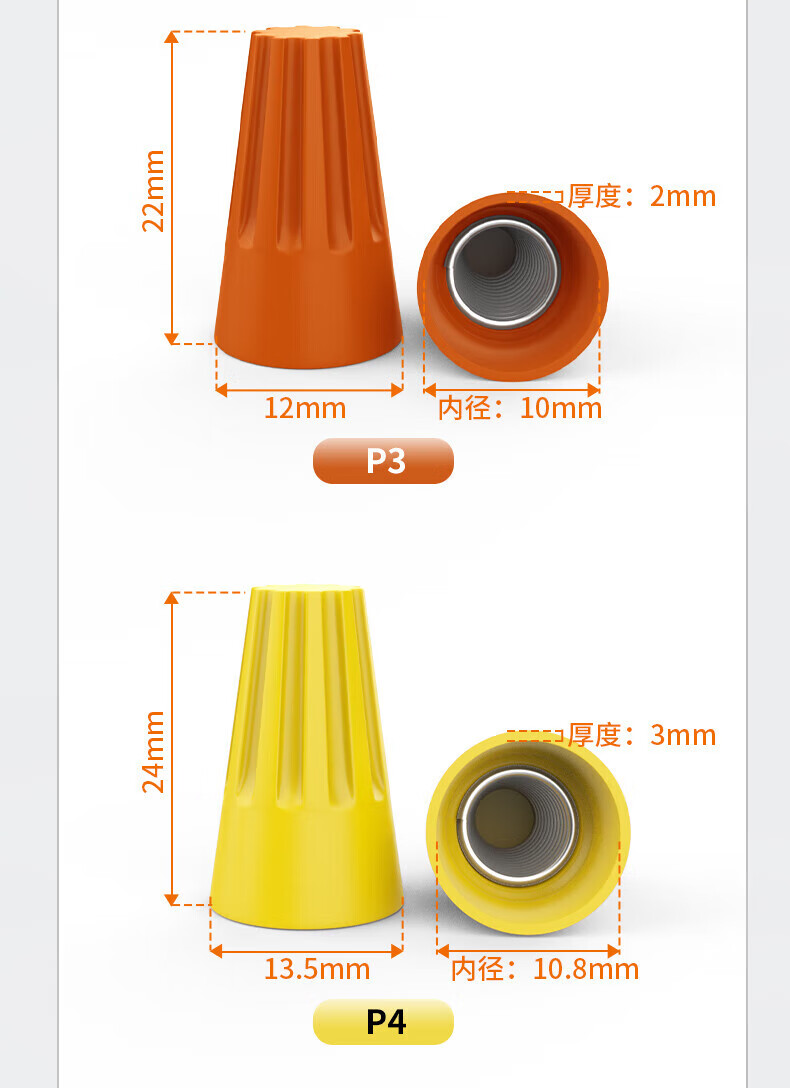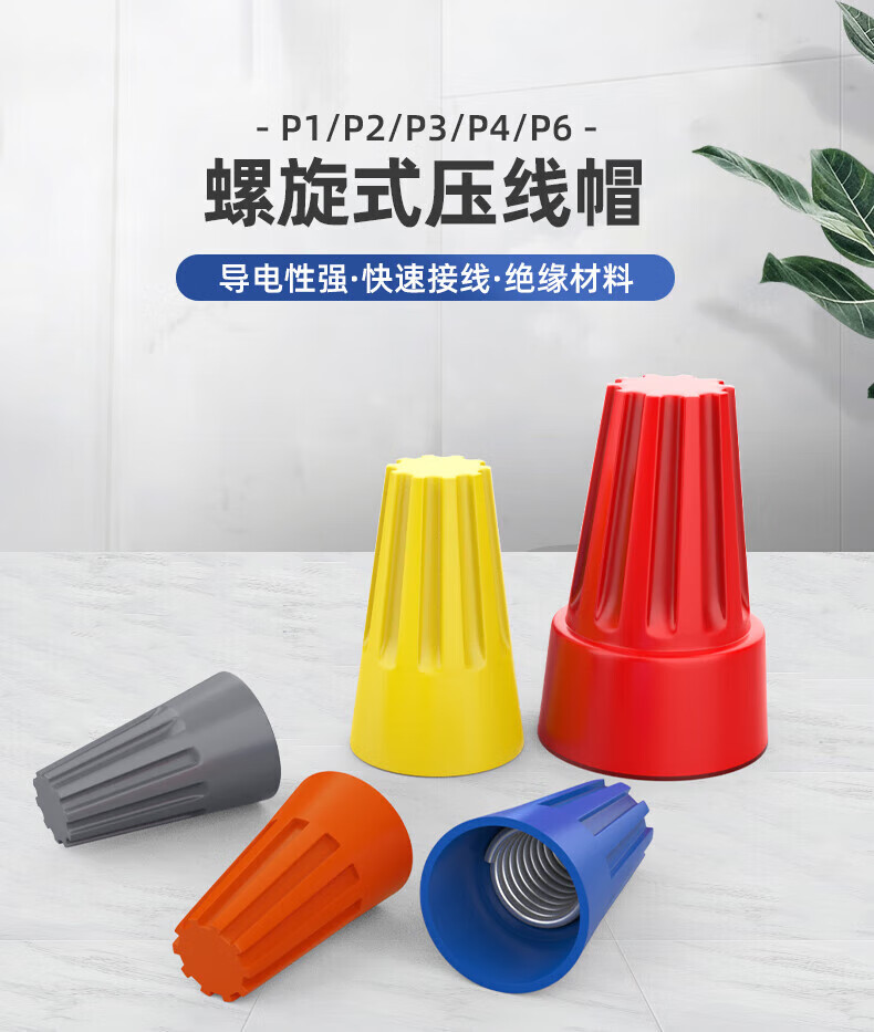 Huijun Terminal Block Terminal Cap Closed Terminal Nylon Crimp Cap Closed Terminal Spring Spiral Nipple Terminal P1-P6 Boxed 100 pieces/box