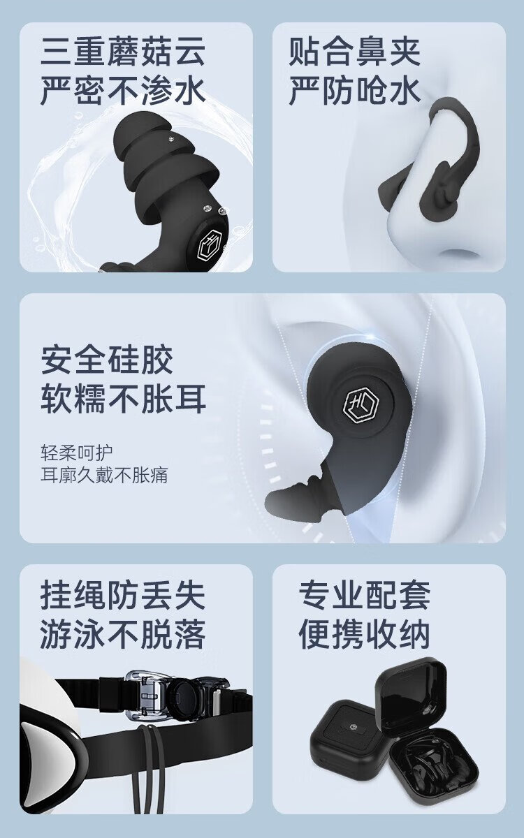 Made in Tokyo, swimming nose clip earplug set, professional waterproof silicone earplugs, nose clip anti-choking equipment, portable small black box