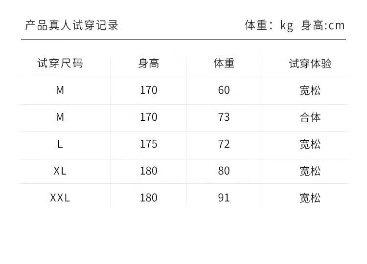 China (cm) 160-165/84-86 165-170 / 88-90 167-172 / 92-96 168-173 / 98-102 170-176 / 106-110