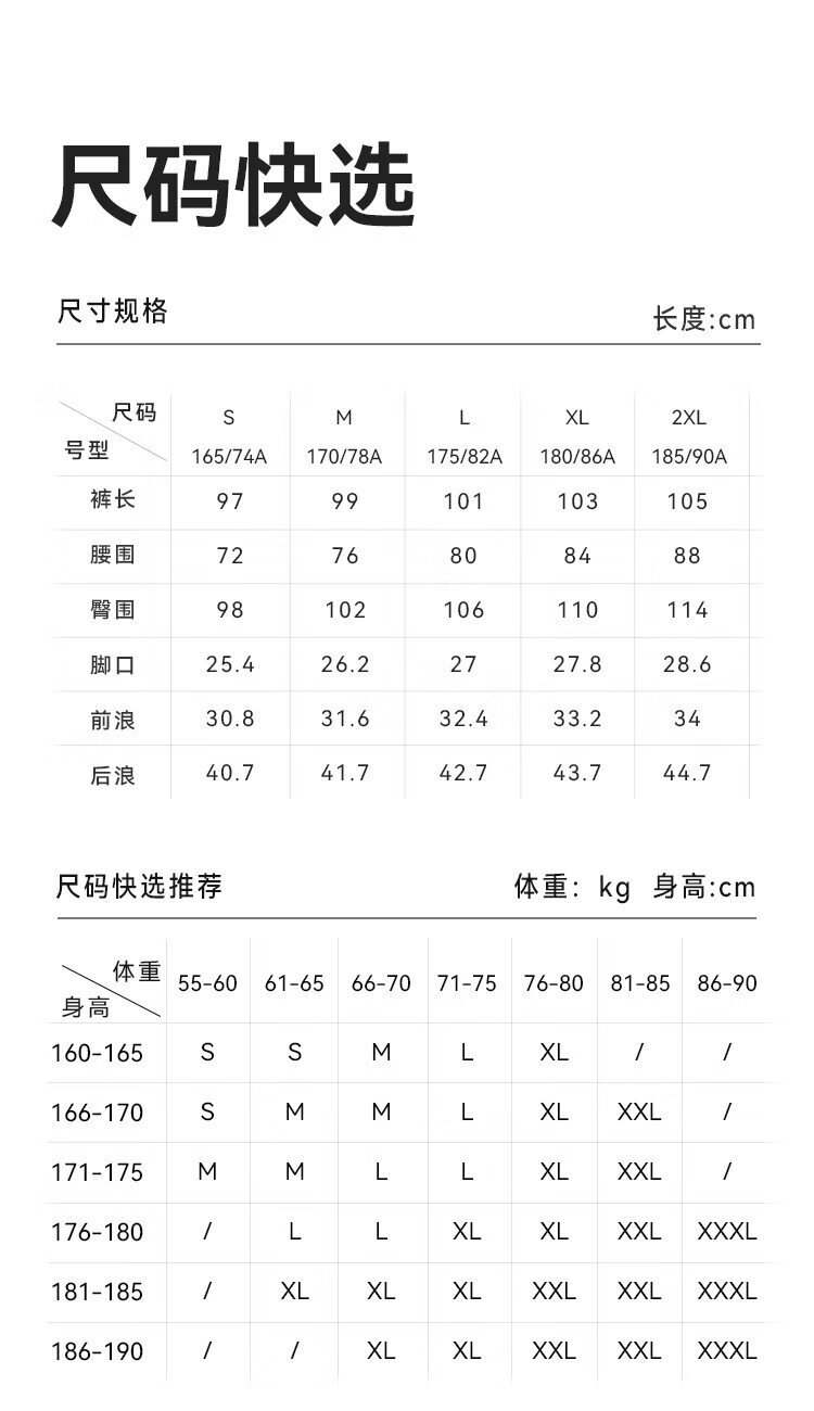 Outseam (cm) 99 cm 101.5 cm 104 cm 106.5 cm 109 cm