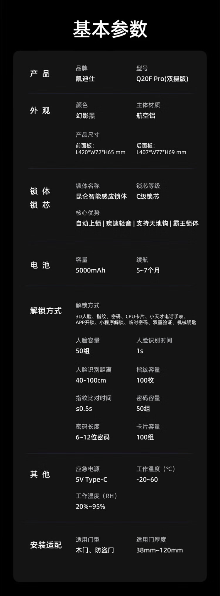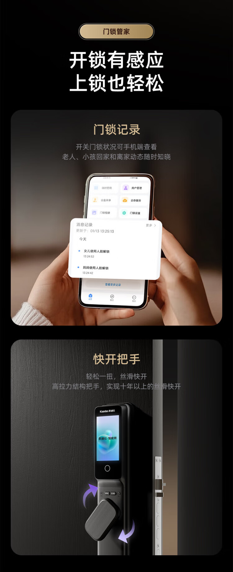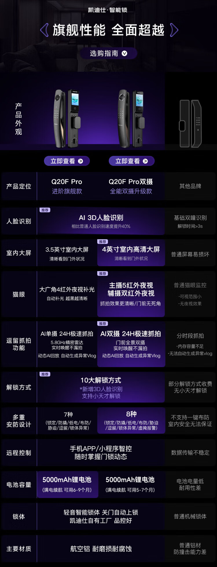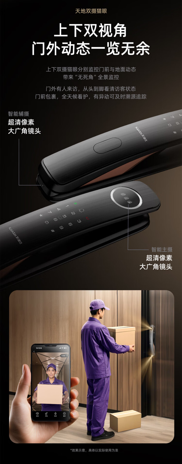 Kaadas smart door lock face large screen visual cat eye monitoring fully automatic fingerprint lock password lock Q20F Pro dual camera