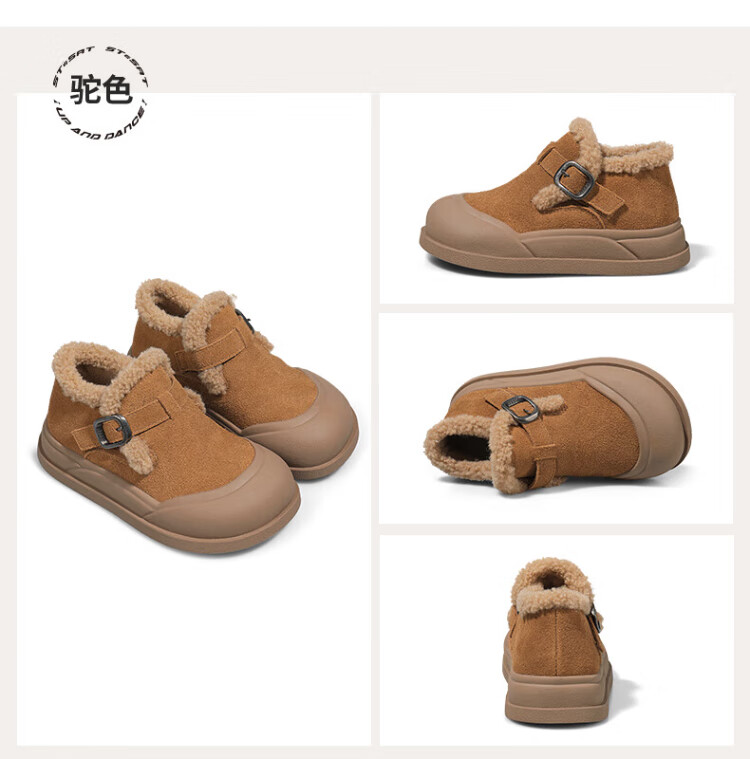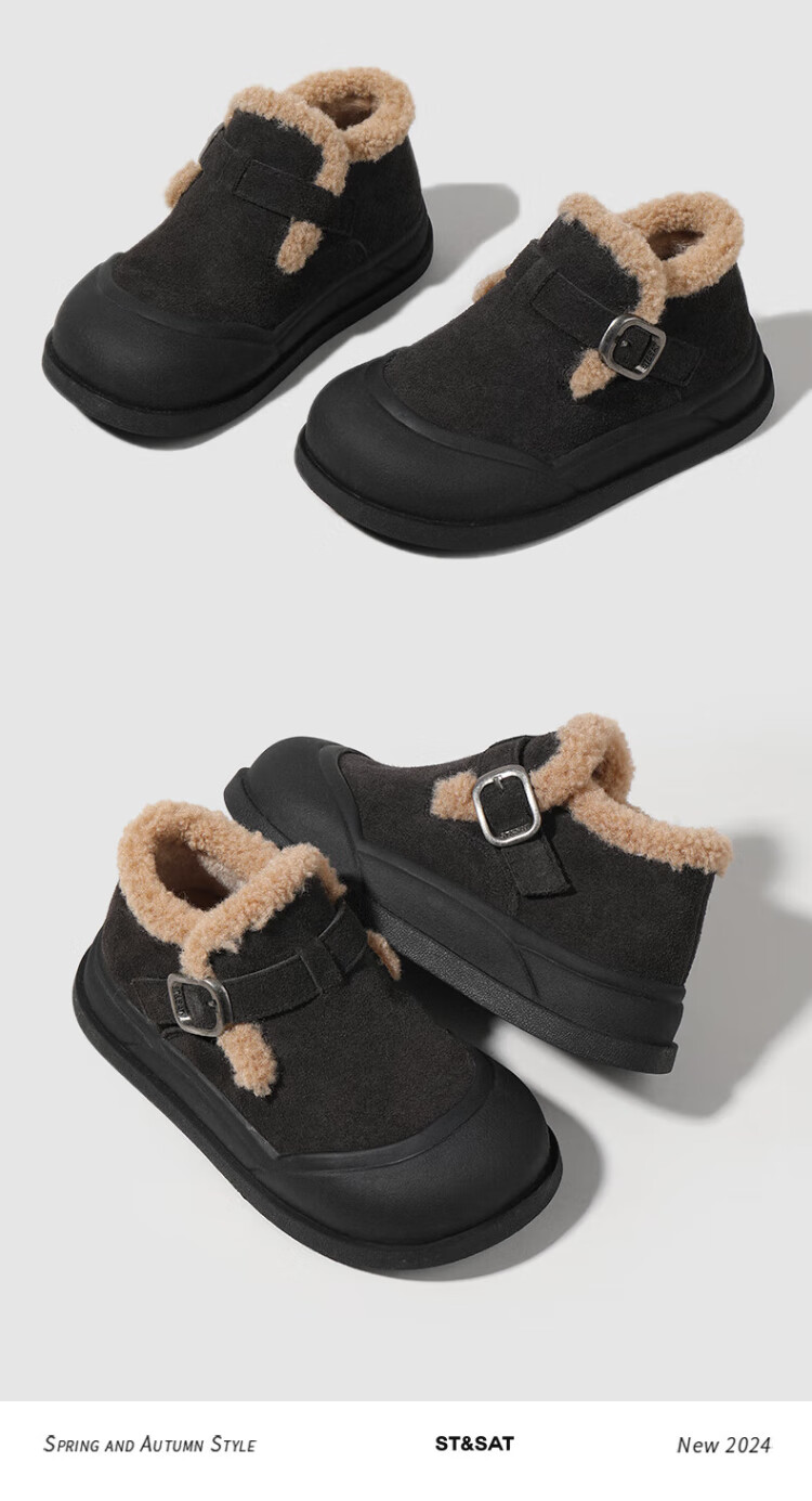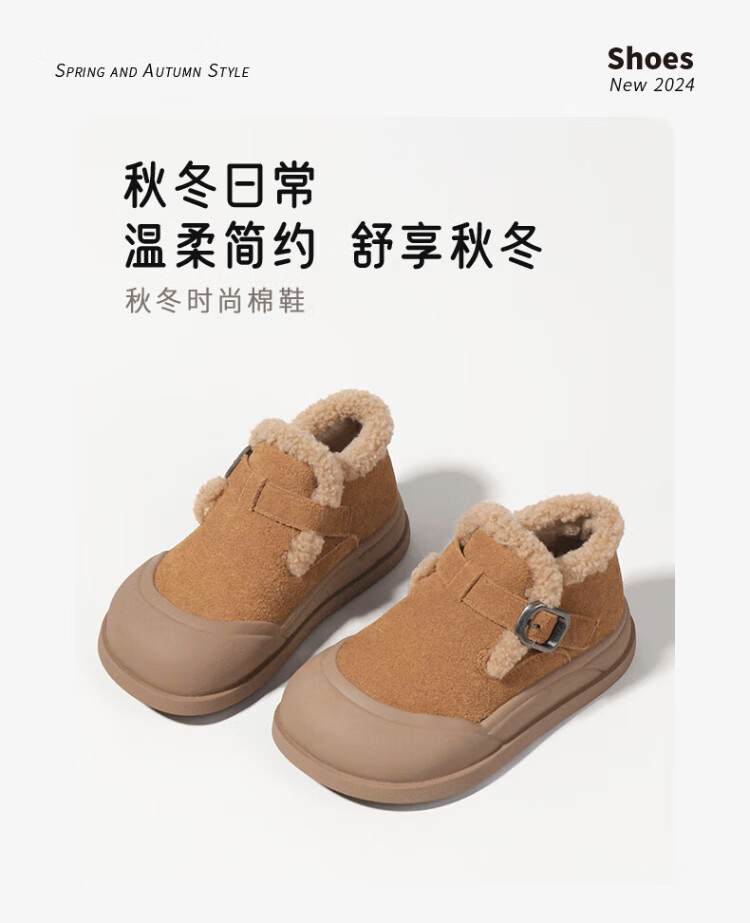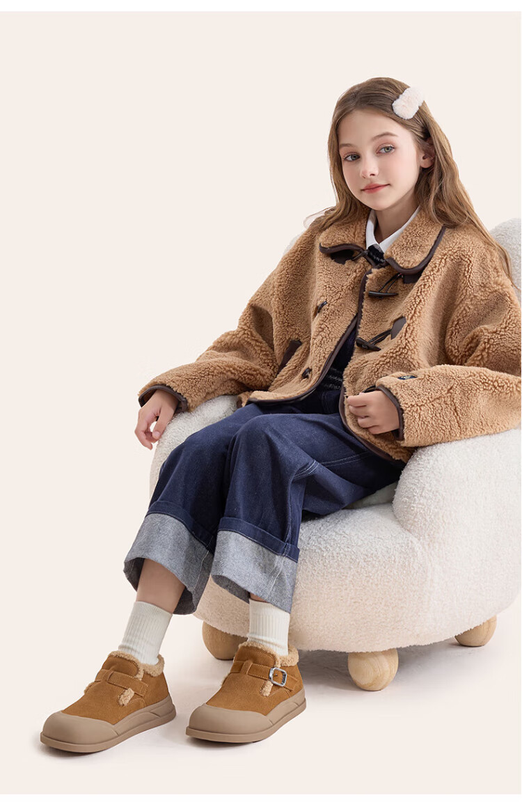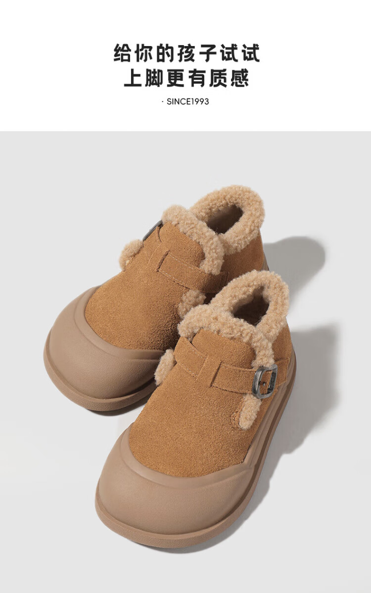 Saturday Children's Shoes Winter New Children's Cotton Shoes Simple and Versatile Winter Shoes Girls' Birkenstock Shoes Plus Velvet Camel 33