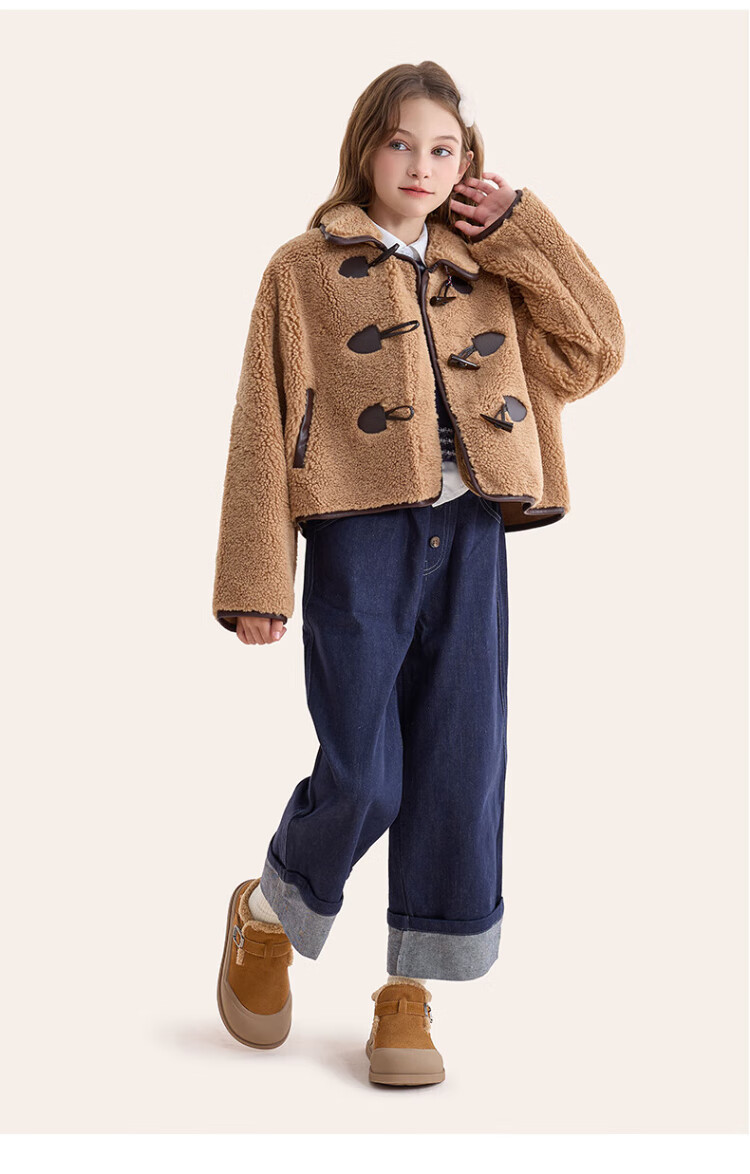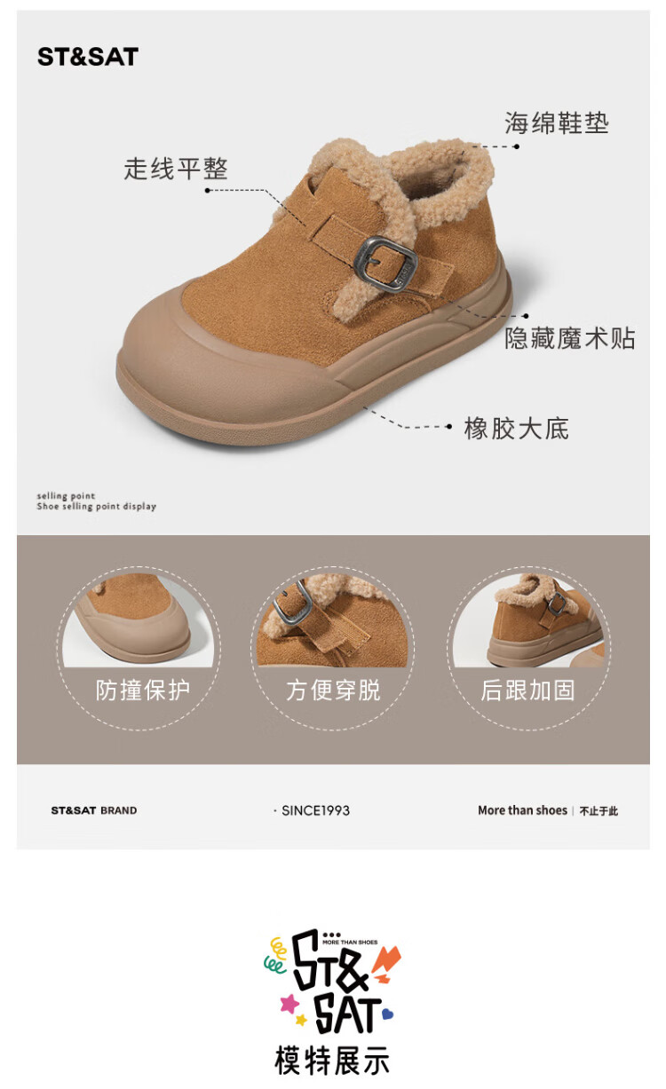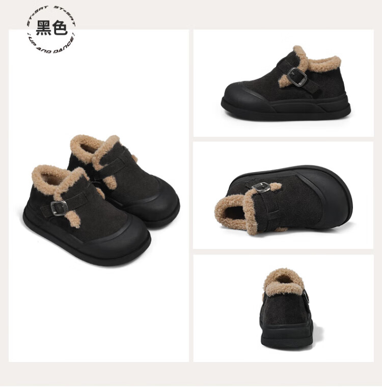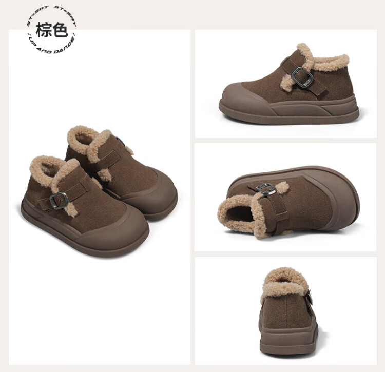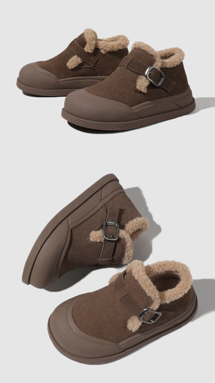 Saturday Children's Shoes Winter New Children's Cotton Shoes Simple and Versatile Winter Shoes Girls' Birkenstock Shoes Plus Velvet Camel 33