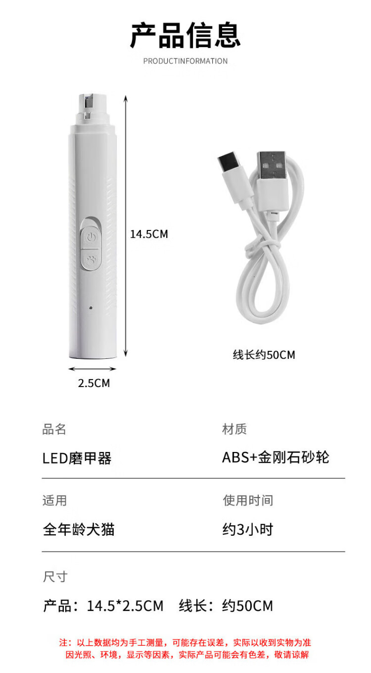 Hip Hop Tails Pet Electric Nail Grinder Nail Clipper Rechargeable Dog Cat Nail Clippers Manicure Led Lighting