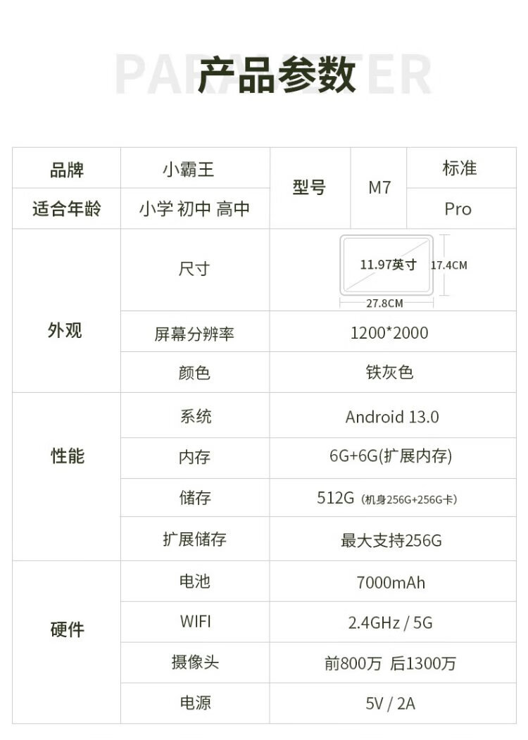 Xiaobawang M7pro learning machine tablet computer 12G+512G primary school to high school curriculum synchronization tutoring machine English reading machine