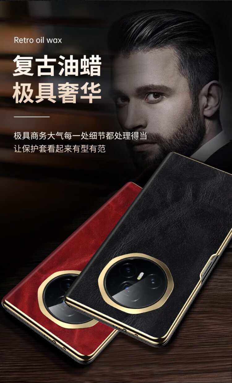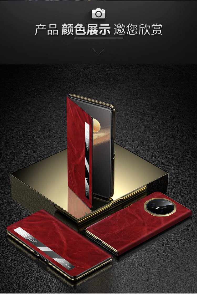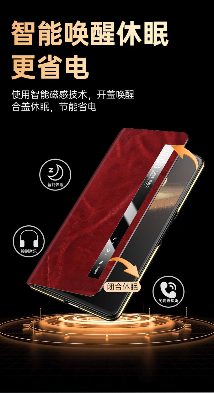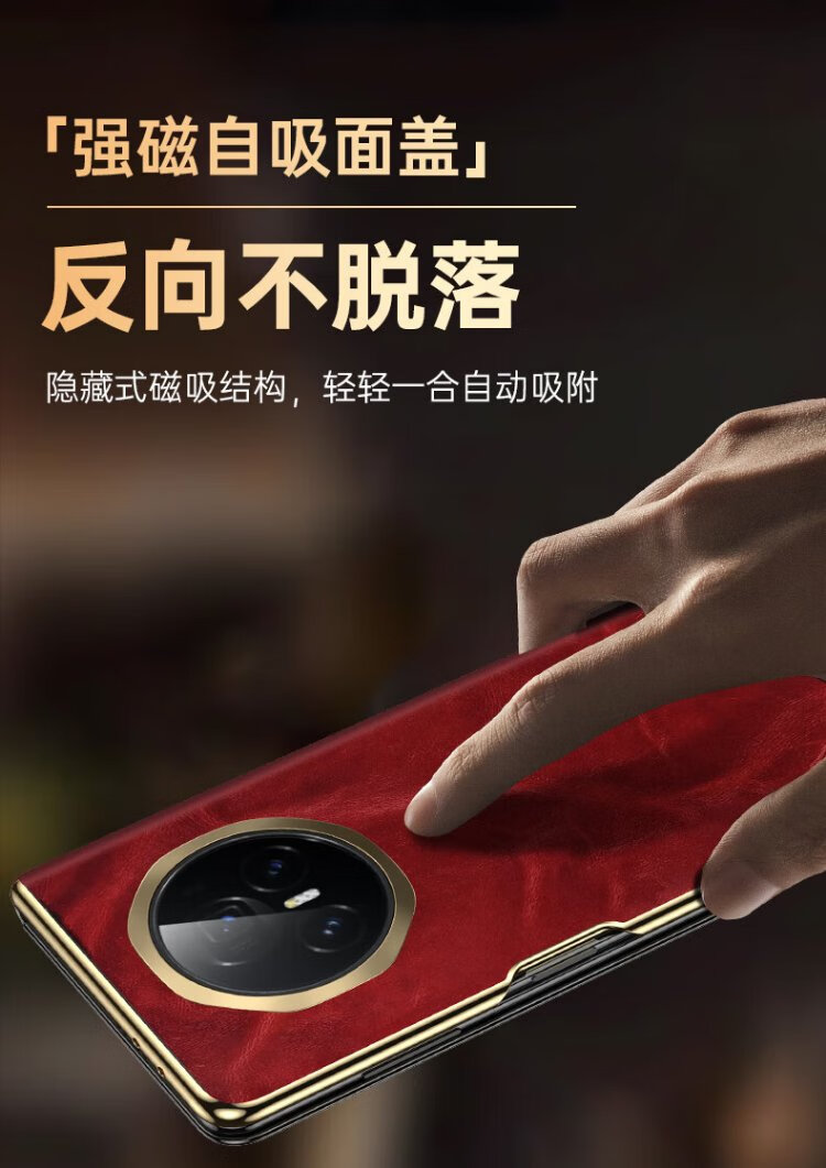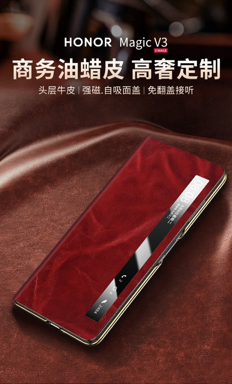 IM-CHEN Oil Wax丨Strong Magnetic Smart Flip Cover Suitable for Honor magic v3 mobile phone case Honor magic v3 folding screen protective cover Ultra-thin anti-fall business-red