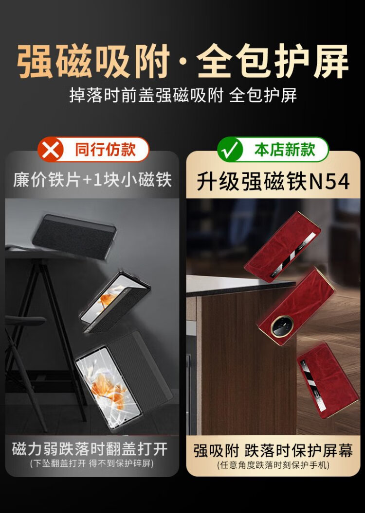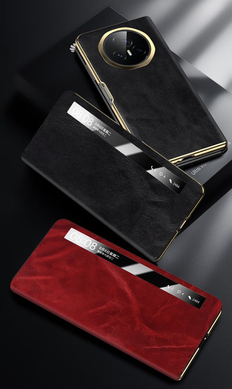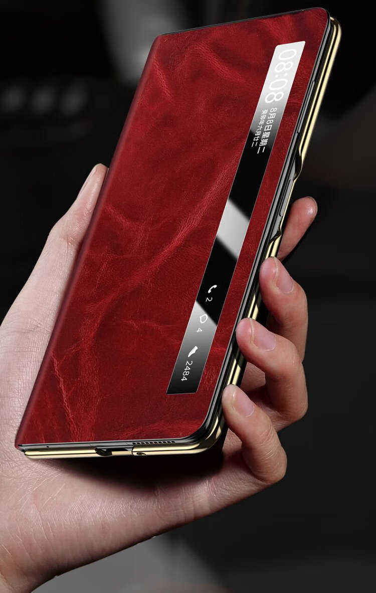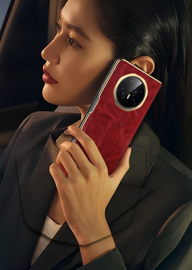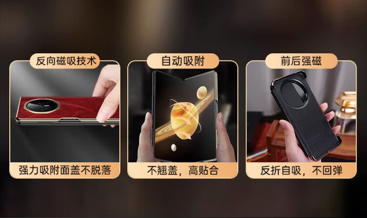 IM-CHEN Oil Wax丨Strong Magnetic Smart Flip Cover Suitable for Honor magic v3 mobile phone case Honor magic v3 folding screen protective cover Ultra-thin anti-fall business-red