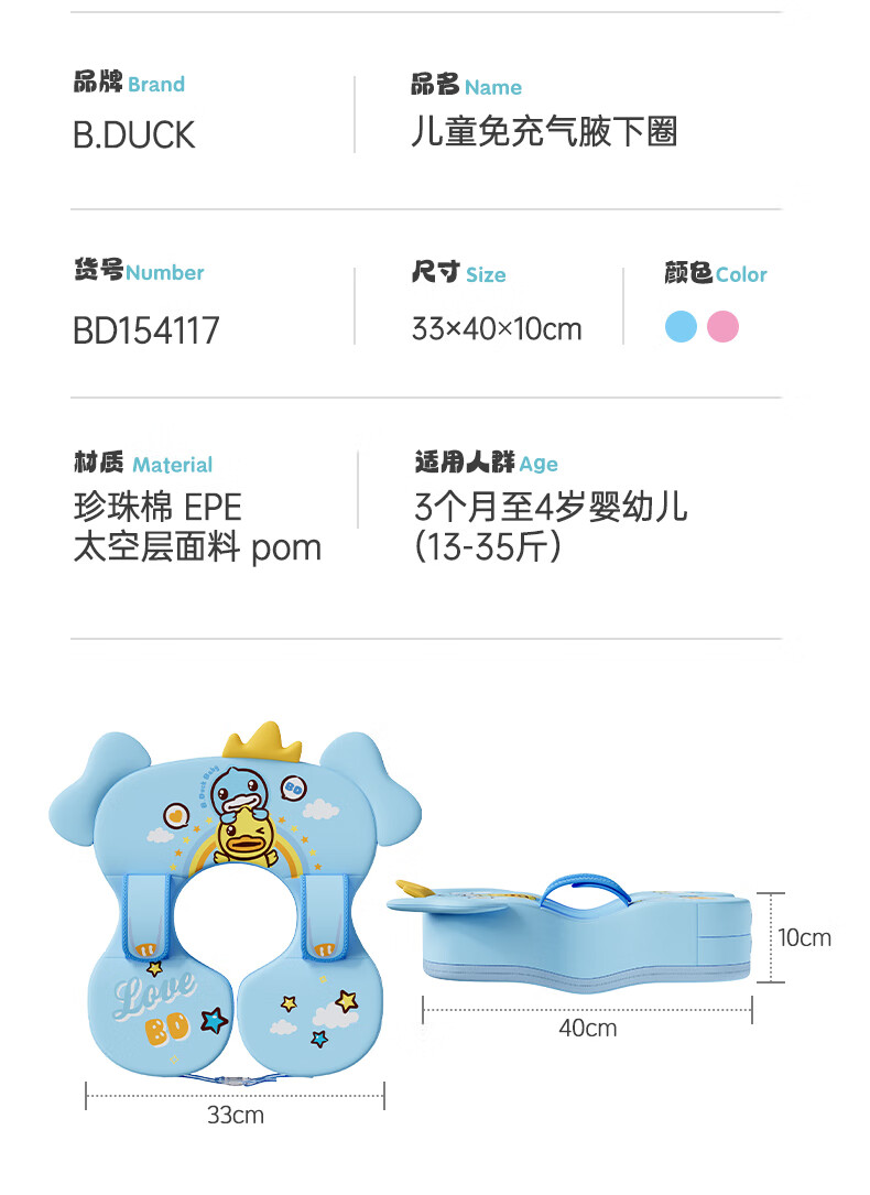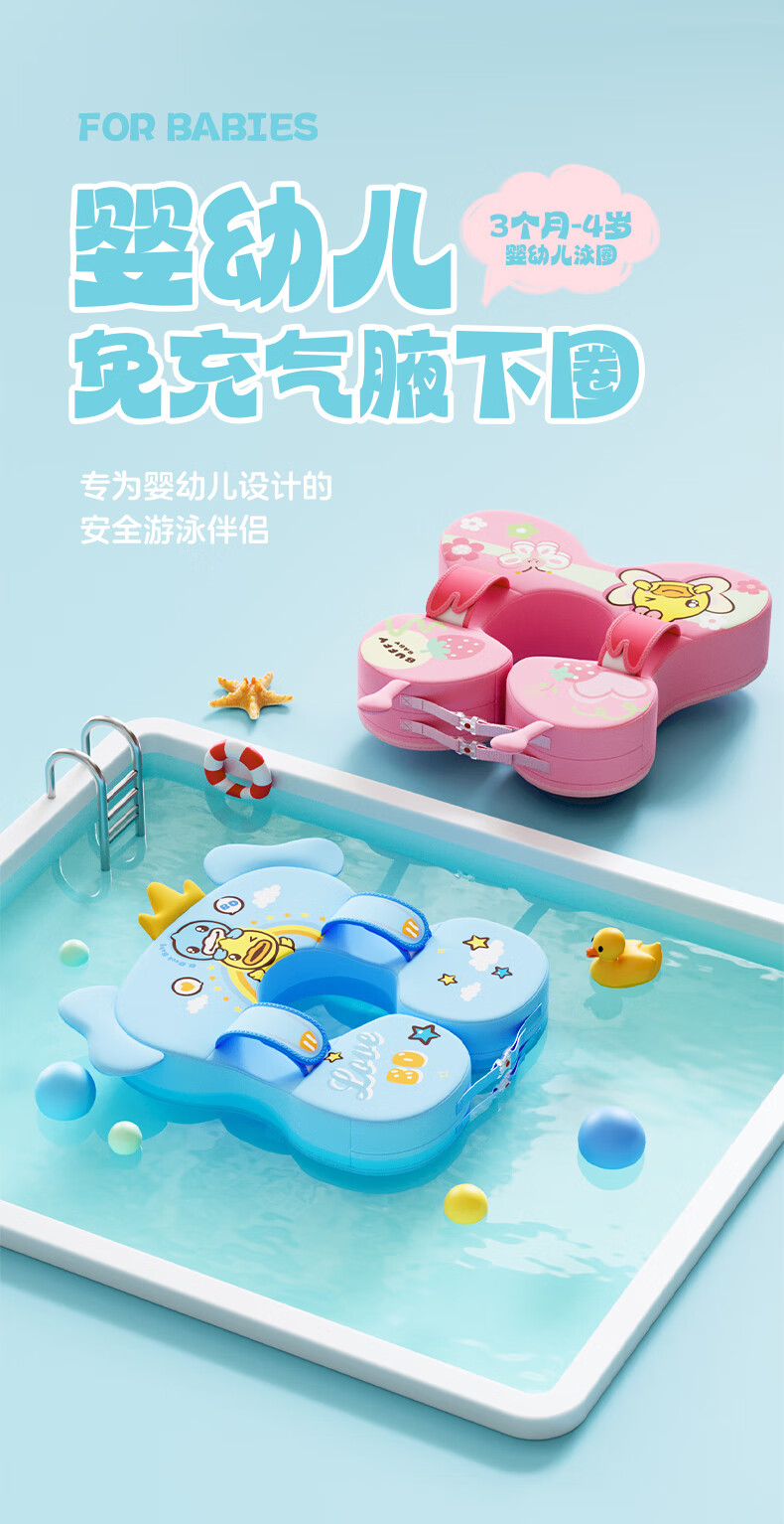 B.Duck little yellow duck baby swimming armpit ring, safe and stable for newborns, non-rolling, anti-choking, no-inflatable lifebuoy