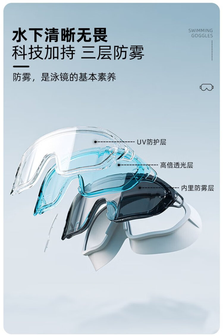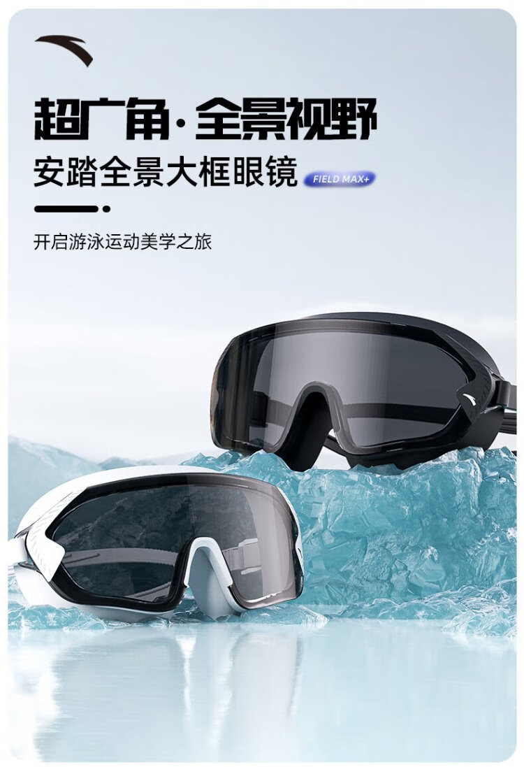 ANTA large-frame swimming goggles for men and women, anti-fog and waterproof swimming goggles, adult flat swimming goggles and swimming cap set, black and white + white swimming cap