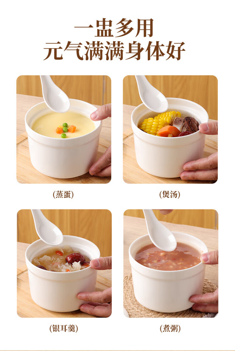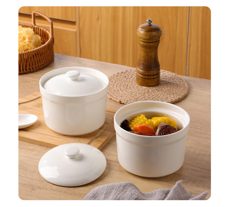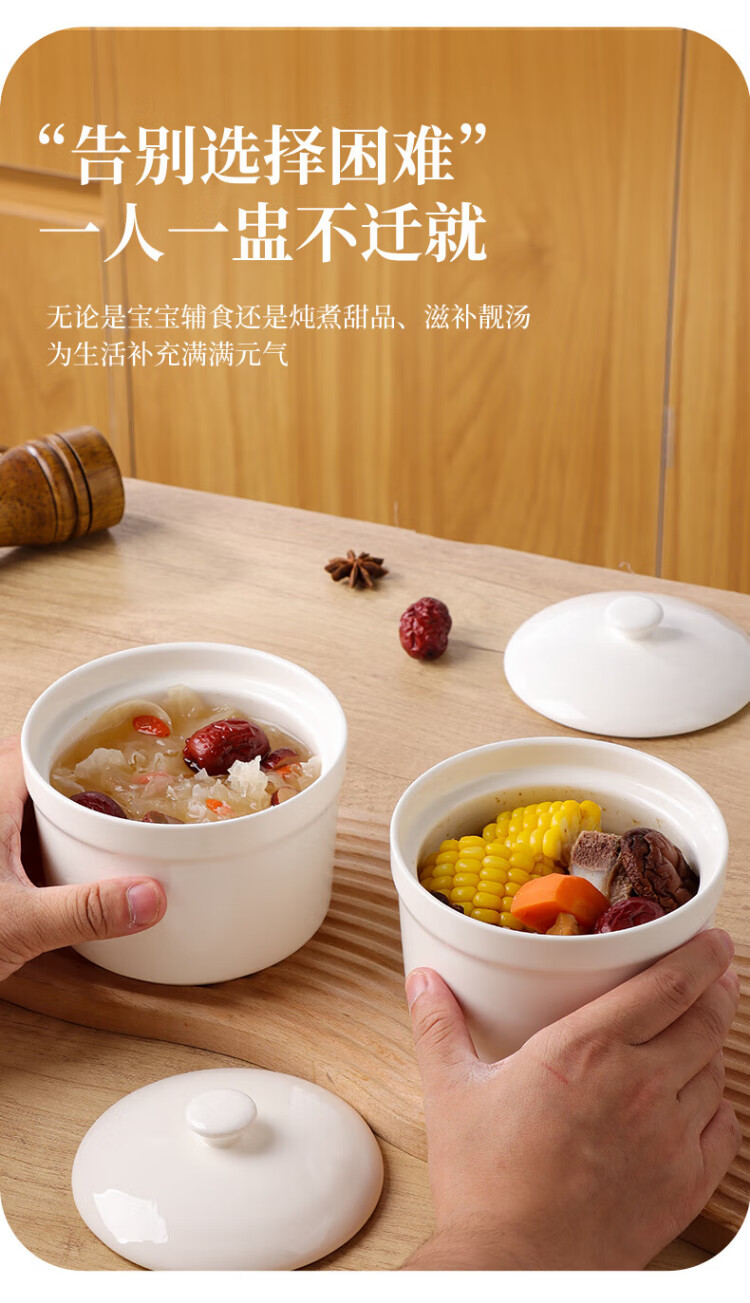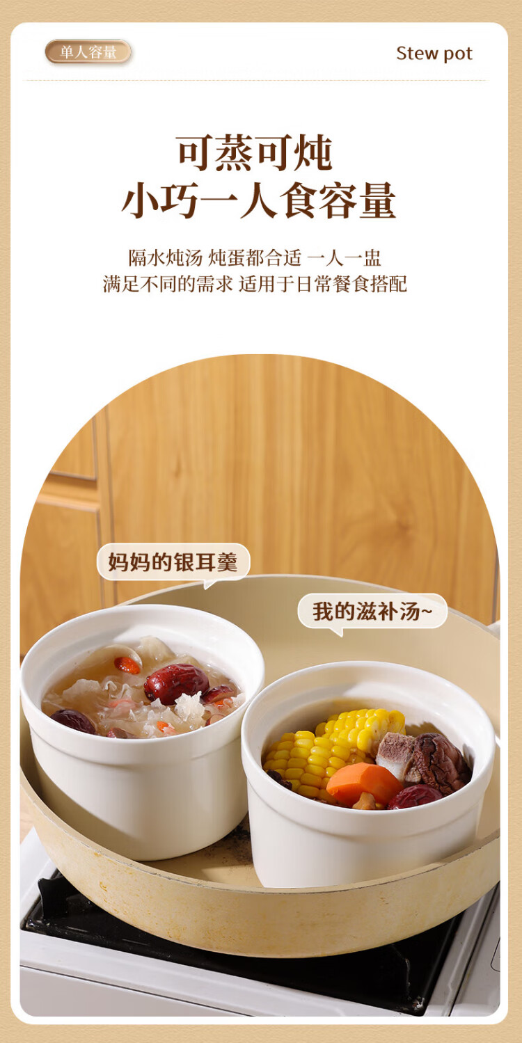 Baijie stew pot with lid ceramic bowl soup bowl water-proof stew pot liner steamed egg porridge bird's nest cup jar tableware medium size 400ml
