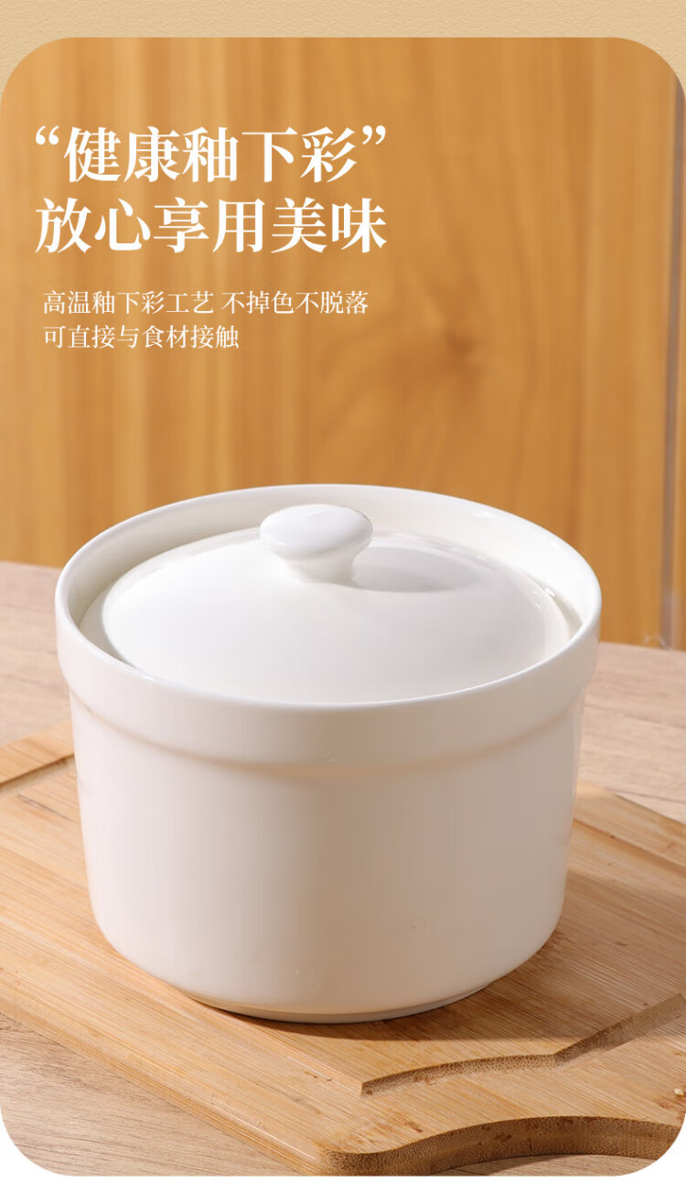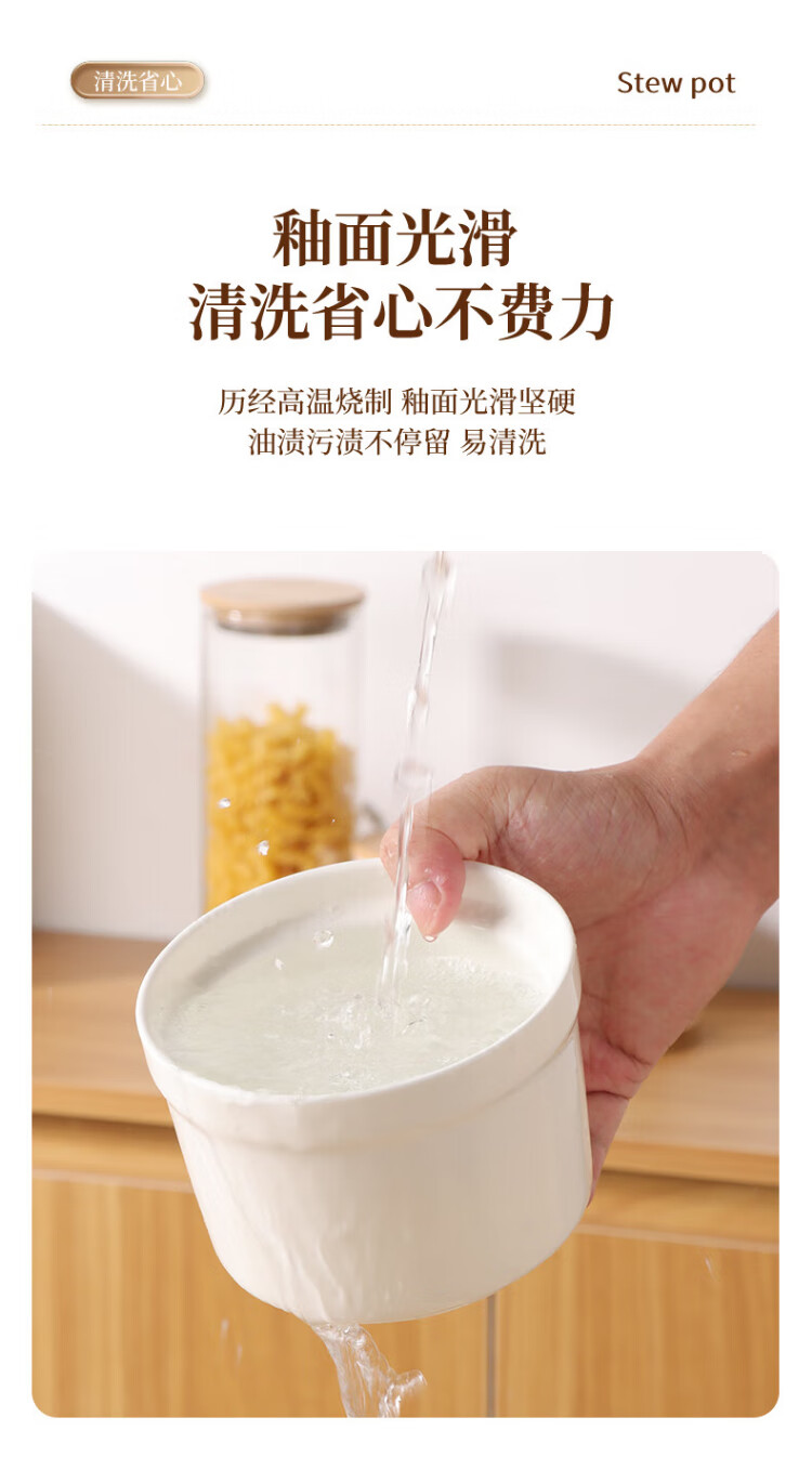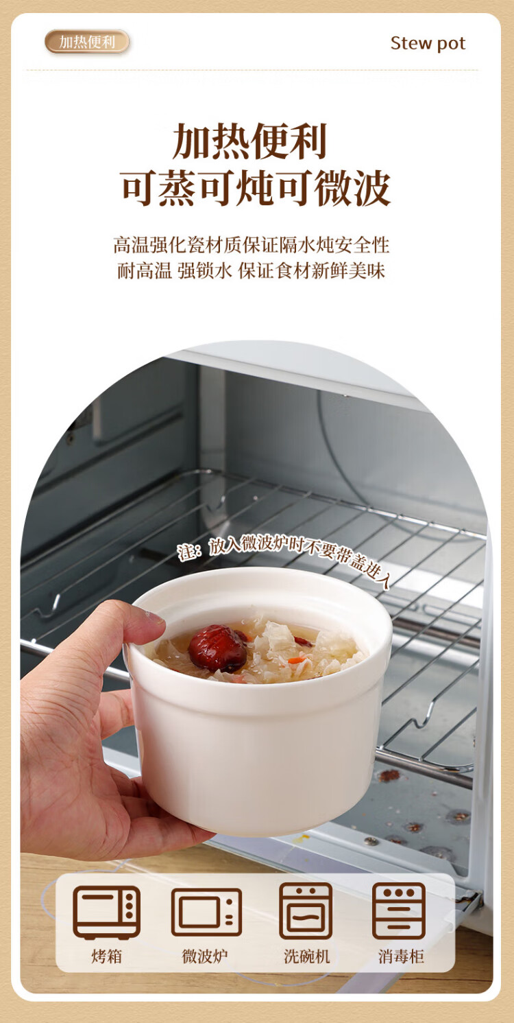 Baijie stew pot with lid ceramic bowl soup bowl water-proof stew pot liner steamed egg porridge bird's nest cup jar tableware medium size 400ml