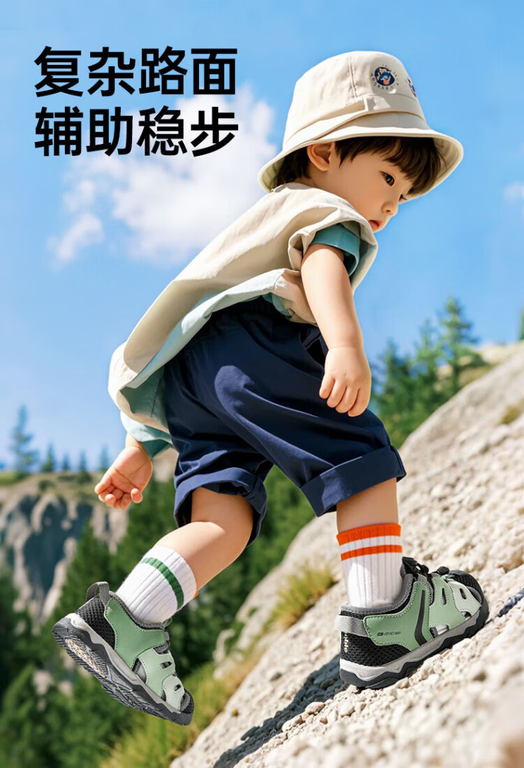 Jinopu Children's Sandals 25 Years Summer Breathable Toddler Shoes for Men and Women for Men and Women Mountain Series GW1761 Mignon Green/Black