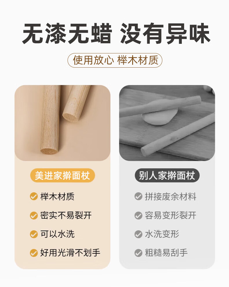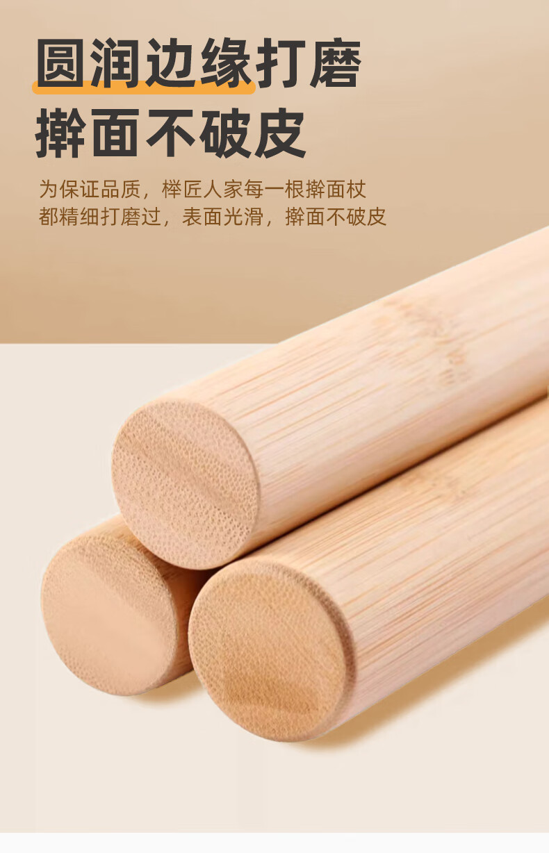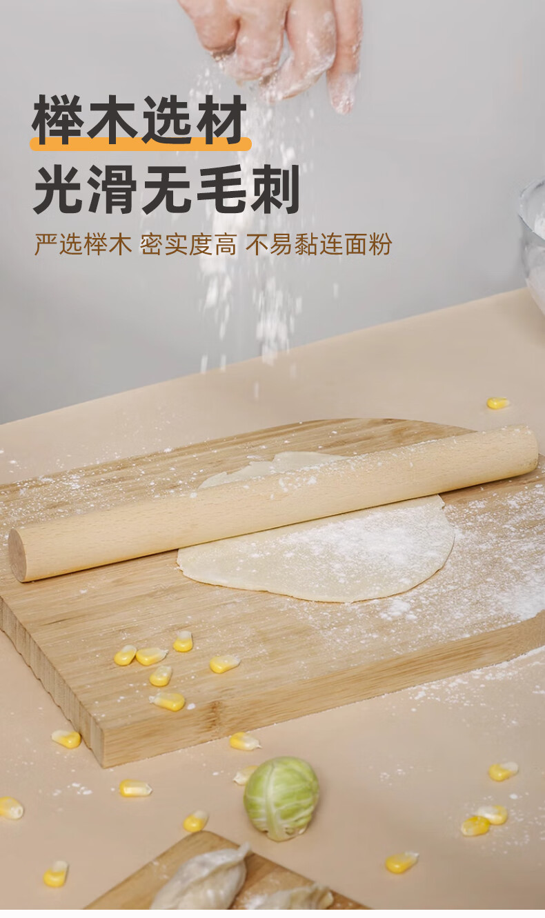 MEIJINJIA beech wood rolling pin household food-grade pressed noodle stick dumpling skin artifact stick non-stick baking gadget