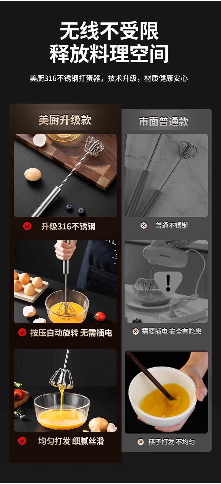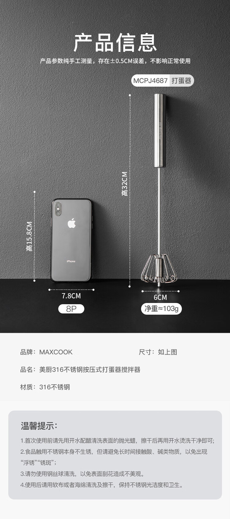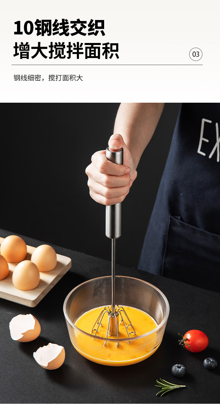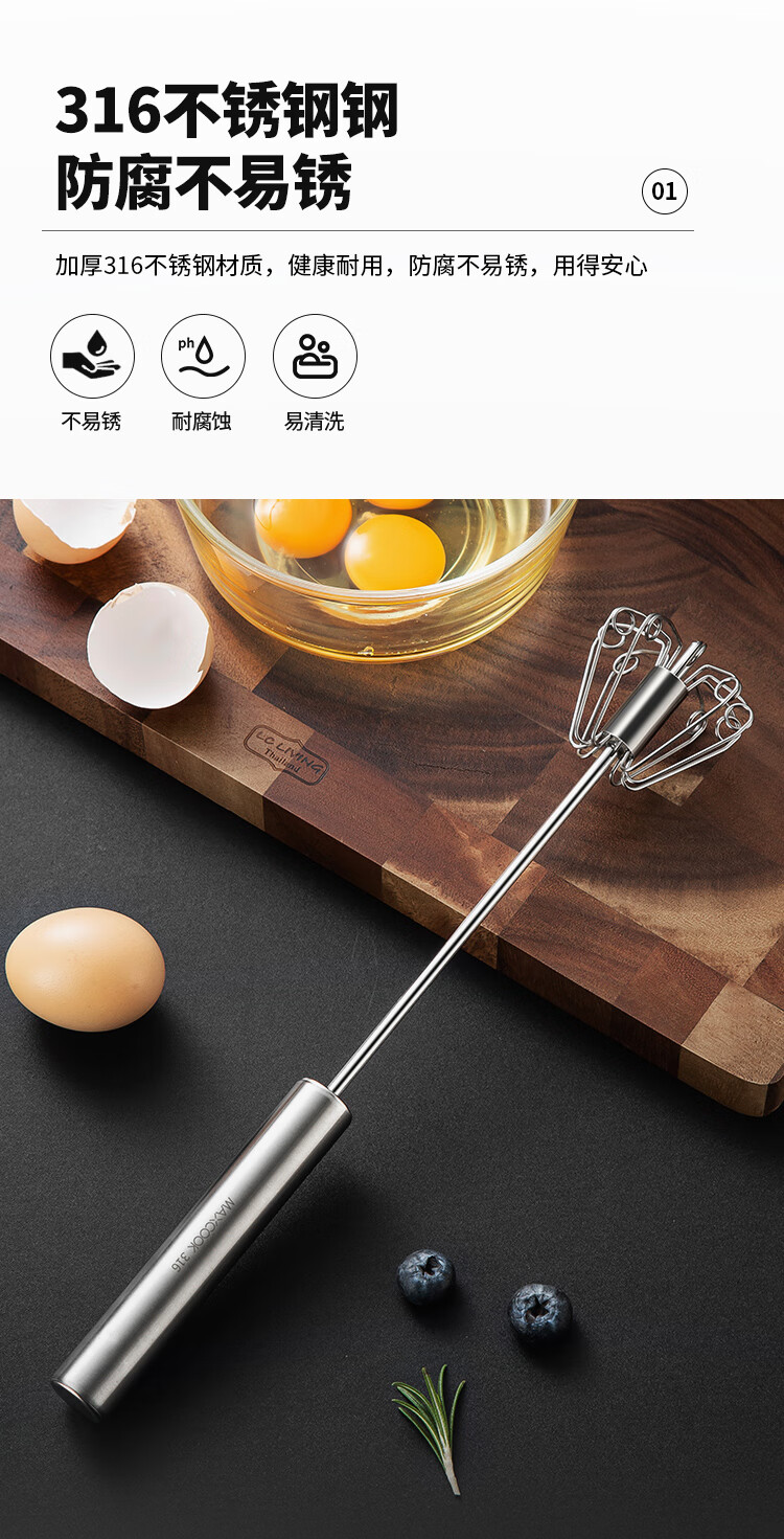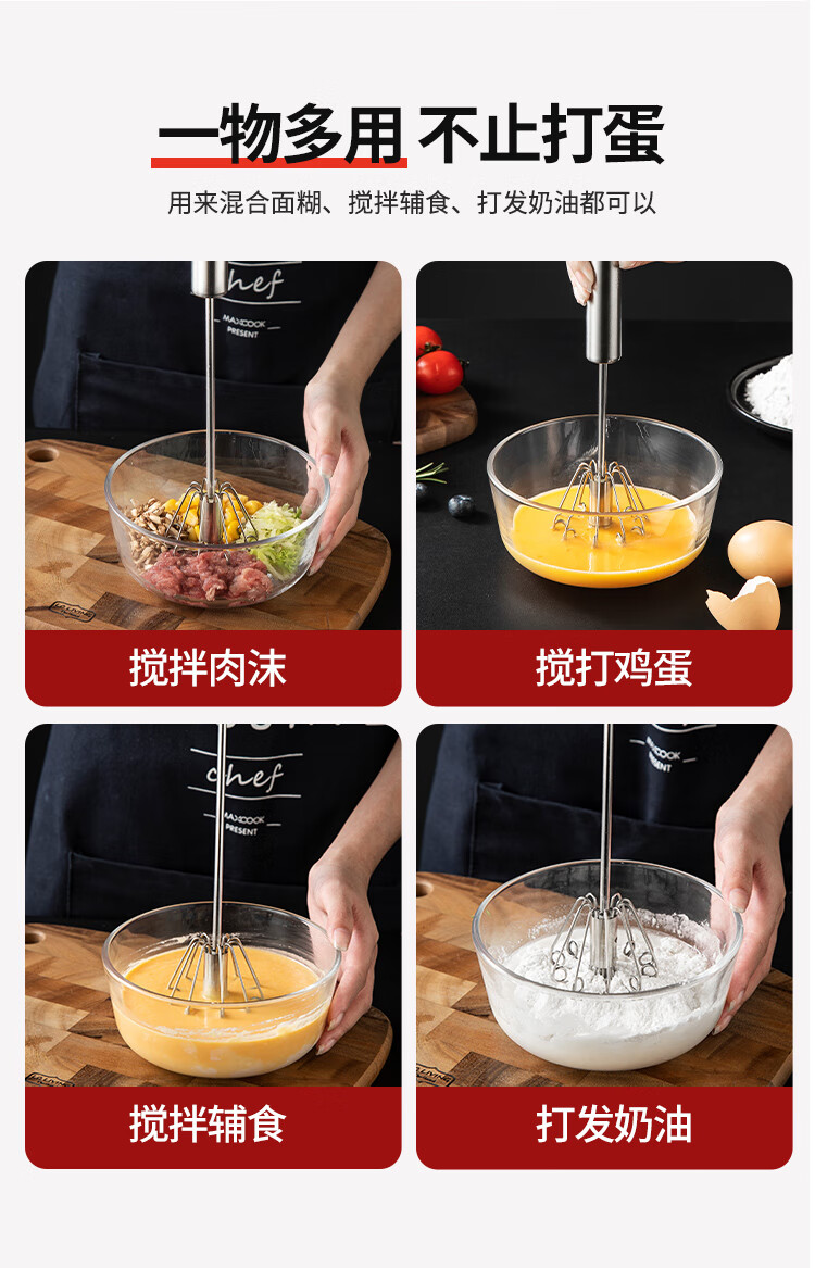 MAXCOOK egg beater 316 stainless steel push-type manual egg beater baking tool light cream batter MCPJ4687