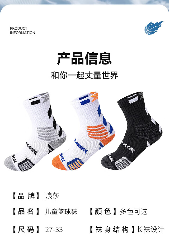 Langsha socks boys and girls basketball shock-absorbing non-slip sweat-absorbing breathable running sports training socks for teenagers and older boys
