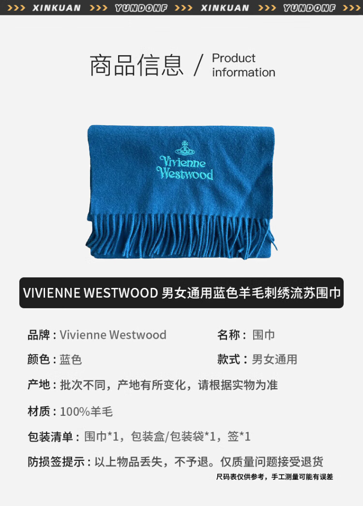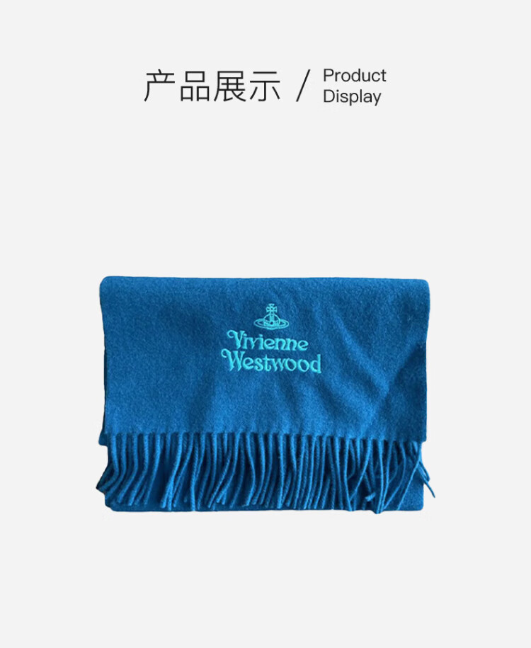 Vivienne Westwood Queen Mother Unisex Wool Embroidered Tassel Shawl Scarf 8050889629856 Blue