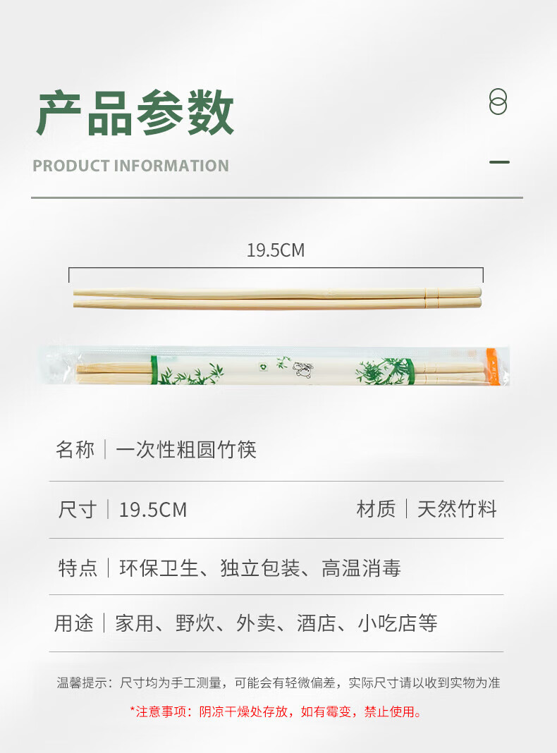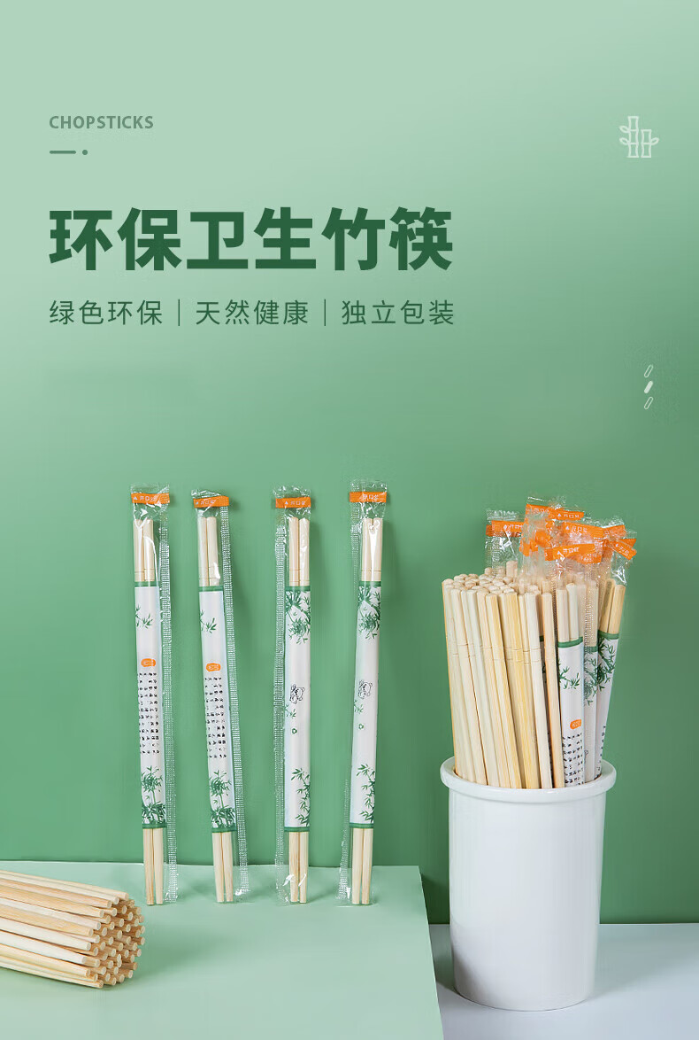 Temeiju disposable chopsticks 180 pairs individually packaged household picnic hygienic bamboo chopsticks packaged convenient chopsticks tableware supplies