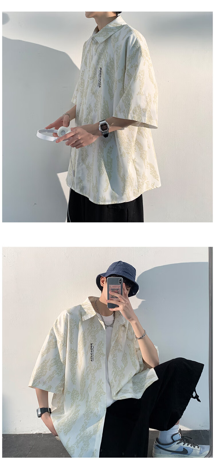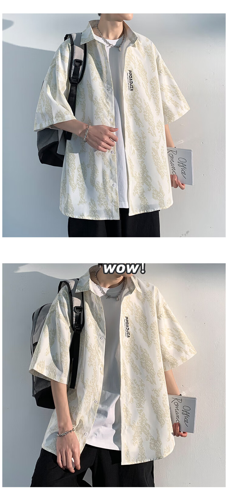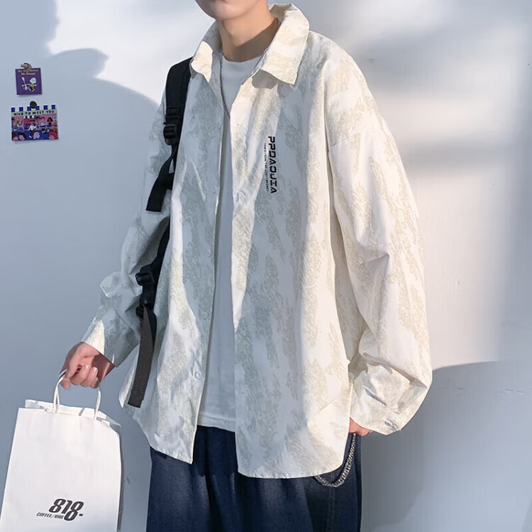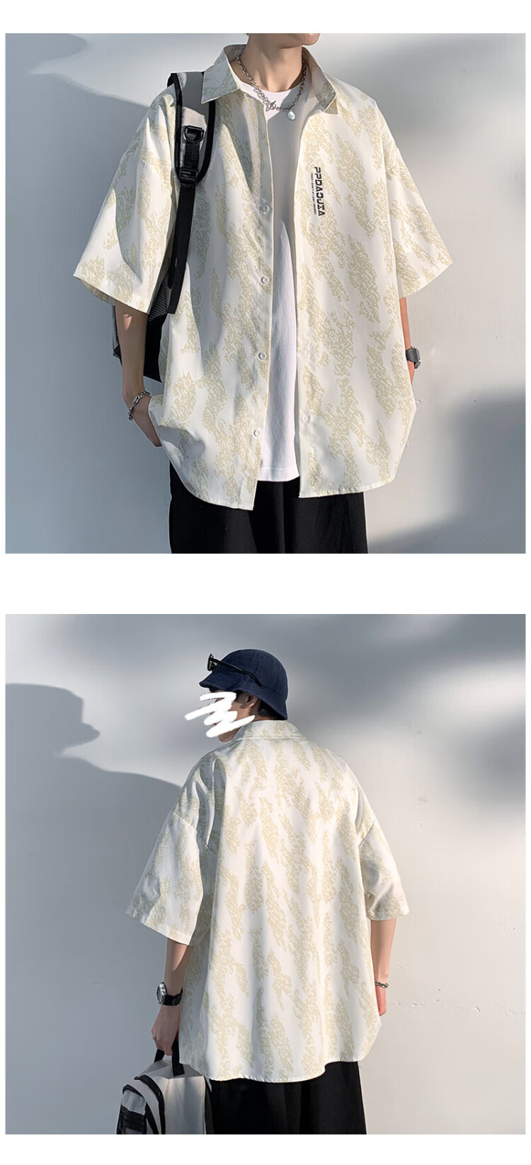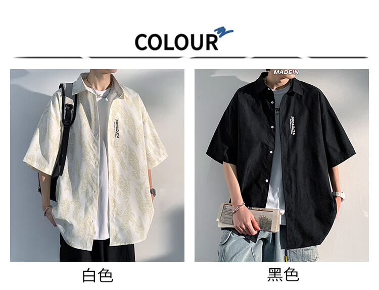 NASA MARVEL short-sleeved shirt men's summer lapel shirt casual wear half-sleeved men's jacket loose top white XL