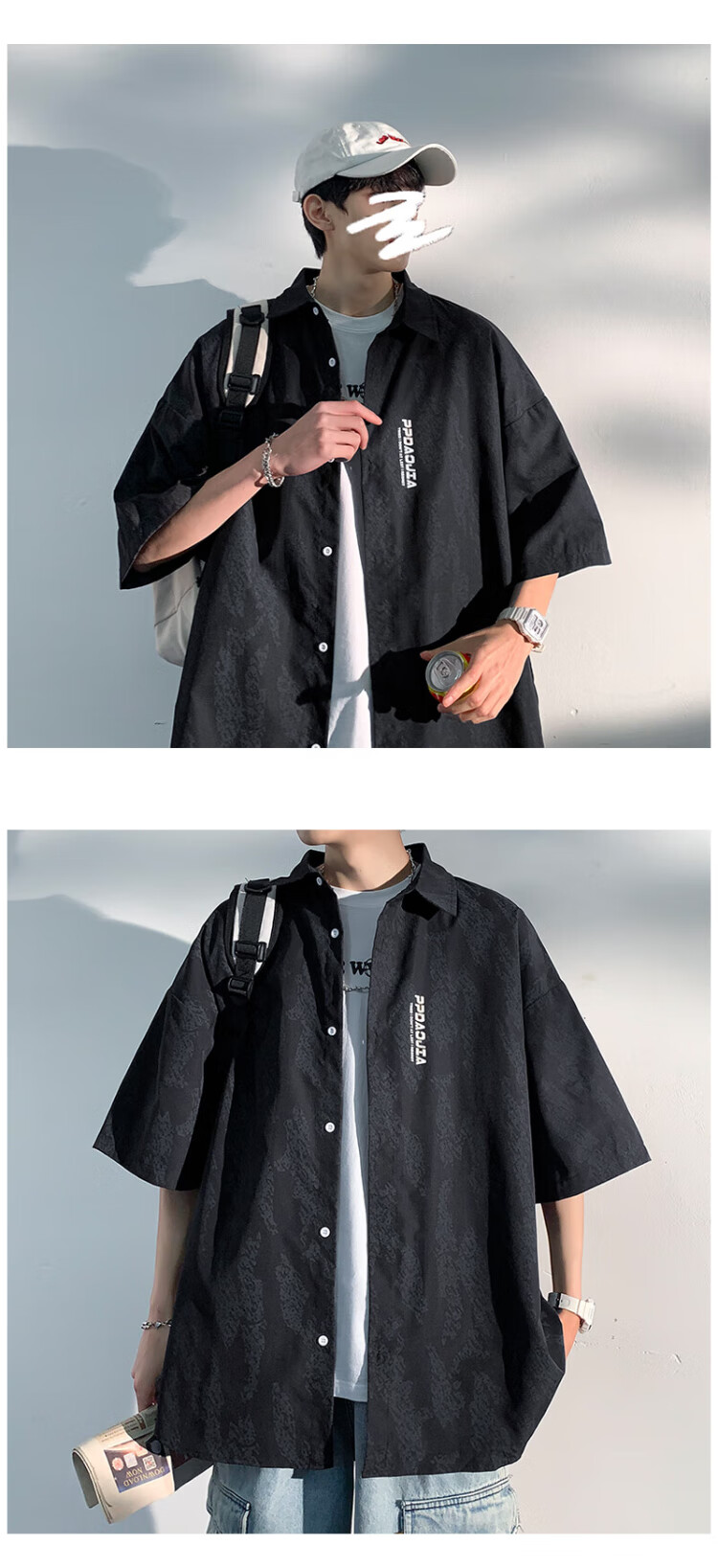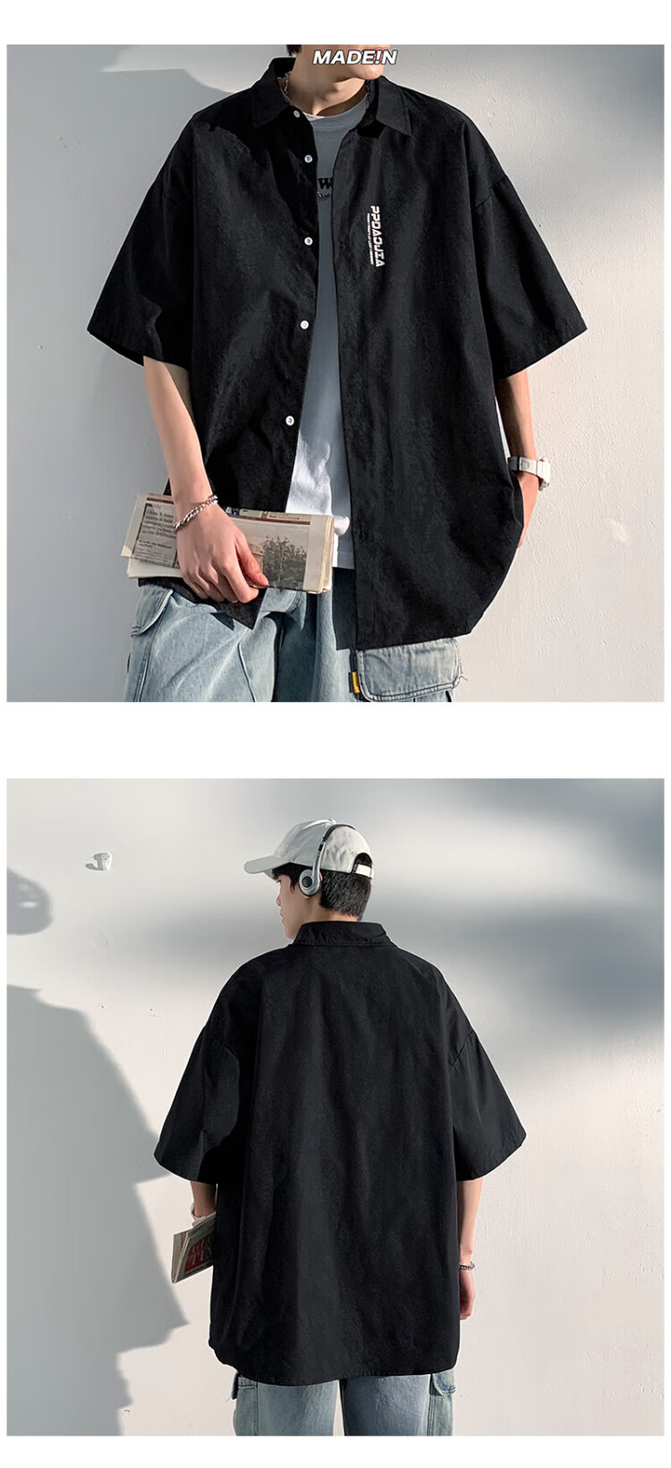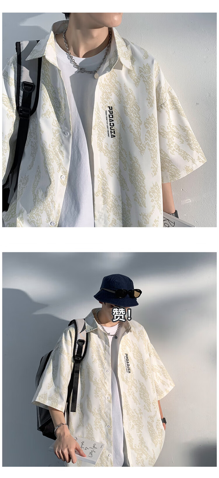 NASA MARVEL short-sleeved shirt men's summer lapel shirt casual wear half-sleeved men's jacket loose top white XL