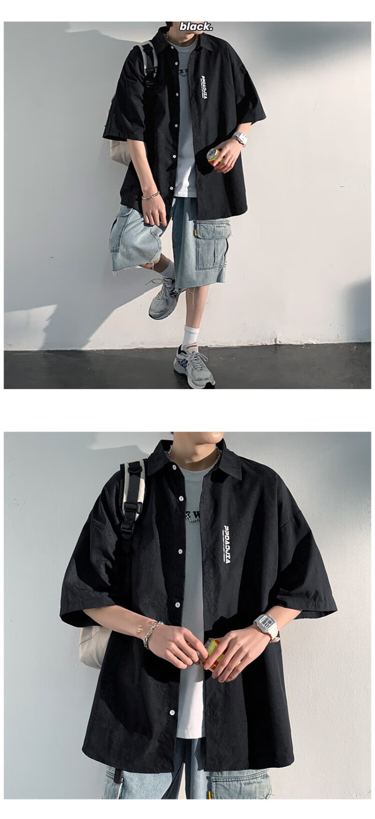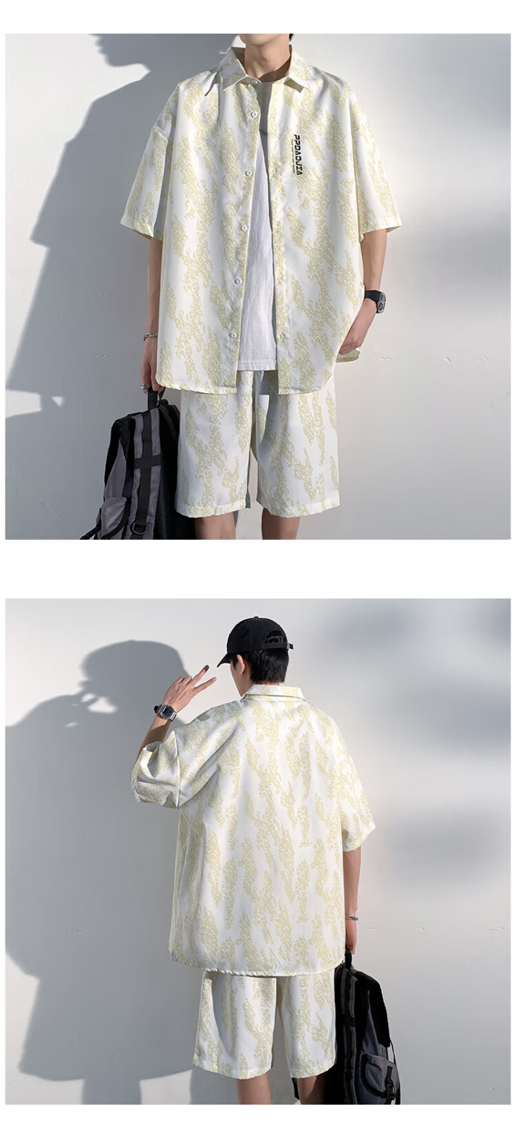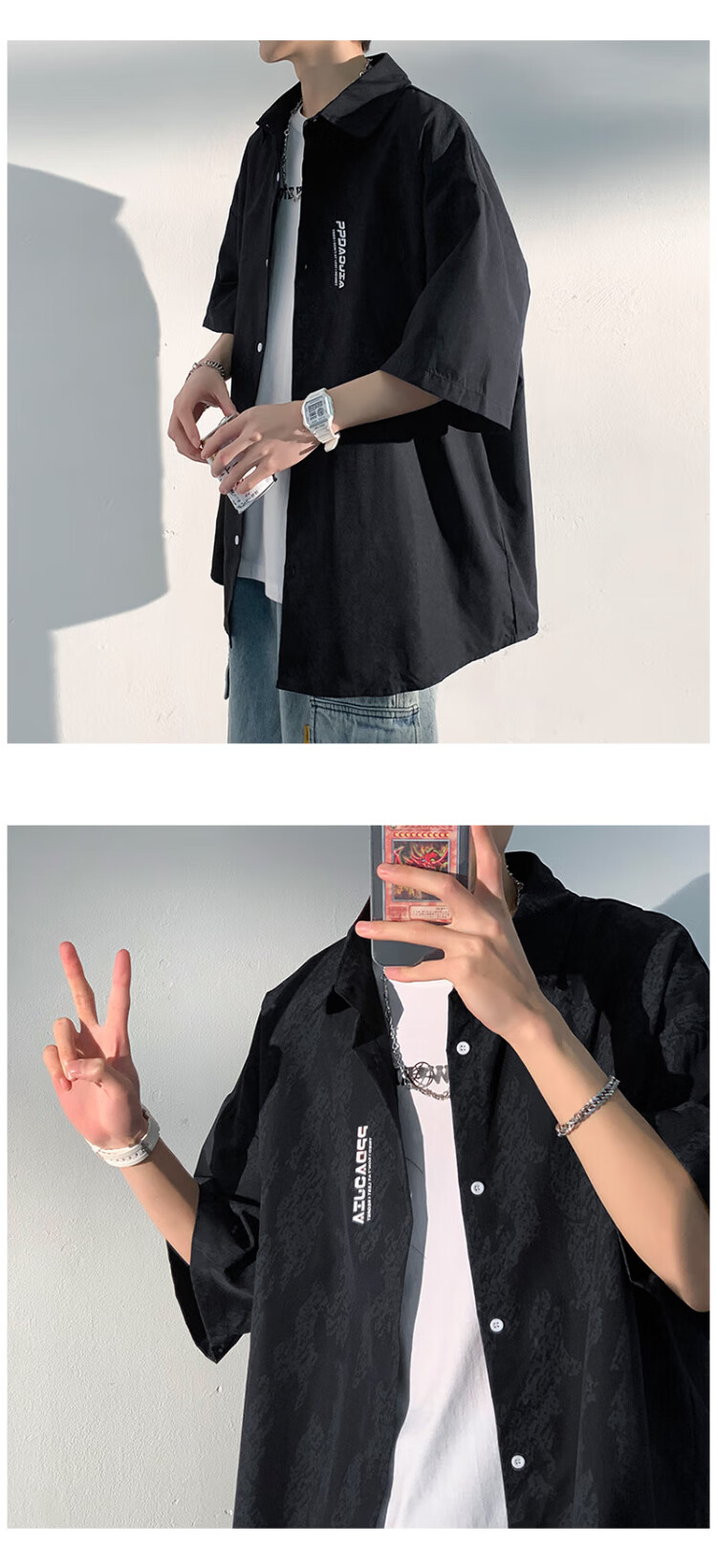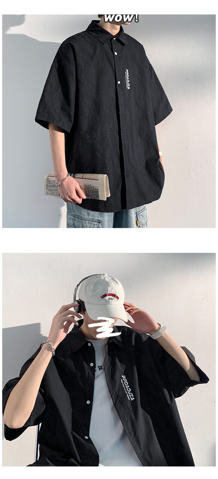 NASA MARVEL short-sleeved shirt men's summer lapel shirt casual wear half-sleeved men's jacket loose top white XL