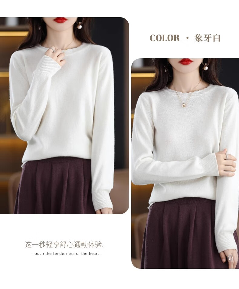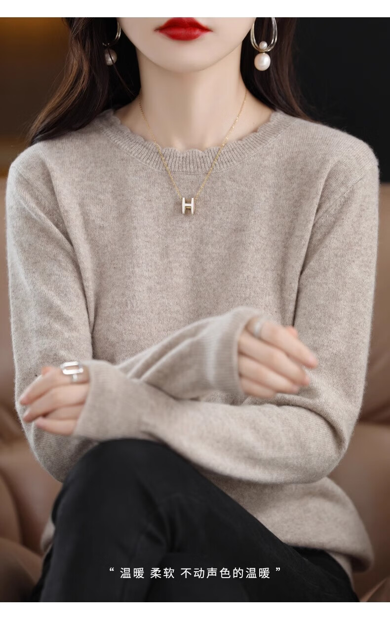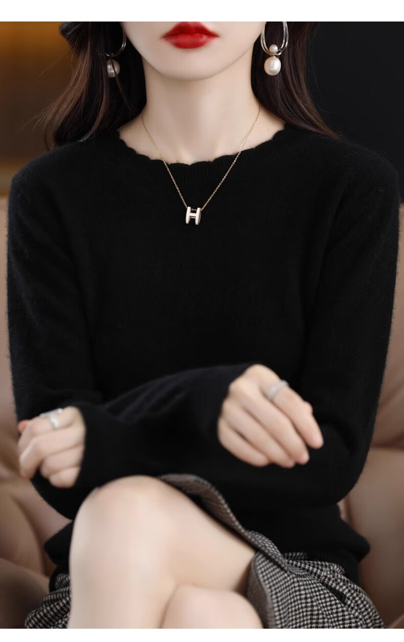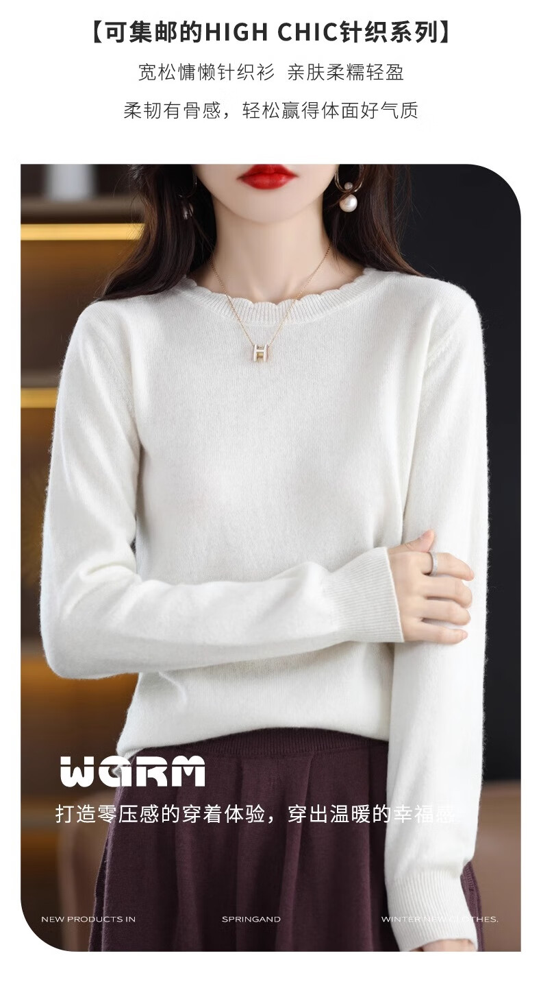 Yu Zhaolin round neck lace knitted bottoming shirt for women spring, autumn and winter 2025 new long-sleeved loose soft waxy pullover sweater
